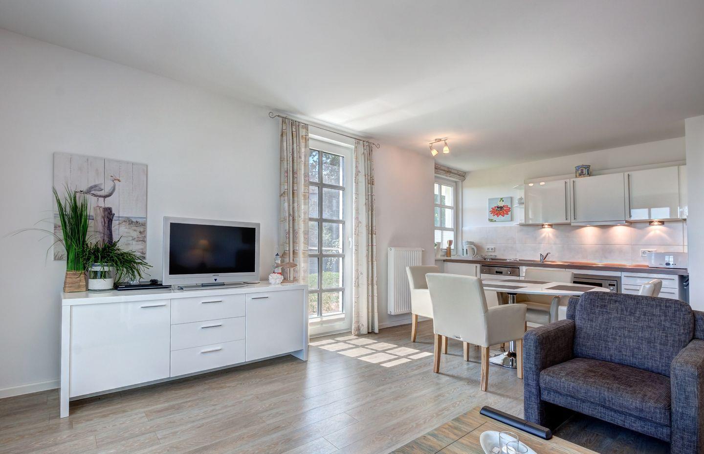 Unsere charmante 2-Raum-Wohnung BS_02 bietet einen atemberaubenden Blick auf das malerische Achterwasser. Genießen Sie erholsame Nächte im vollwertigen Schlafzimmer und nutzen Sie die ca. 58m² voll ausgestatteter Wohnfläche.