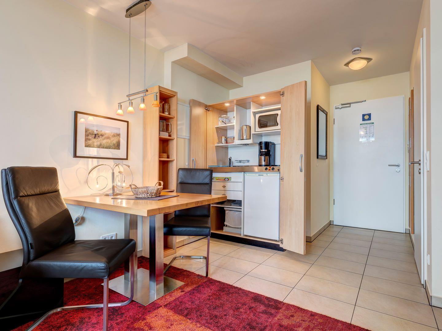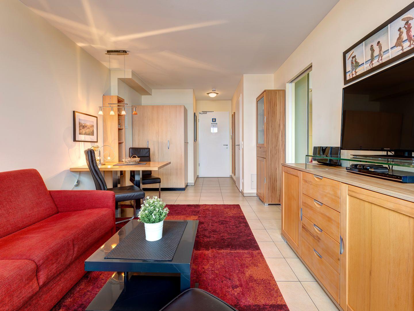Wir freuen uns, Sie in dieser komfortablen 2-Raum-Wohnung begrüßen zu dürfen, ideal für einen Erholungsurlaub zu zweit. Das Appartement verfügt über einen Wohn-/Essbereich mit einem vollwertigen Schlafzimmer sowie offene Küche und Bad.