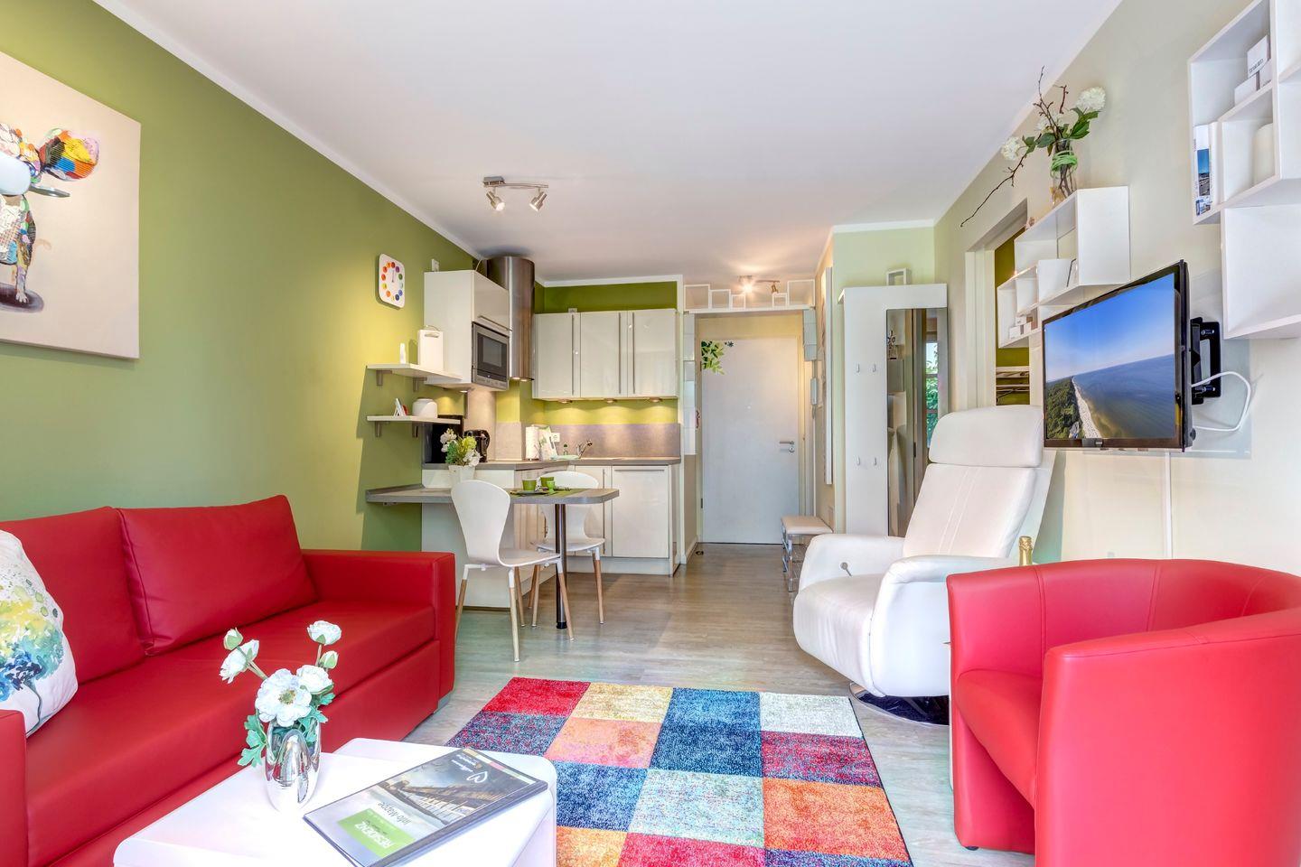 Gemütliche 2-Raum Ferienwohnung mit Süd-Terrasse und Wellnessbereich in der Residenz am Balmer See auf Usedom.