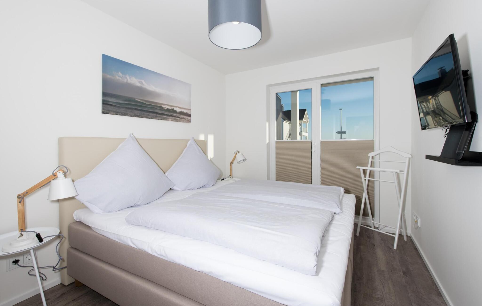 Die beiden Schlafzimmer bieten Zugang zur Ostterrasse. Und wer im Urlaub früh und ausgeschlafen erwacht, der darf hier die wunderschöne Morgensonne beobachten. Das Hauptschlafzimmer ist mit einem Kingsize Bett ausgestattet, während das zweite Schlafzimmer über zwei flexibel zusammenschiebbare Einzelbetten verfügt. Beide Schlafzimmer bieten je einen Flatscreen-TV mit Home Entertainment Programm.