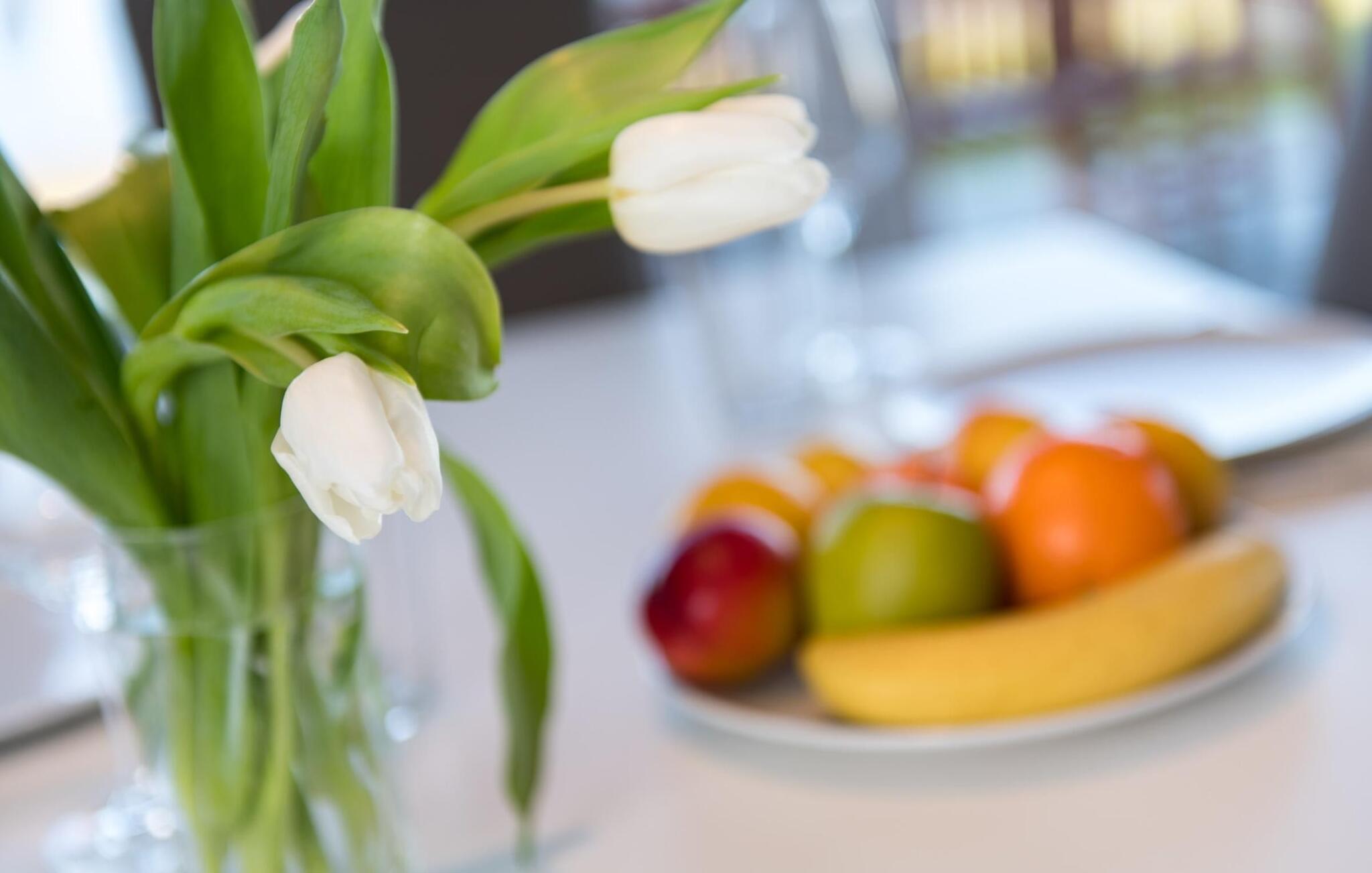 Im Urlaub ist Zeit für kreatives Kochen, die rundum ausgestattete Wohnküche lässt hierbei keine Wünsche offen. Frühstücken bei Morgensonne auf der Ostterrasse, Urlaubsfeeling pur.