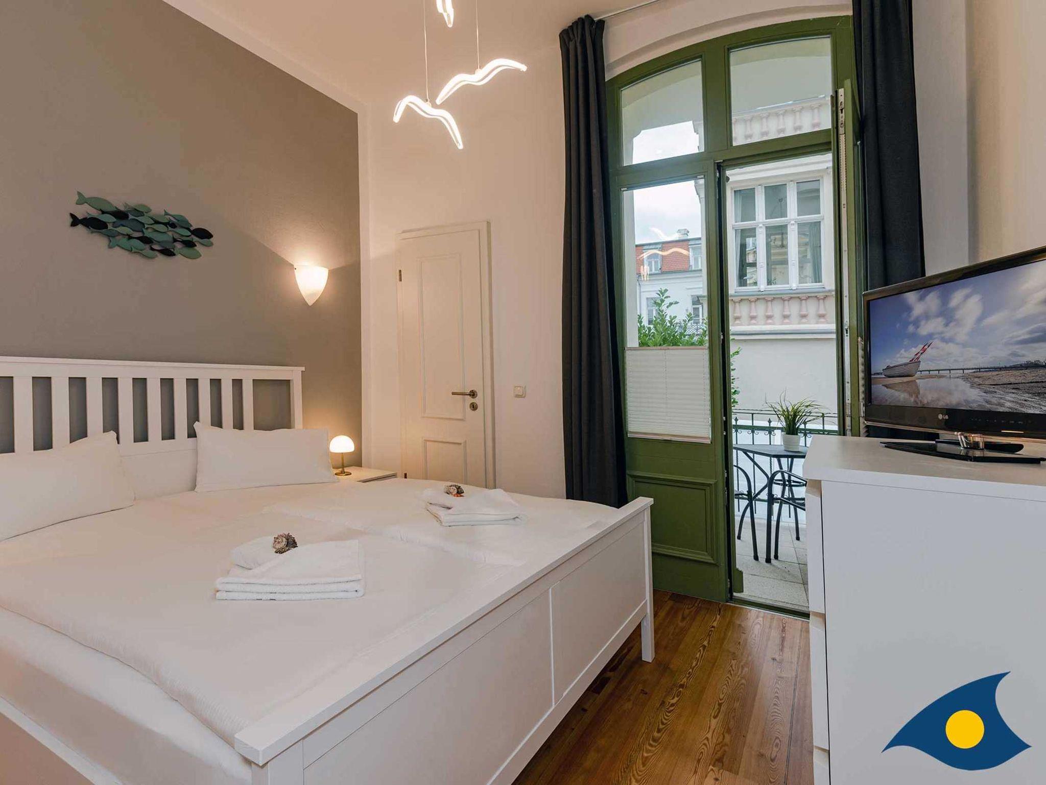 Obwohl sehr zentral und strandnah in Bansin gelegen, liegt die Ferienwohnung ruhig auf der Rückseite der Villa. Zwischen den Häusern können Sie die Ostsee erblicken und den Abend auf einem der zwei Balkone ausklingen lassen.