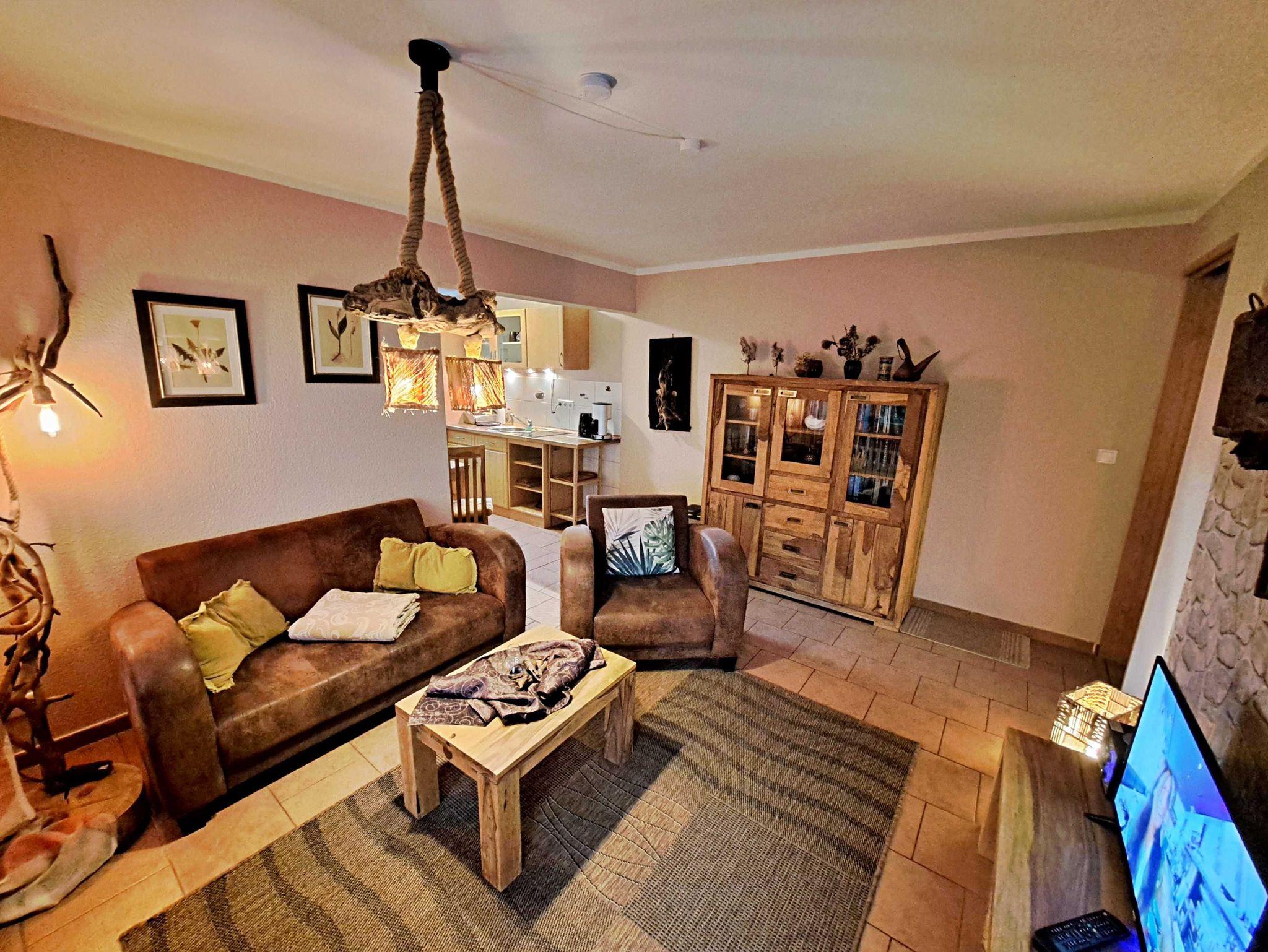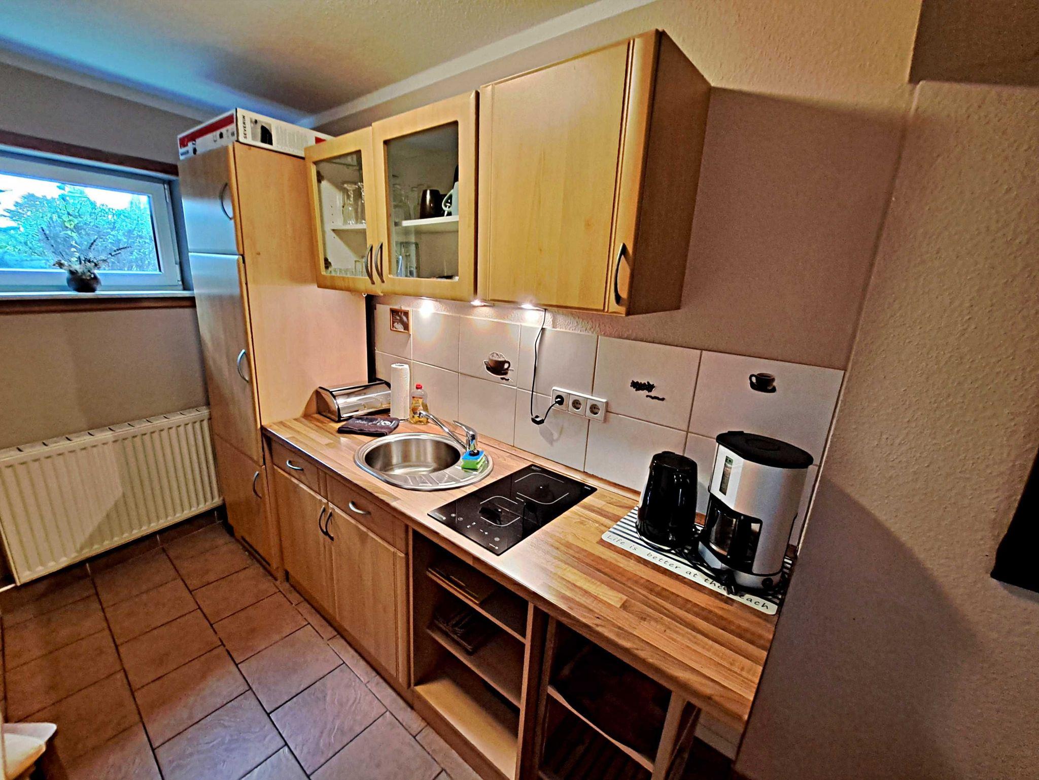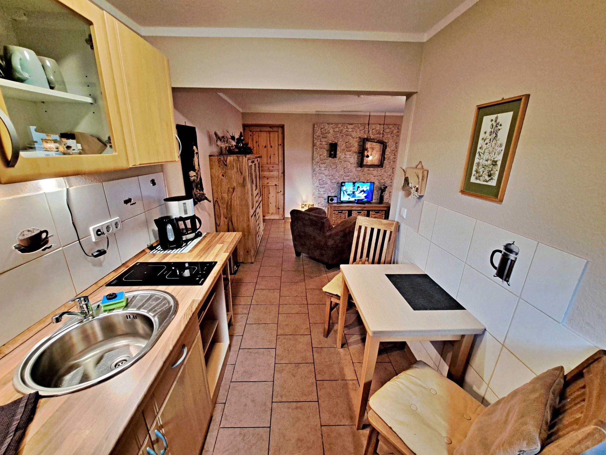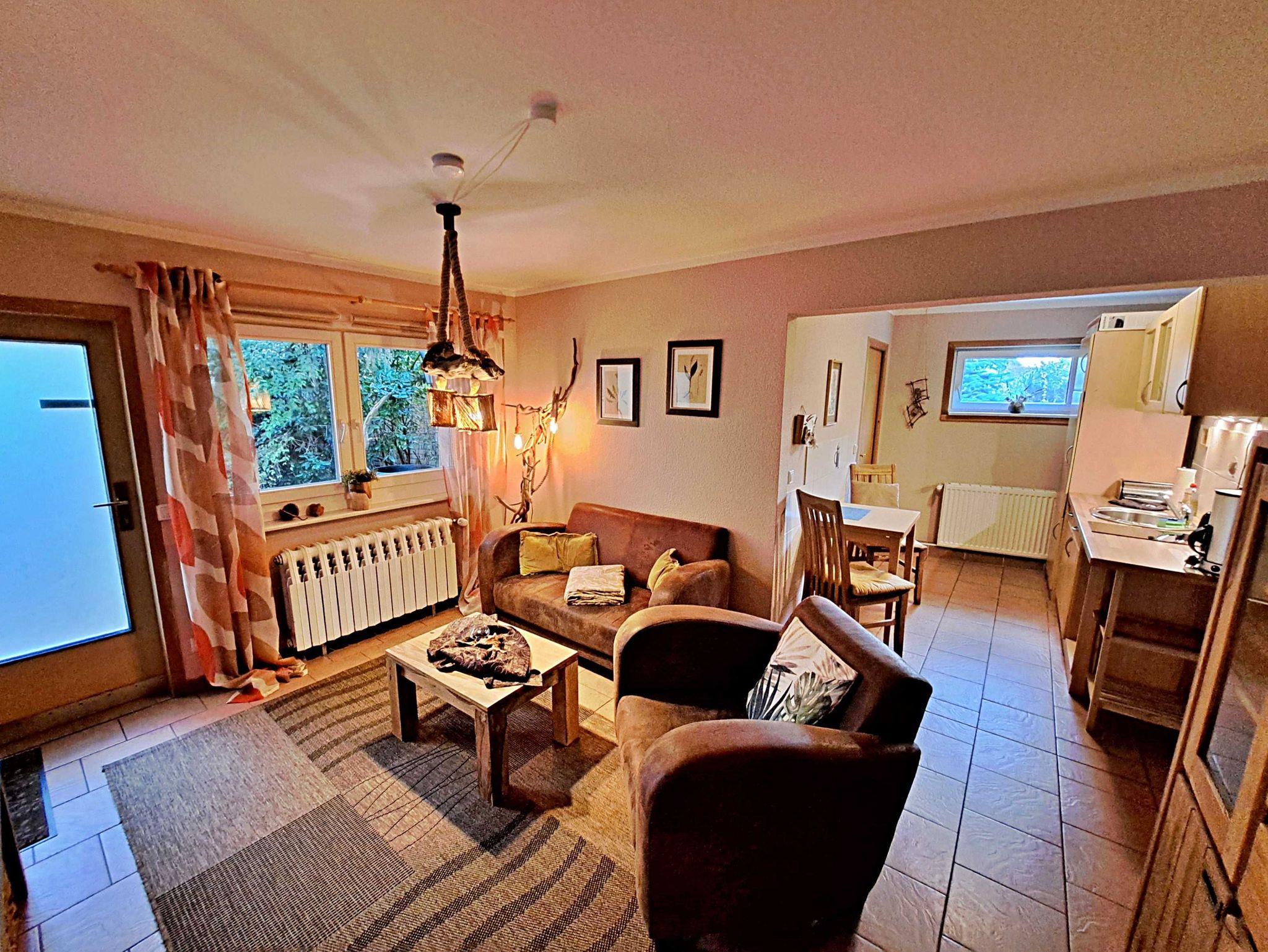 Herzlich willkommen in unserem charmanten 55 qm großen Ferienhaus, das sich auf dem Grundstück der Pension Elsbeth befindet! Hier erwartet Sie ein gemütliches Wohnzimmer mit einer einladenden Sitzecke, ideal zum Entspannen nach einem erlebnisreichen Tag. Die praktische Pantryküche ist mit einem 2-Platten-Ceranherd, einem kleinen Backofen, Kaffeemaschine und Wasserkocher ausgestattet - perfekt, um Ihre Lieblingsgerichte zuzubereiten. Am Esstisch mit 2 Stühlen können Sie auch bei schlechtem Wetter Ihr Frühstück genießen. Das separate Schlafzimmer bietet ausreichend Platz für erholsame Nächte und es ist sogar Raum für ein Kinderbett vorhanden, sodass auch die kleinen Gäste sich wohlfühlen können. Das Bad mit Dusche, WC und Fön rundet das Angebot ab. Genießen Sie die frische Luft auf Ihrer eigenen Terrasse direkt vor dem Eingang, wo Sie entspannte Stunden im Freien verbringen können. Und das Beste: Ihr kleiner Hund (bis 5 kg) ist bei uns herzlich willkommen! Für Ihren Aufenthalt steht Ihnen unser kostenloses W-LAN zur Verfügung, damit Sie jederzeit online bleiben können. Ihr Auto findet direkt am Haus einen sicheren Parkplatz.