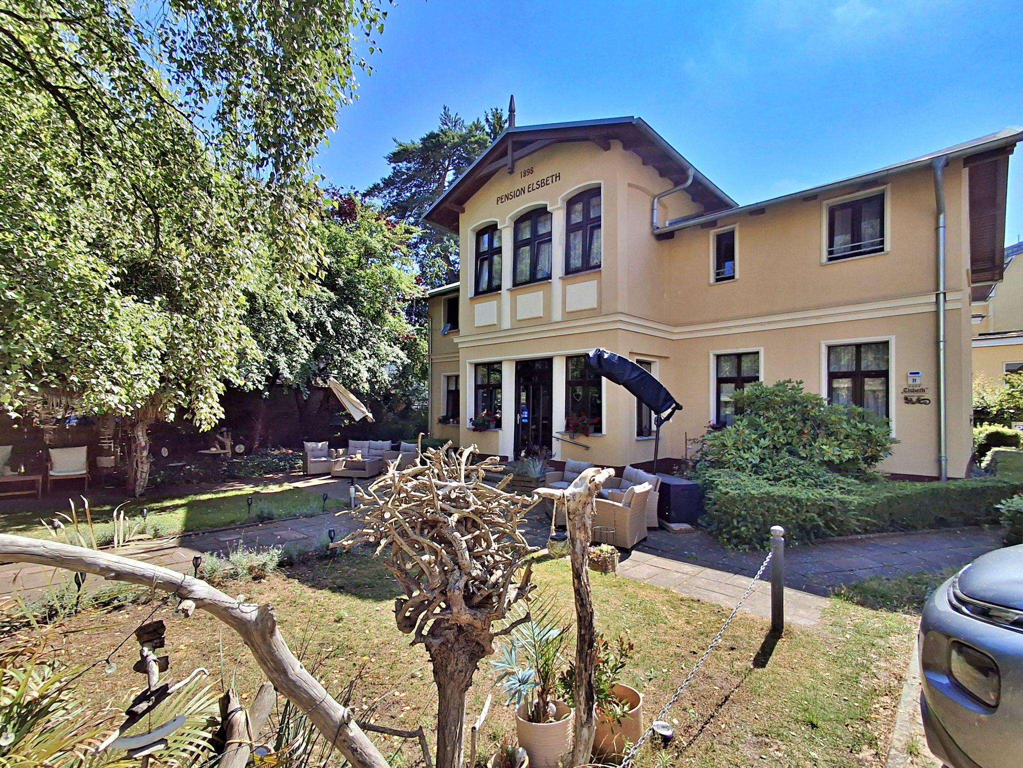Herzlich willkommen in der Wohlfühlpension „Elsbeth“! Früher ein Privatkinderheim, strahlt das Haus heute einen ganz besonderen Charme aus, der von den Gästen liebevoll als „die grüne Oase im Zentrum von Bansin“ bezeichnet wird. Umgeben von einem idyllischen Garten, sind wir der perfekte Ausgangspunkt, um die benachbarten Kaiserbäder Heringsdorf und Ahlbeck zu erkunden und die wunderschöne Insel Usedom mit dem Rad zu entdecken.