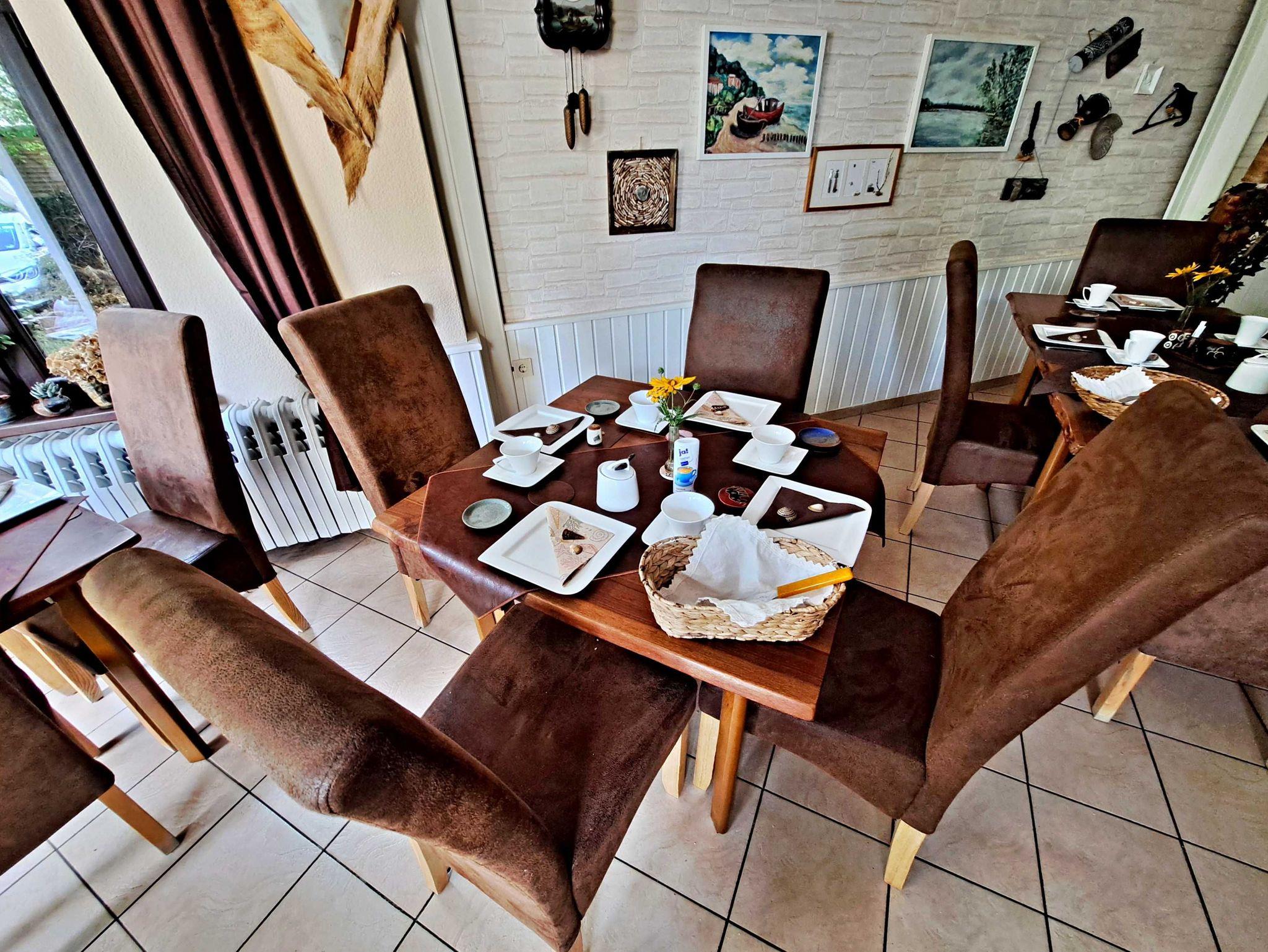 In unserem großzügigen Frühstücksraum erwartet Sie eine entspannte Atmosphäre, die durch warme Farben und liebevolle Details in unseren individuell gestalteten Zimmern ergänzt wird. Für Abwechslung sorgt unsere kleine Bücherei, die sowohl für Jung als auch für Alt etwas zu bieten hat. Ein besonderes Highlight ist unsere Verkaufsausstellung für Keramik der Buggenhagen-Behindertenwerkstatt Heringsdorf, die bei unseren Gästen sehr beliebt ist. Diese wird durch die berührende Fotoausstellung „Afrikas Kinder“ ergänzt, da wir uns seit über 10 Jahren für eine Schule in Kenia engagieren und dort mit Essen und beim Bau unterstützen.