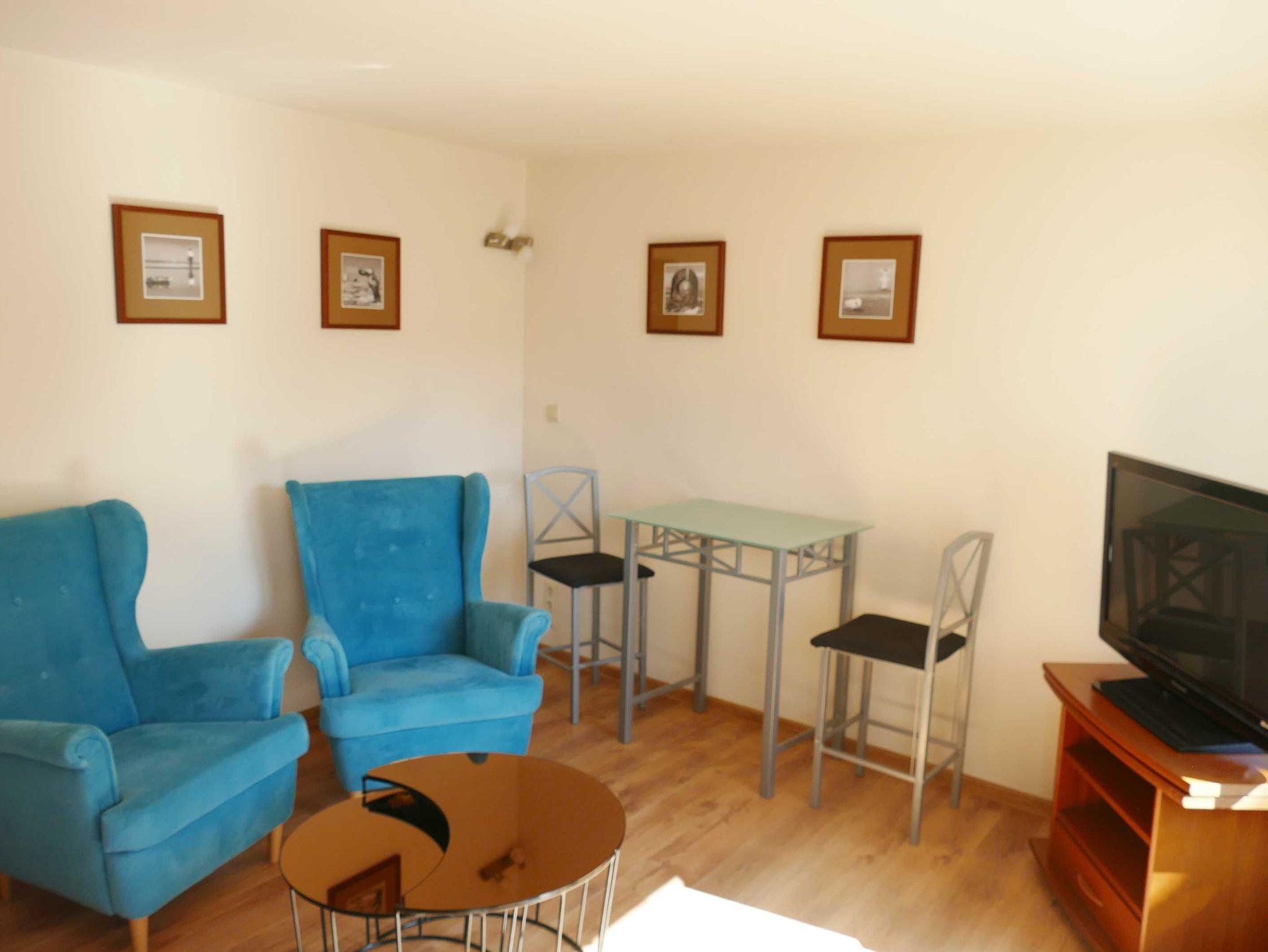 Dieser ca. 30 qm große helle und freundliche Bungalow mit kombiniertem Wohn- und Schlafraum ist für zwei Personen geeignet. Neben einem Doppelbett, einer Sitz-Ecke, Sat-TV gehört auch eine kleine Pantry-Küche mit Zwei-Platten-Herd, Kühlschrank, Kaffeemaschine und Toaster zur Ausstattung der Wohnung. Das Bad hat Dusche und WC. Eine möblierte Terrasse direkt vor dem Bungalow lädt zum Frühstücken ein oder Sie lassen den Abend bei einem Glas Wein gemütlich ausklingen. Ihren eigenen Pkw können Sie gern direkt auf dem Grundstück parken.