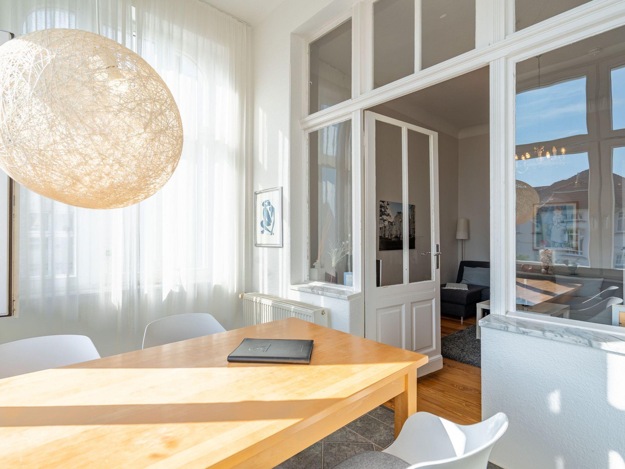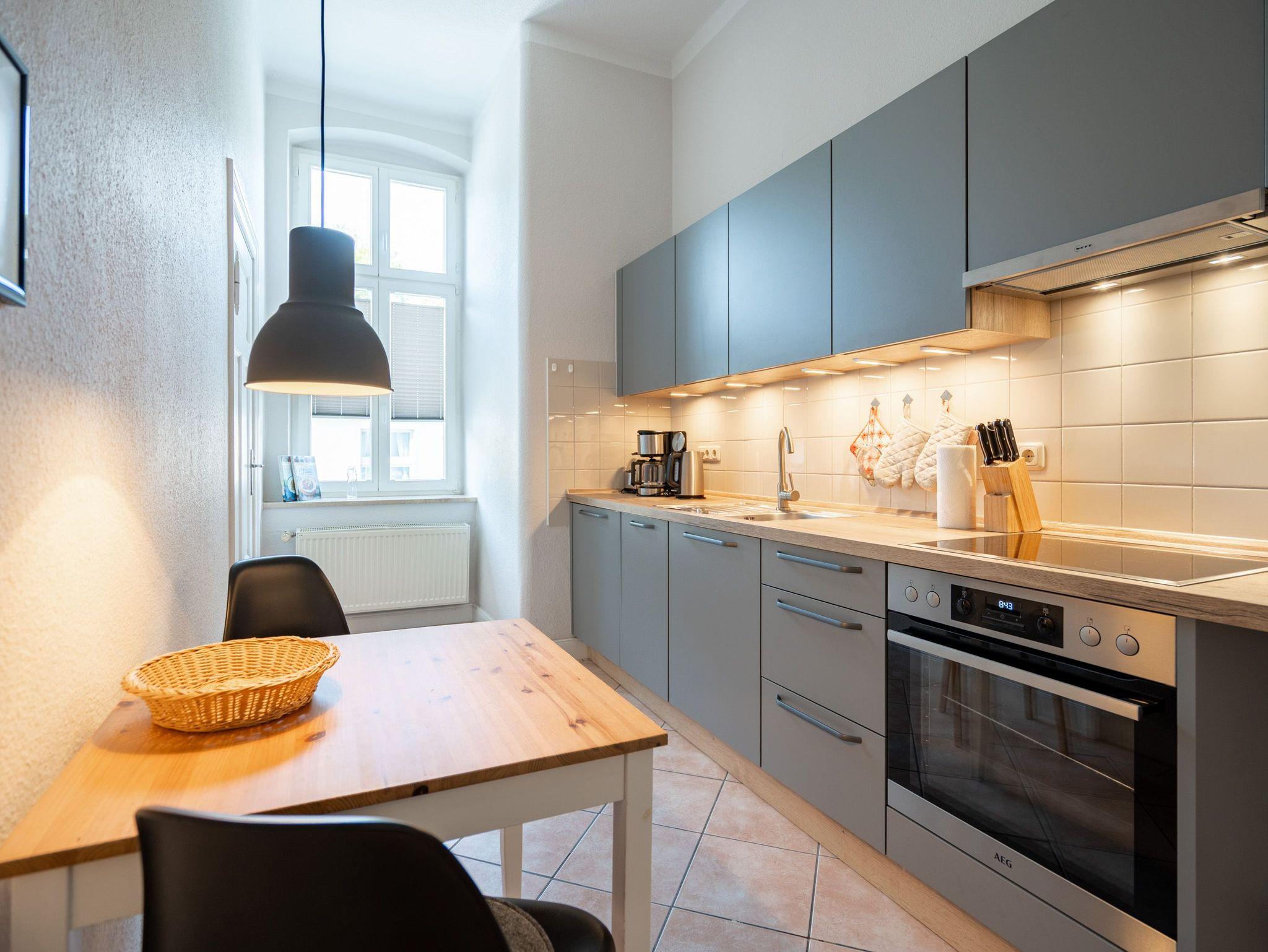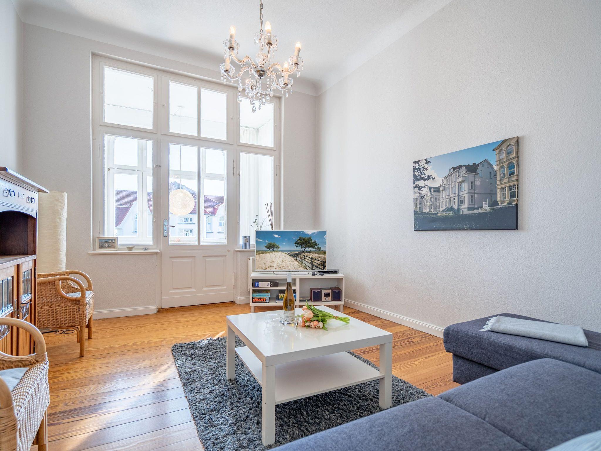 Das Meer zum Greifen nahe, erwartet Sie eine einladendes 2-Raum-Ferienwohnung (62 qm) im 1. Obergeschoss der Villa. 4 Personen finden hier in den hellen, freundlichen Räumen Platz zum Wohlfühlen. Der Wohnbereich ist mit einer bequemen Sitzgruppe (dient als Aufbettungsmöglichkeit für die 3. und 4. Person), Flat-TV und Blue-Ray-DVD-Spieler ausgestattet. Die lichtdurchflutete, verglaste Veranda mit Essplatz wird sicher schnell zu Ihrem Lieblingsplatz, von hier hat man (durch die Villen in der 1. Reihe) einen schönen Blick auf die Ostsee. Im großzügigen Schlafzimmer verspricht das moderne Boxspringbett angenehmen Schlafkomfort. Die separate und komplett ausgestattete Küche mit kleinem Essplatz und das Bad mit Dusche, WC und Bidet ergänzen die Wohnung. Ein Pkw-Stellplatz (Nr.7) befindet sich am Haus. Das WLAN-Netz ist kostenfrei verfügbar. Für Ihren Komfort sind die Betten bei der Anreise bezogen und Handtücher liegen bereit. Auf Wunsch stellen wir für unsere kleinen Gäste ein Kinderreisebett und einen Kinderhochstuhl ( gegen einen Aufpreis) zur Verfügung.