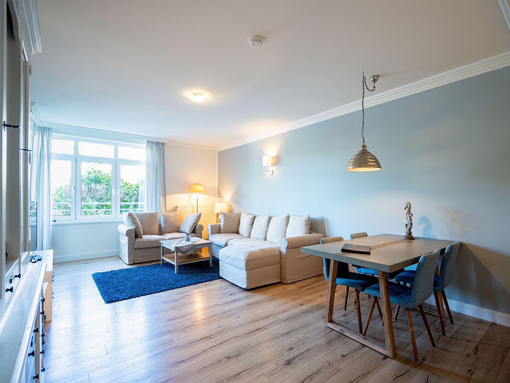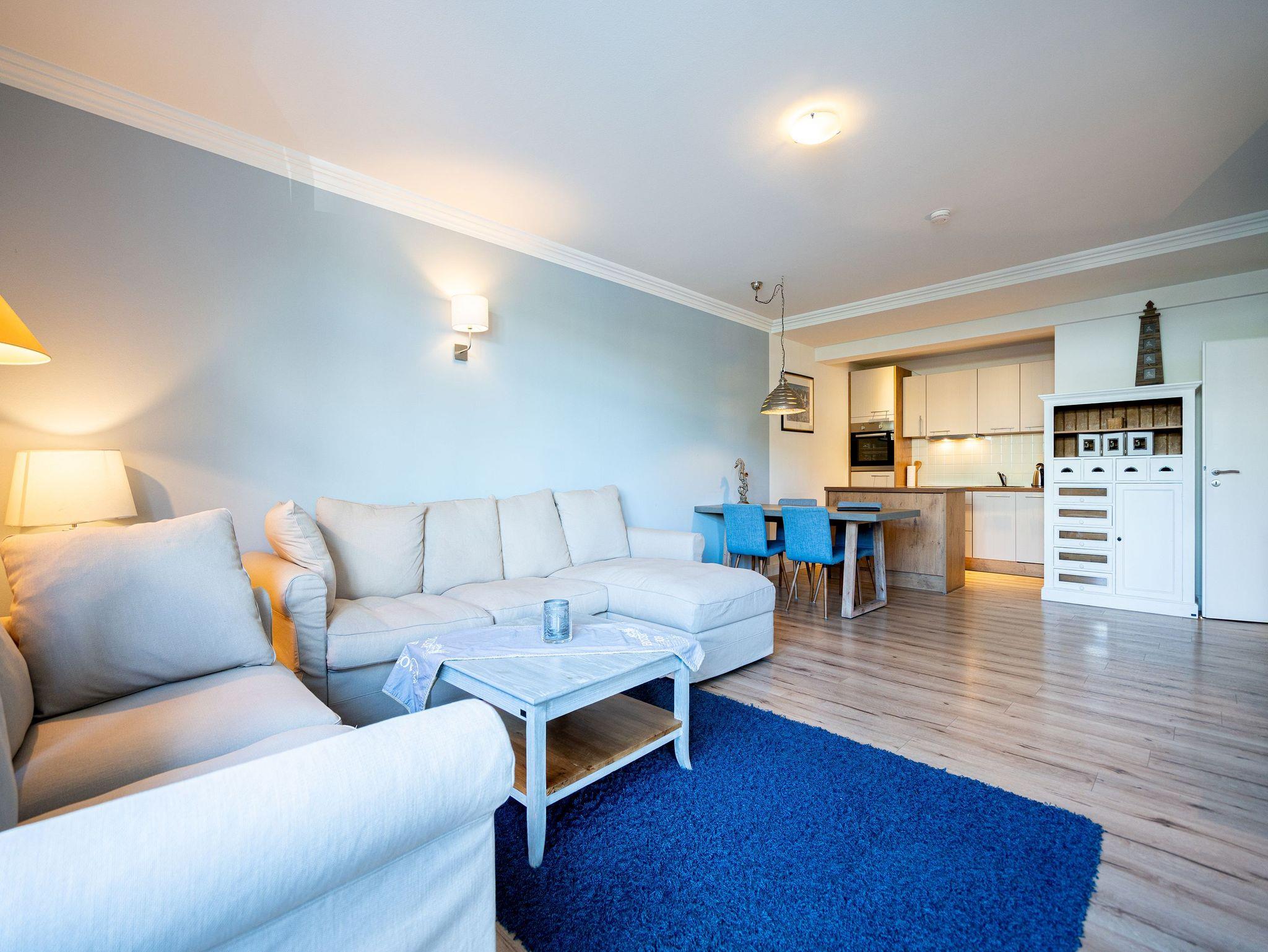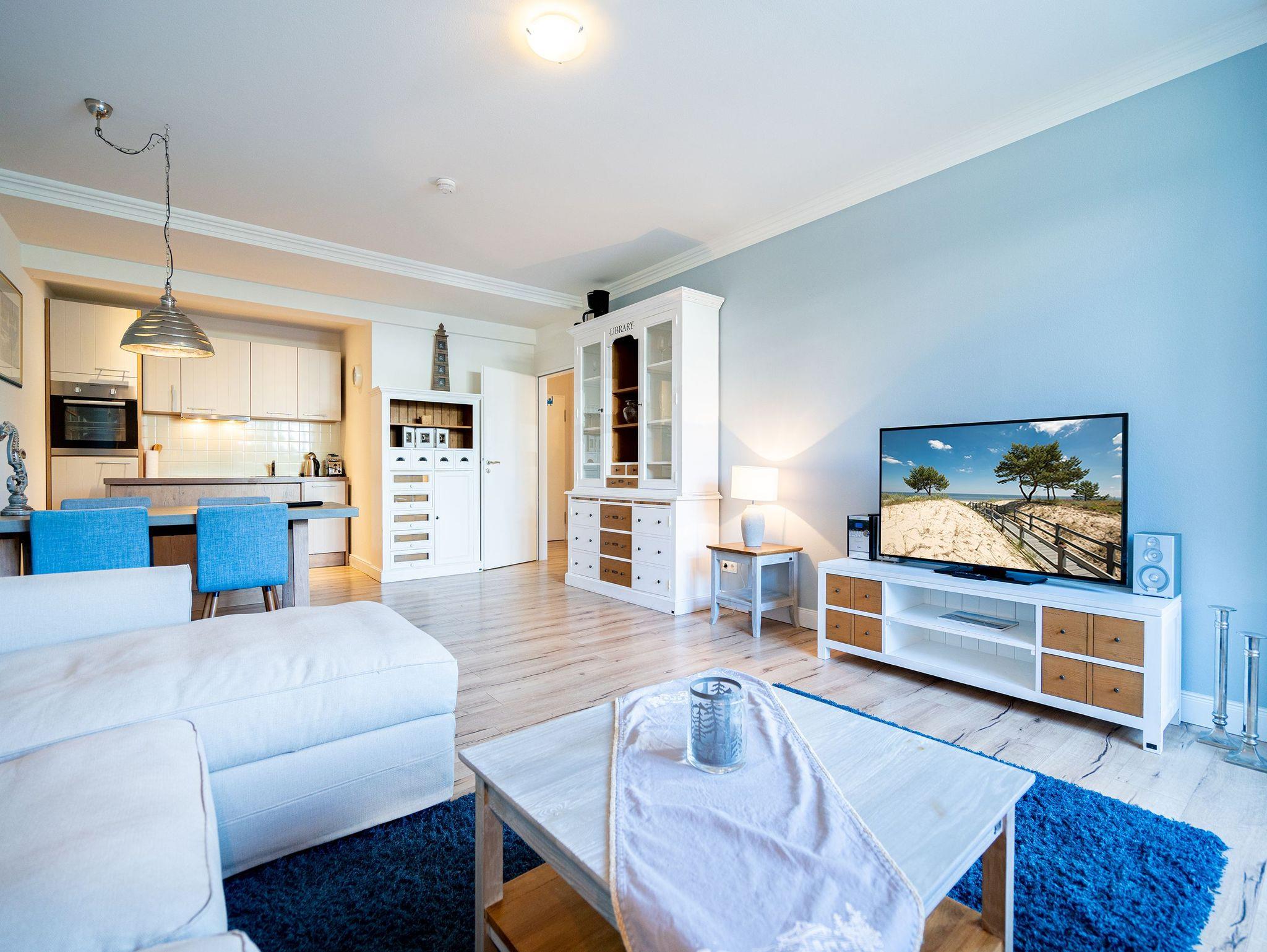 Das Rauschen der Ostsee im Rücken und den weißen Sandstrand direkt vor der Tür. Der morgendliche Blick auf den glitzernden Schloonsee und dazu ein Frühstück auf dem Balkon mit einer frischen Brise Meeresluft - so kann der Urlaub beginnen! Das 63 Quadratmeter große Urlaubsdomizil im Erdgeschoss für 2 Erwachsene, 1 Kind bis 16 Jahre [&] 1 Kleinkind (bis 3 Jahre im Kinderreisebett) empfängt Sie im maritimen Flair und verspricht Wohlfühlatmosphäre ab der ersten Minute. Der helle Wohn-Essbereich mit seiner großzügigen Sofalandschaft (als Aufbettung für die 3. Person möglich) und Flat-TV ist der ideale Erholungsort für die ganze Familie. Ein kleiner West-Balkon von 5 Quadratmetern gibt den Blick auf den Schloonsee mit seiner kleinen Uferpromenade frei. Die offene Küche mit Essplatz für bis zu 4 Personen integriert sich unauffällig in den Wohnraum und bietet alles, was Sie zum Zubereiten Ihrer Speisen im Urlaub benötigen. Ein gemütliches Schlafzimmer mit Boxpsringbett (1,80m x 2,00m), Flat-TV und DVD-Player sorgt auch im Urlaub für einen erholsamen Schlaf. Es bietet zudem genügend Platz für ein Kinderreisebett und bietet einen Zugang zum Balkon. Ein innenliegendes Duschbad mit Waschtisch und WC rundet dieses 2-Zimmer-Appartement ab. Für Ihre perfekte Urlaubszeit sind die Betten bereits bezogen und Handtücher liegen für Sie bereit. Ein Stellplatz in der Doppelparkergarage (oben, max. PKW-Höhe 1,50m, PKW-Länge max. 5,00m, Gewicht max. 2t) ist mit der Nr.1 gekennzeichnet. Kostenfreies WLAN sowie ein Briefkasten runden dieses Ostsee-Appartement ab.