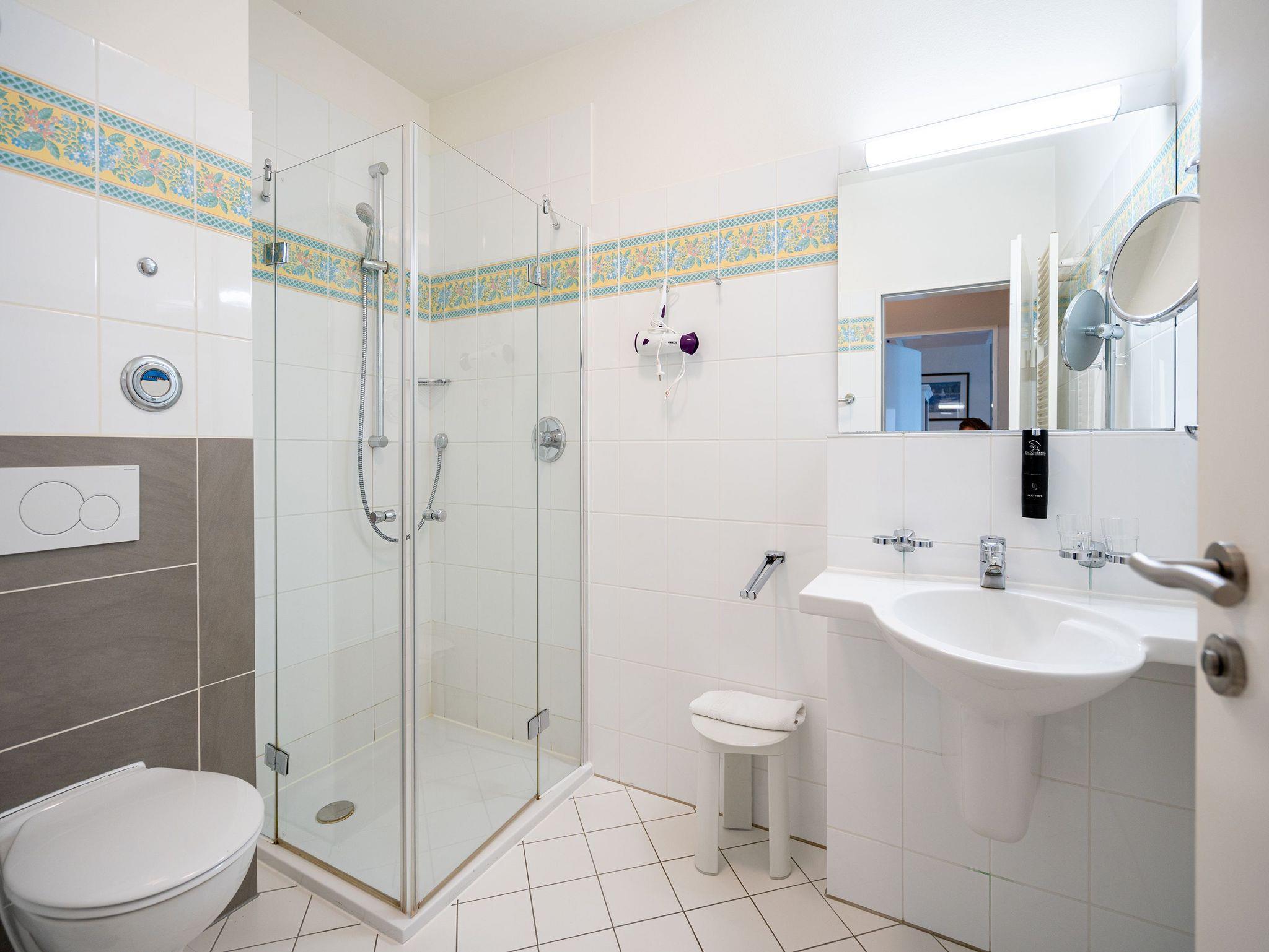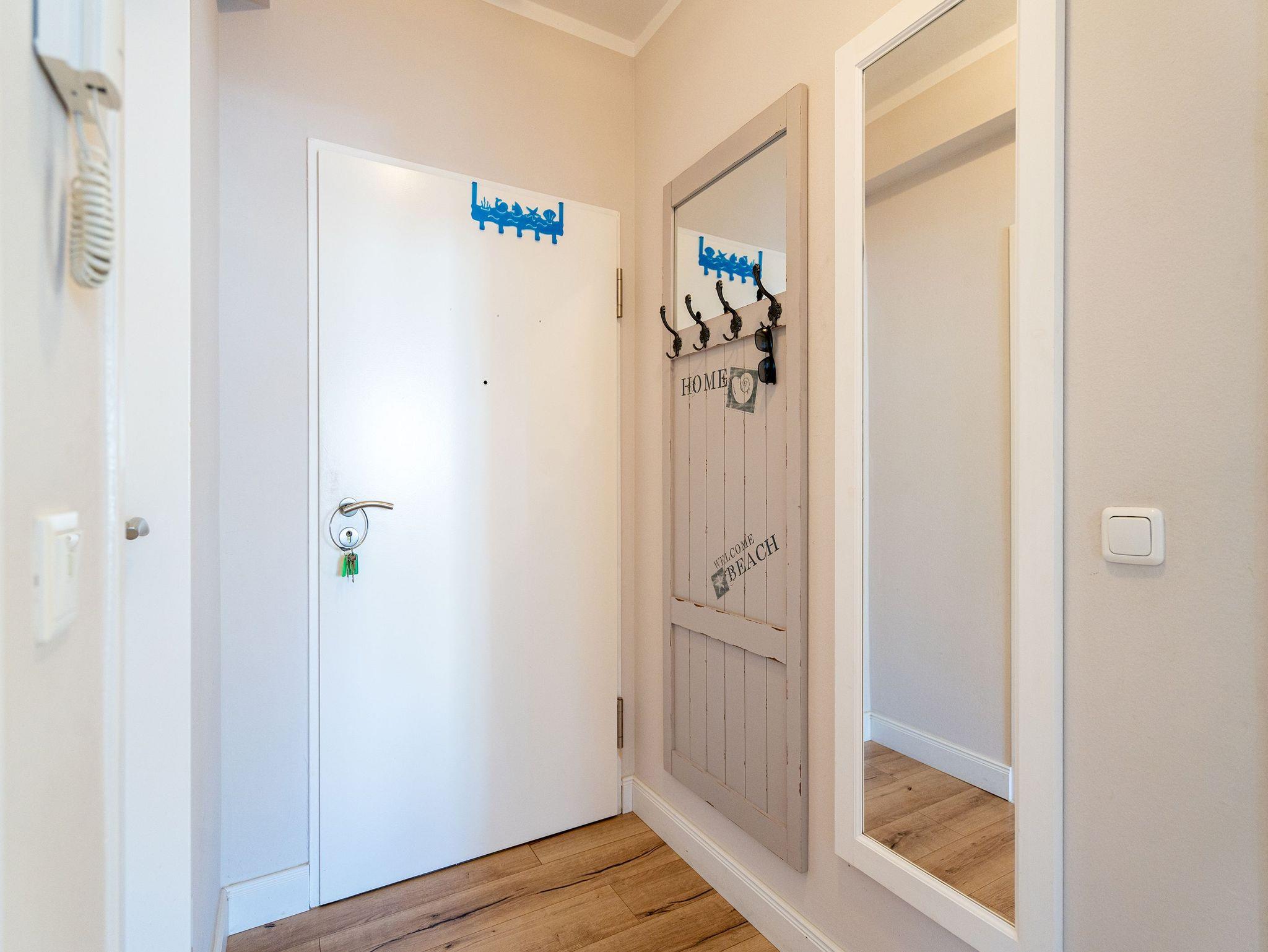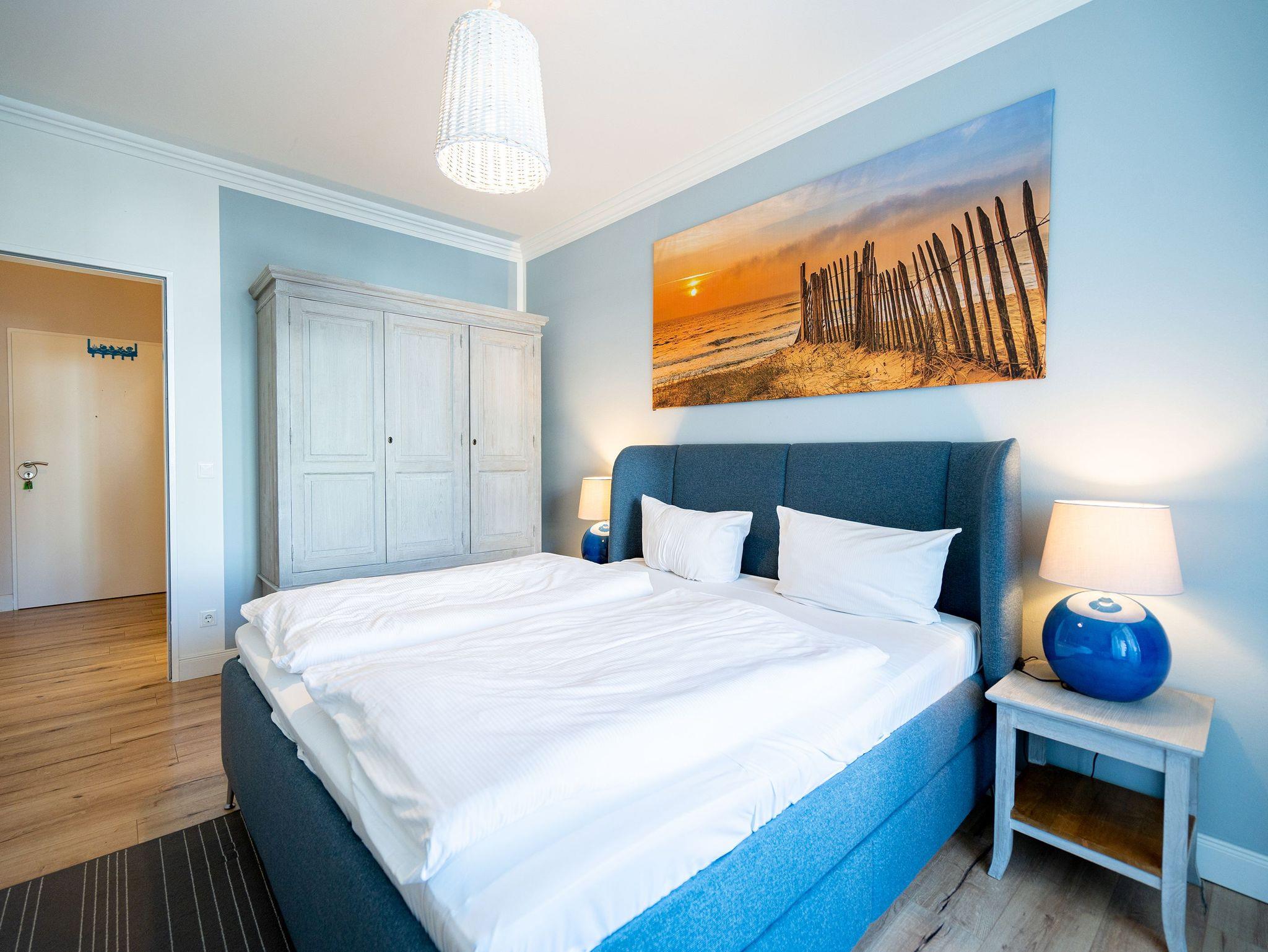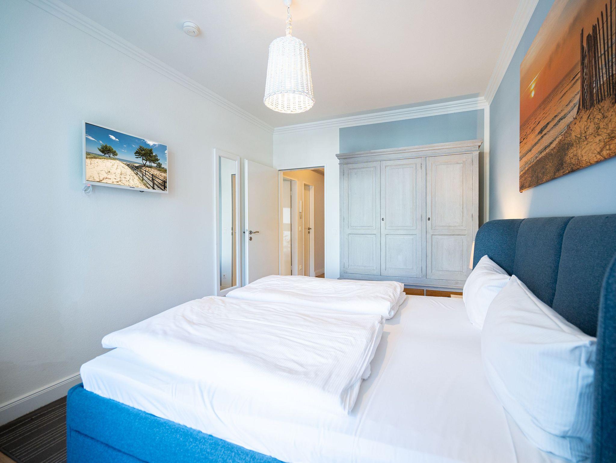 Das Rauschen der Ostsee im Rücken und den weißen Sandstrand direkt vor der Tür. Der morgendliche Blick auf den glitzernden Schloonsee und dazu ein Frühstück auf dem Balkon mit einer frischen Brise Meeresluft - so kann der Urlaub beginnen! Das 63 Quadratmeter große Urlaubsdomizil im Erdgeschoss für 2 Erwachsene, 1 Kind bis 16 Jahre [&] 1 Kleinkind (bis 3 Jahre im Kinderreisebett) empfängt Sie im maritimen Flair und verspricht Wohlfühlatmosphäre ab der ersten Minute. Der helle Wohn-Essbereich mit seiner großzügigen Sofalandschaft (als Aufbettung für die 3. Person möglich) und Flat-TV ist der ideale Erholungsort für die ganze Familie. Ein kleiner West-Balkon von 5 Quadratmetern gibt den Blick auf den Schloonsee mit seiner kleinen Uferpromenade frei. Die offene Küche mit Essplatz für bis zu 4 Personen integriert sich unauffällig in den Wohnraum und bietet alles, was Sie zum Zubereiten Ihrer Speisen im Urlaub benötigen. Ein gemütliches Schlafzimmer mit Boxpsringbett (1,80m x 2,00m), Flat-TV und DVD-Player sorgt auch im Urlaub für einen erholsamen Schlaf. Es bietet zudem genügend Platz für ein Kinderreisebett und bietet einen Zugang zum Balkon. Ein innenliegendes Duschbad mit Waschtisch und WC rundet dieses 2-Zimmer-Appartement ab. Für Ihre perfekte Urlaubszeit sind die Betten bereits bezogen und Handtücher liegen für Sie bereit. Ein Stellplatz in der Doppelparkergarage (oben, max. PKW-Höhe 1,50m, PKW-Länge max. 5,00m, Gewicht max. 2t) ist mit der Nr.1 gekennzeichnet. Kostenfreies WLAN sowie ein Briefkasten runden dieses Ostsee-Appartement ab.