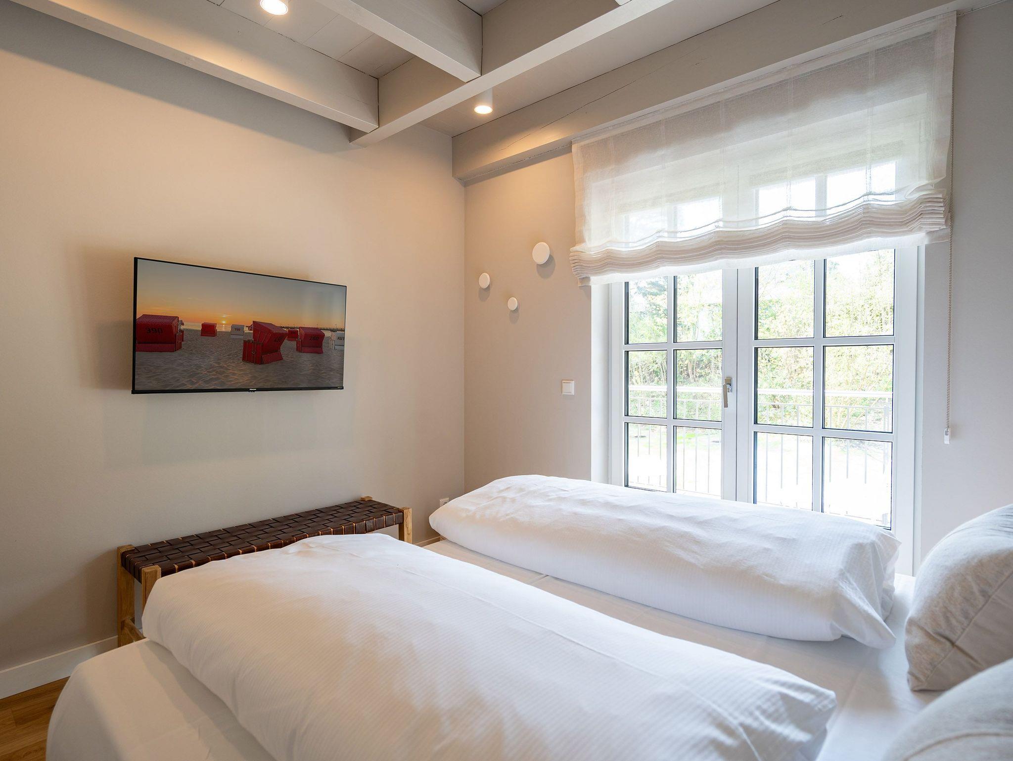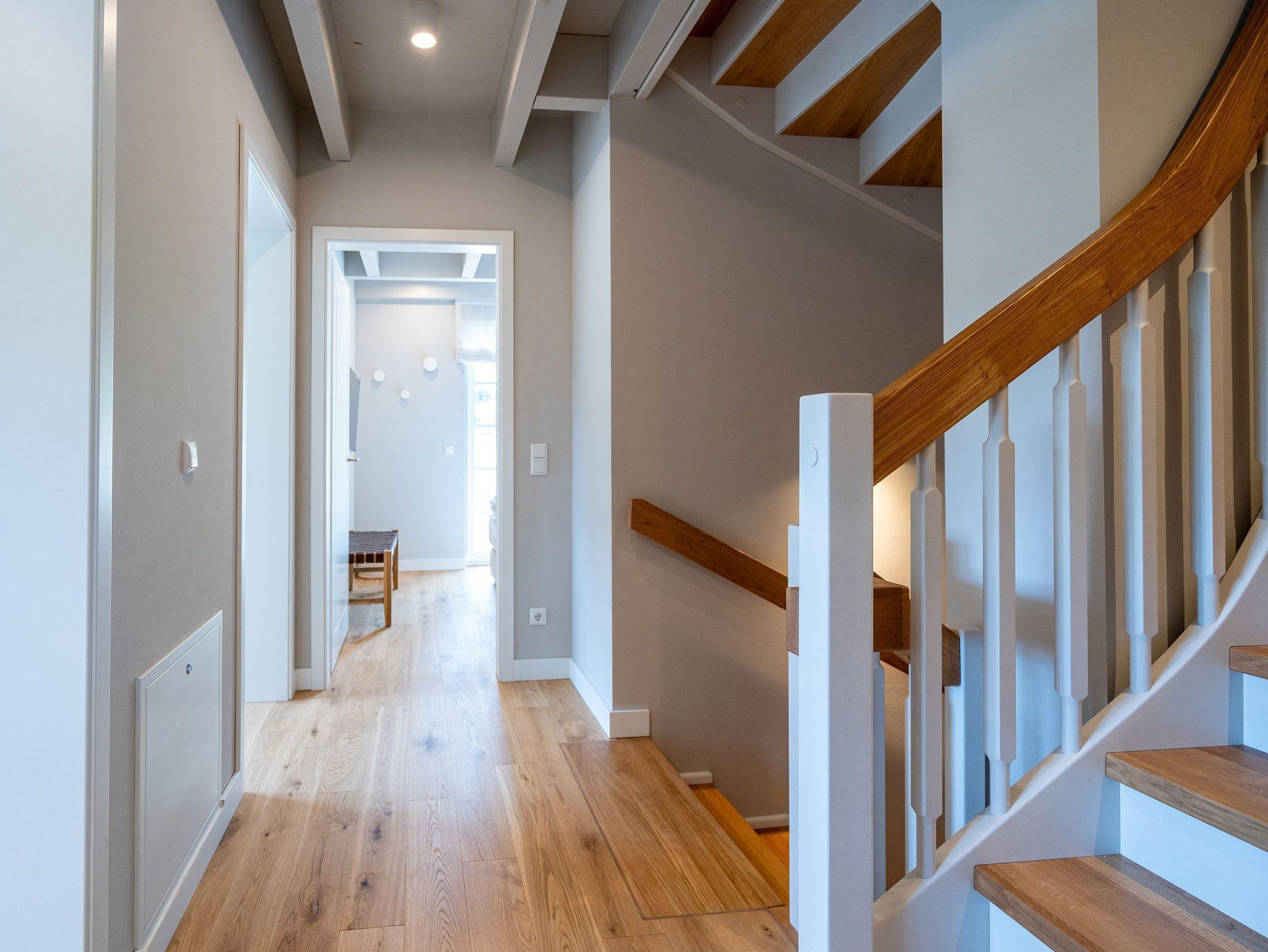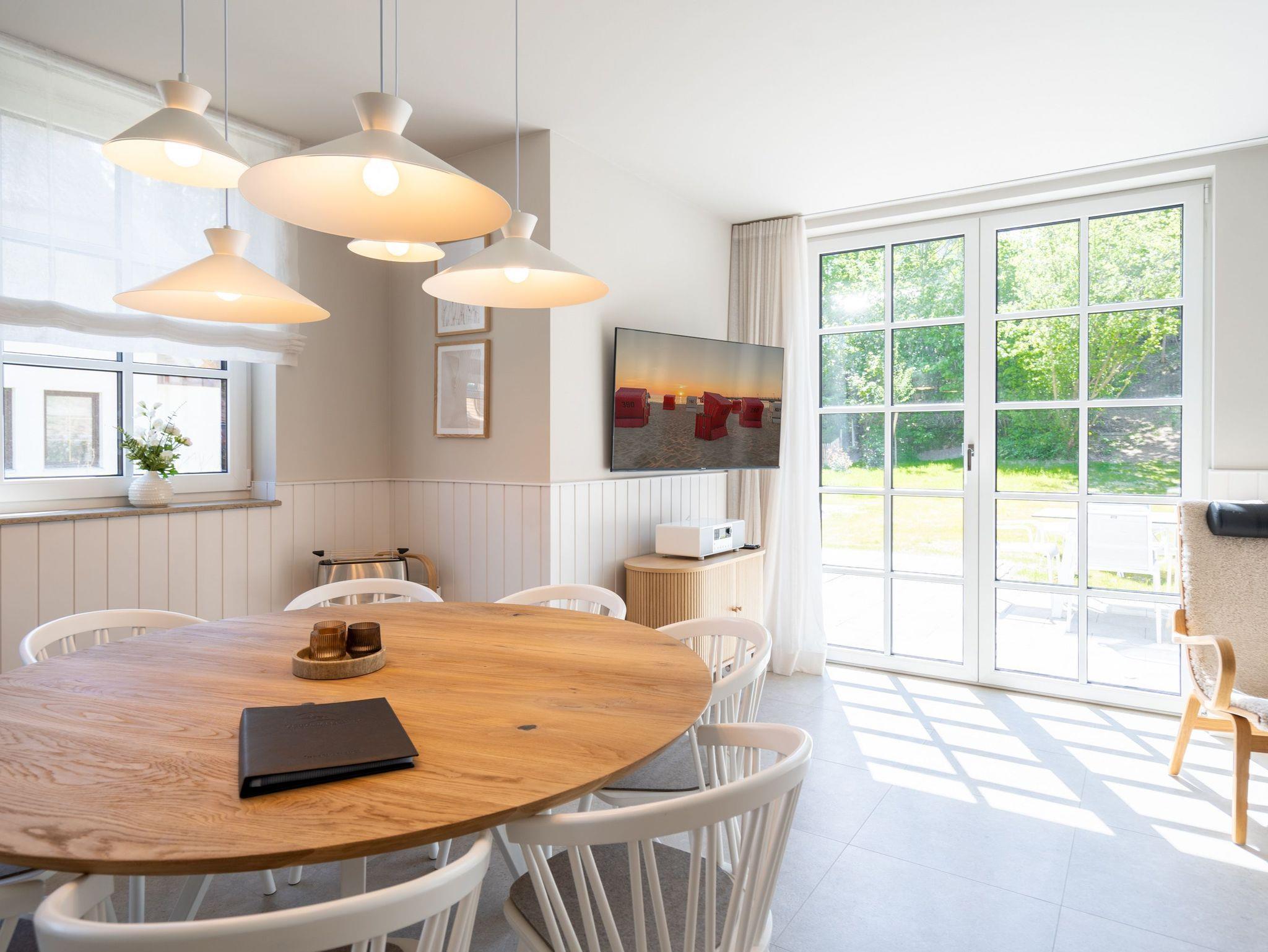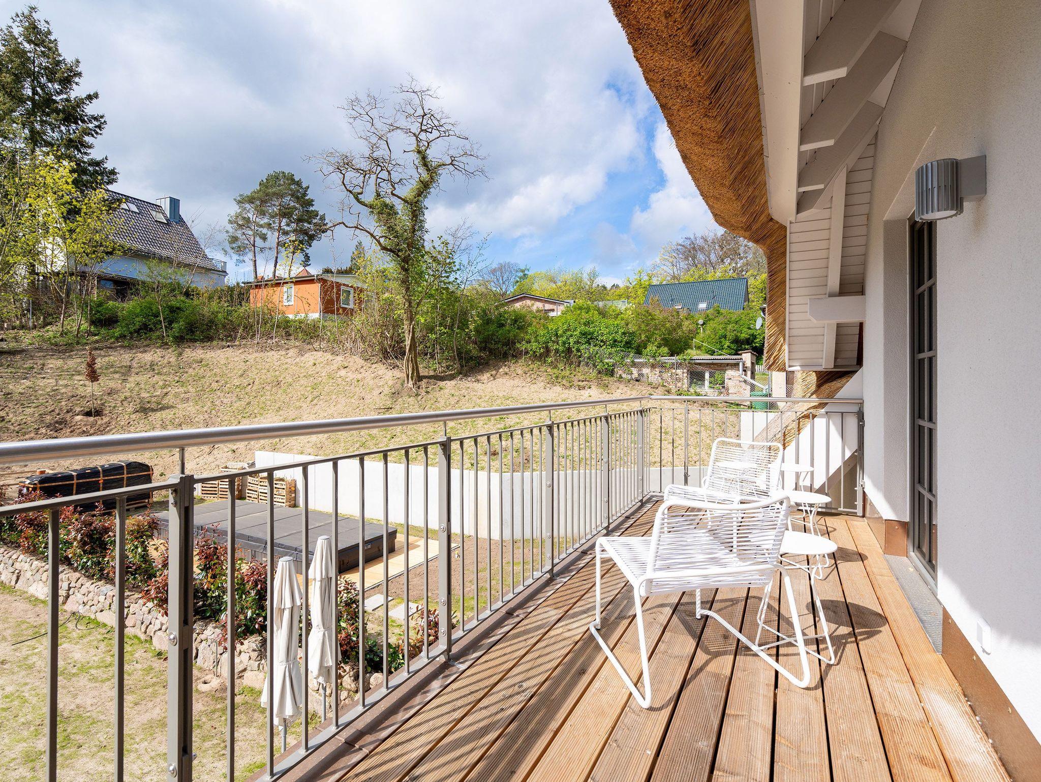 Herzlich willkommen in der wunderschönen Ferienhaushälfte Reetliebe, im bezaubernden Seebad Bansin. Diese großzügige Feriendomizil erstreckt sich mit seinen 129 qm über drei Etagen und bietet Platz für bis zu 8 Personen, perfekt für einen unvergesslichen Urlaub an der Ostseeküste. Im Erdgeschoss erwartet Sie ein einladender offener Wohn- und Essbereich, der ideal ist für gesellige Zusammenkünfte. Die offene und voll ausgestattete Küche verfügt über moderne Annehmlichkeiten, darunter ein Backofen mit Mikrowellenfunktion und ein Induktionsherd. Der Essplatz bietet ausreichend Platz für gemeinsame Mahlzeiten, während eine gemütliche Sitzgruppe mit einem großzügigen 50 Flat-TV, einem Sonoro Primus SO-340 All-in-one music System und einem einladenden Kaminofen für Entspannung sorgt. Vom Wohnbereich haben Sie Zugang zur sonnigen Süd-West-Terrasse, die perfekt ist, um die frische Luft zu genießen. Ein weiteres Highlight des Erdgeschosses ist das moderne Wellness-Bad mit einer Finnischen Sauna, einer erfrischenden Dusche, einem Waschtisch und einem WC. Ein Waschtrockner im Flurschrank bietet zusätzlichen Komfort während Ihres Aufenthalts. Im ersten Stockwerk finden Sie drei gemütliche Schlafzimmer, jeweils ausgestattet mit komfortablen Boxspringdoppelbetten (1,80m x 2,00m), einem Einbaukleiderschrank und einem Flat-TV. Zwei der Schlafzimmer verfügen über Zugang zum Süd-West-Balkon, der einen herrlichen Blick in den Garten bietet. Ein zweites Badezimmer mit Dusche, Waschtisch und WC vervollständigt diese Etage. Das zweite Obergeschoss beherbergt das vierte Schlafzimmer, das ebenfalls mit einem komfortablen Boxspringdoppelbett (1,60m x 2,00m), einem Kleiderschrank, einer Kommode und einem Flat-TV ausgestattet ist. Ein innenliegendes Gäste-WC sorgt für zusätzlichen Komfort. Alle Schlafzimmer sind mit Verdunklungsmöglichkeiten ausgestattet, damit Sie ungestört entspannen können. Im Außenbereich erwartet Sie ein wahrer Genuss: Ein Strandkorb lädt zum Entspannen ein, während die Terrasse mit Sitzmöglichkeiten für 8 Personen perfekt ist für gemeinsame Mahlzeiten im Freien. Der Garten ist komplett eingezäunt. Zudem stehen Ihnen zwei PKW-Stellplätze direkt am Haus zur Verfügung, mit der Möglichkeit, ein E-Auto vor Ort (kostenpflichtig) zu laden. Für Ihre Fahrräder befindet sich ein abschließbarer Abstellraum am Haus. Erleben Sie unvergessliche Urlaubstage in dieser traumhaften Ferienwohnung, die Luxus, Komfort und eine erstklassige Lage vereint und Ihnen einen perfekten Rückzugsort an der Ostseeküste bietet.