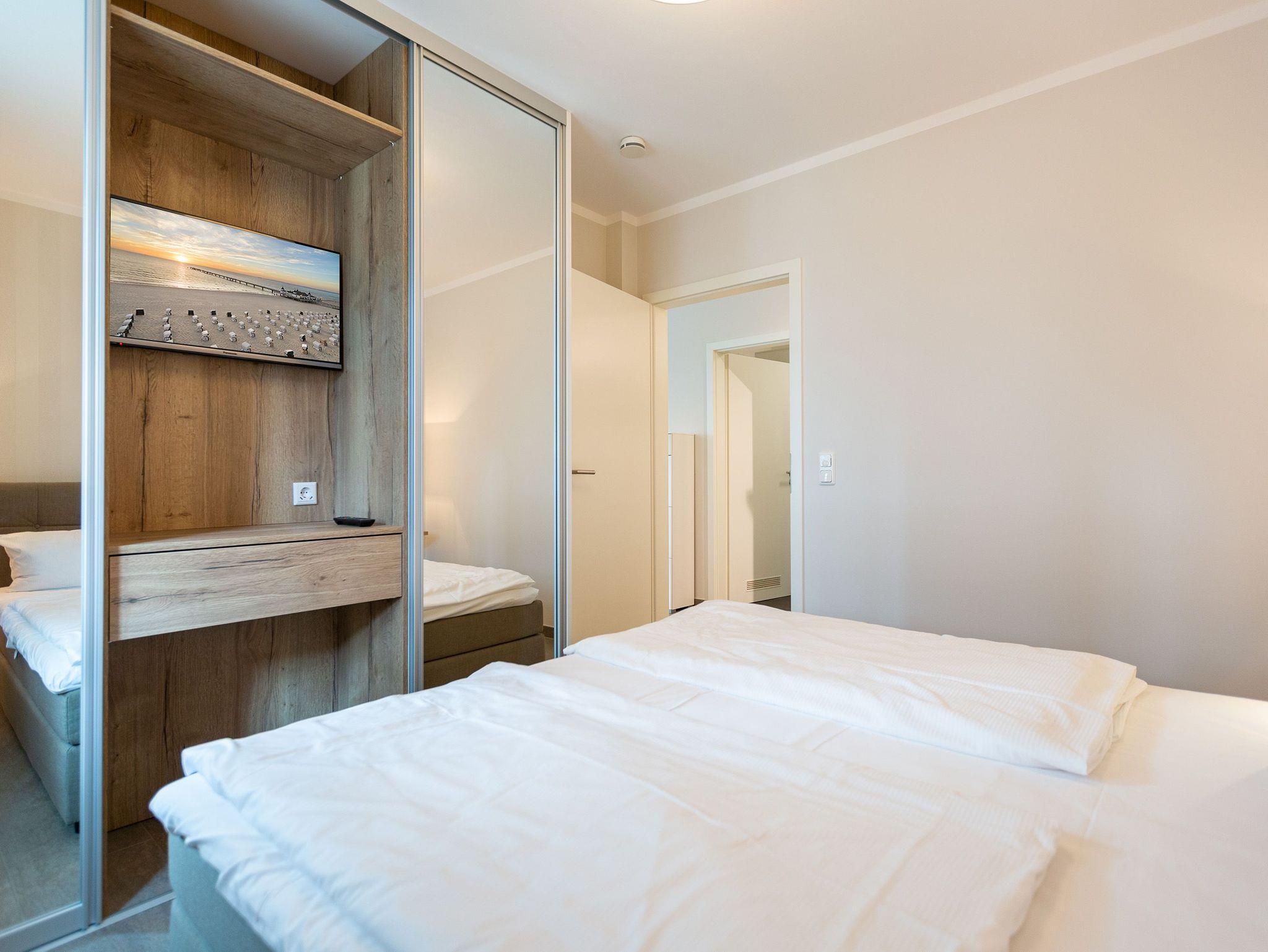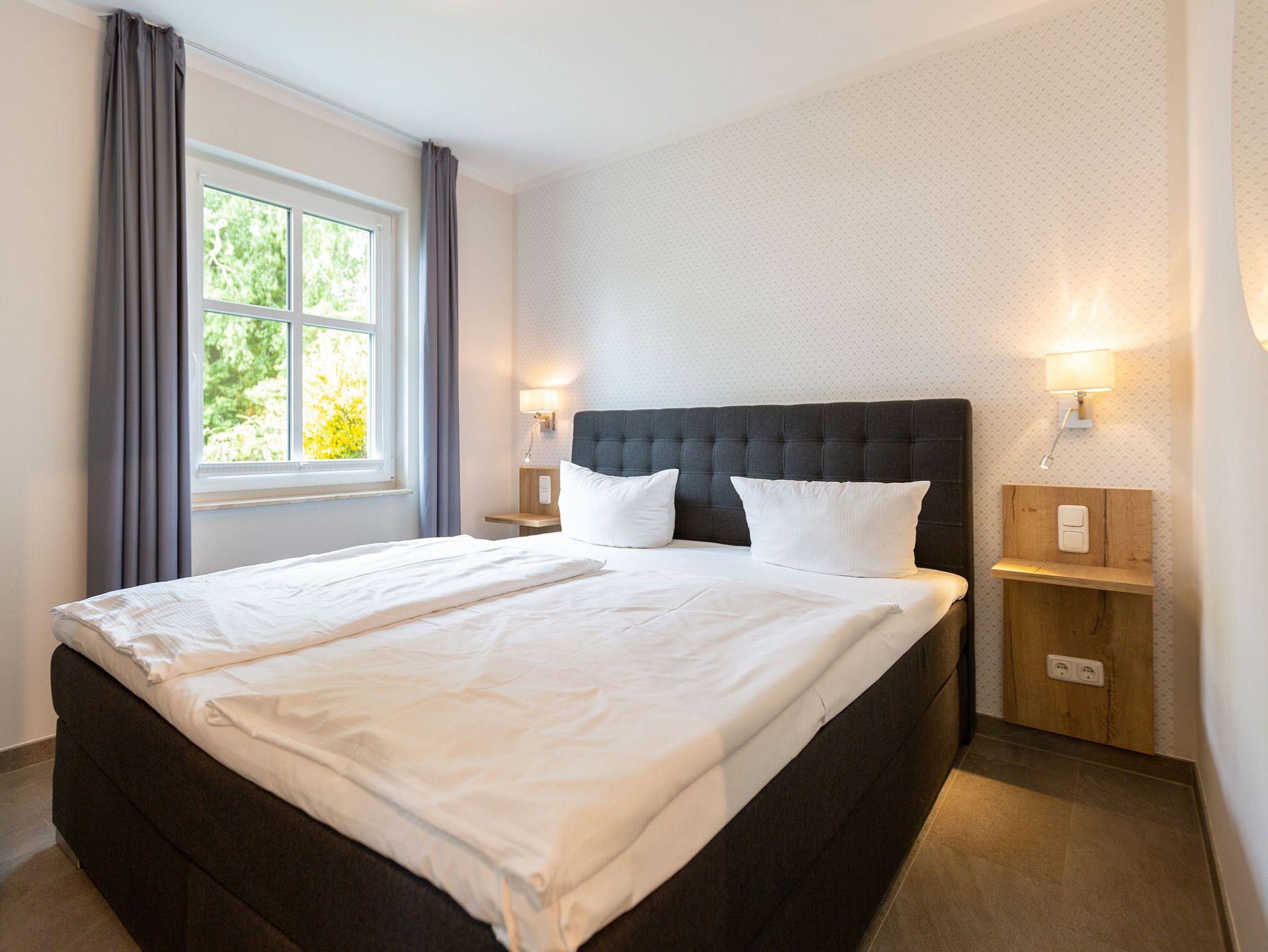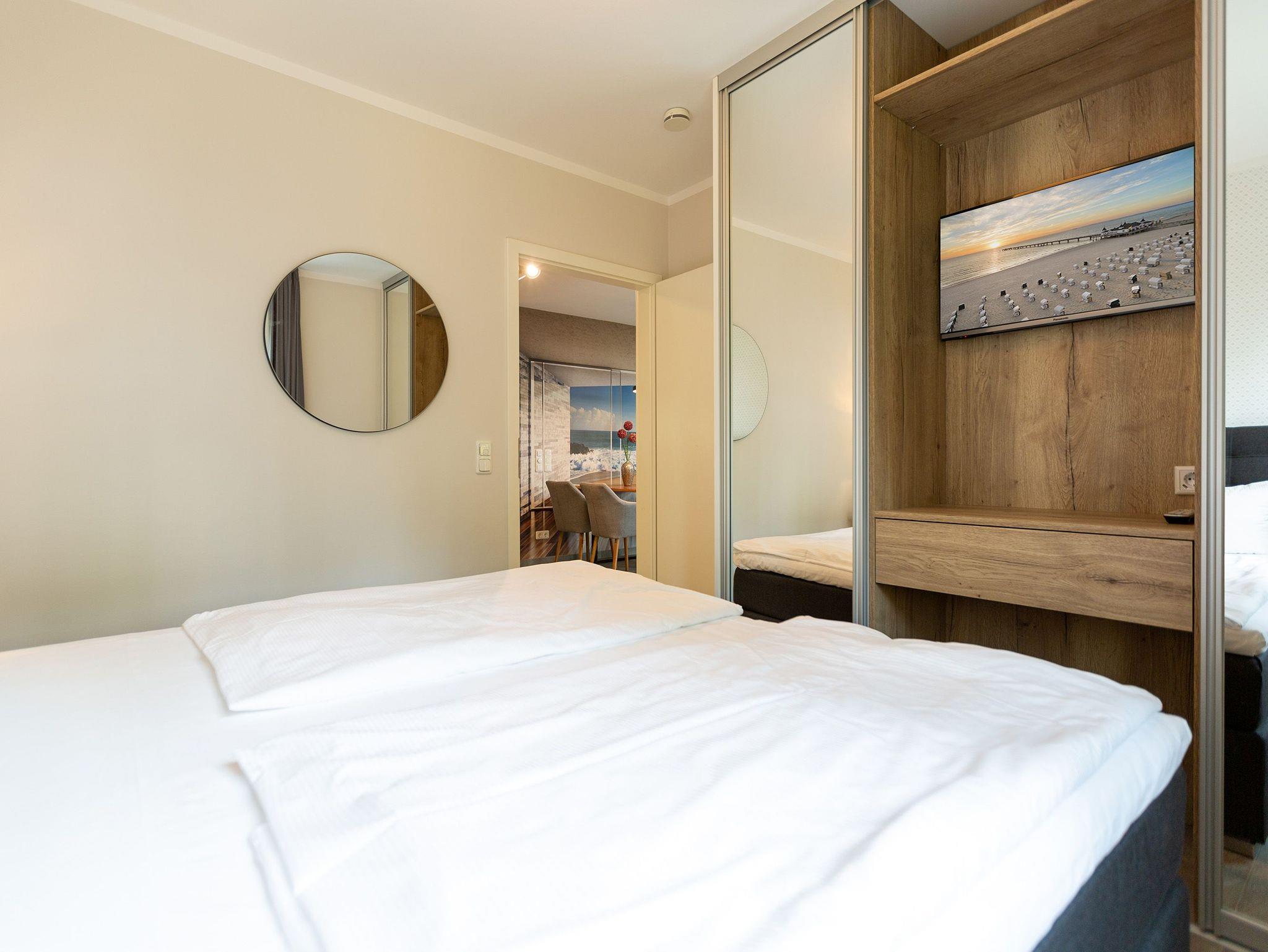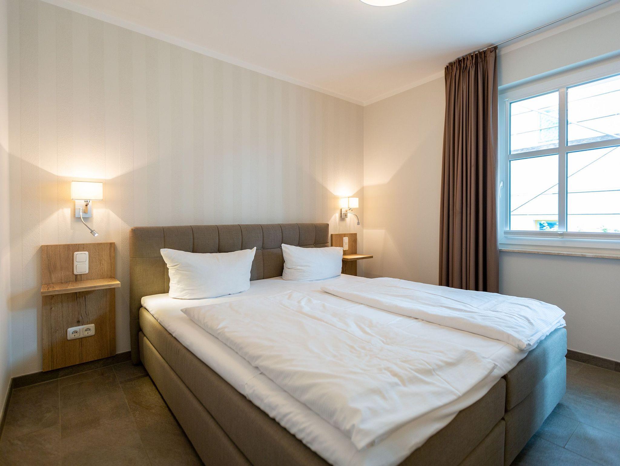 In diesem Appartement fühlen Sie sich direkt wie Zuhause! Eine gemütliche Einrichtung mit viel Liebe zum Detail empfängt Sie auf 61qm und drei Zimmern für bis zu 4 Personen im Erdgeschoss. Der wunderbar offen gestaltete Wohn-Ess-Bereich mit seiner bequemen Sofalandschaft, die sich elektrisch einstellen lässt, lädt zum gemütlichen Beisammensein ein. Ein Flat-TV, Blue-Ray-Player und eine iPod-Docking-Station runden den Wohnraum ab. Das besondere Highlight ist der zweiseitige Gaskamin, den Sie bequem per Fernbedienung steuern können und der seine wohlige Wärme bis zum Essplatz gegenüber versprüht. Die voll ausgestattete Küche (Ceranfeld, Backofen, Kühlschrank mit Gefrierfach, Spülmaschine, Mikrowelle und Kleinküchengeräte) lässt beim Zubereiten Ihrer Speisen keine Wünsche offen. Die gemütliche Süd-Terrasse mit Essplatz lädt Sie ein Ihren Abend draußen ausklingen zu lassen. Zwei Schlafzimmer mit Boxspringbetten (1,80m x 2,00m) bieten ausreichend Schlafmöglichkeiten für eine Familie oder befreundet reisende Pärchen. Ein Flat-TV jeweils darf hier nicht fehlen. Für zusätzliche Entspannung sorgt die Finnische Sauna im Masterbad. Echtglasdusche, Waschtisch und WC runden das Masterbad ab. Ein zusätzliches Gäste-WC steht Ihnen darüber hinaus ebenso zur Verfügung. Kostenfreies WLAN und ein Pkw-Stellplatz am Haus runden dieses Appartement ab.[nbsp]