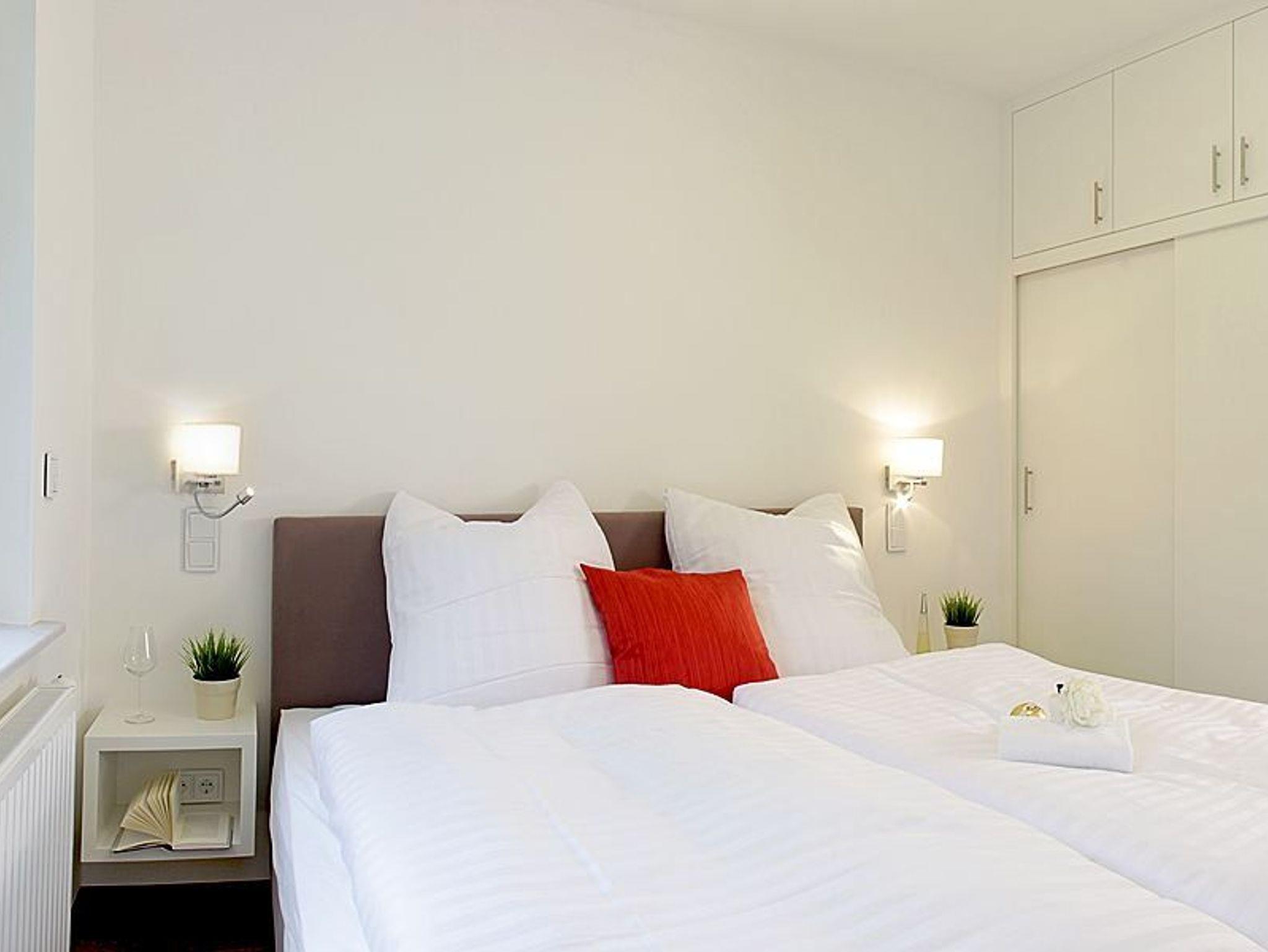 Das 3-Raum-Appartement befindet sich im Erdgeschoss, hat eine Größe von 66 Quadratmetern und ist für 4 Personen das ideale Urlaubsdomizil an der wunderschönen Ostseeküste. Das liebevoll eingerichtete Wohnzimmer überzeugt mit gemütlichem Ecksofa, Flachbild TV, DVD Player, Soundsystem sowie einer mit allen Extras ausgestatteten Einbauküche. Bodentiefe Fenster geben dem Wohnzimmer eine lichtdurchflutete Atmosphäre. Die vom Wohnzimmer angrenzende Nordost-Privatterrasse mit Loungeecke und Essbereich bietet ein harmonisches Urlaubserlebnis. Separat sind die beiden Schlafräume mit komfortablem Boxspringbett (160 x 200cm / 180 x 200cm / jeweils zwei getrennte Matratzen) und das Badezimmer mit ebenerdiger Echtglas-Dusche, XXL-Waschtisch, WC und einem Haarfön.