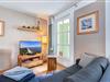 Diese im 1 Stock der Wohnanlage gelegene 2 Zimmer Wohnung hat eine absolut seltene Besonderheit. Durch die Architektur des Gebäudes verfügt das Wohnzimmer über eine Fensterfront mit einem kleinen Balkon in Nordrichtung (Ostsee) wie auch gleichzeitig über eine Fensterfront und einen großen Balkon in südlicher Ausrichtung (Sonnenseite).Die Einrichtung mit eleganten und hochwertigen Möbeln, einer komplett ausgestatteten Einbauküche lässt keine Urlaubswünsche an ein modernes Ferienappartement offen.