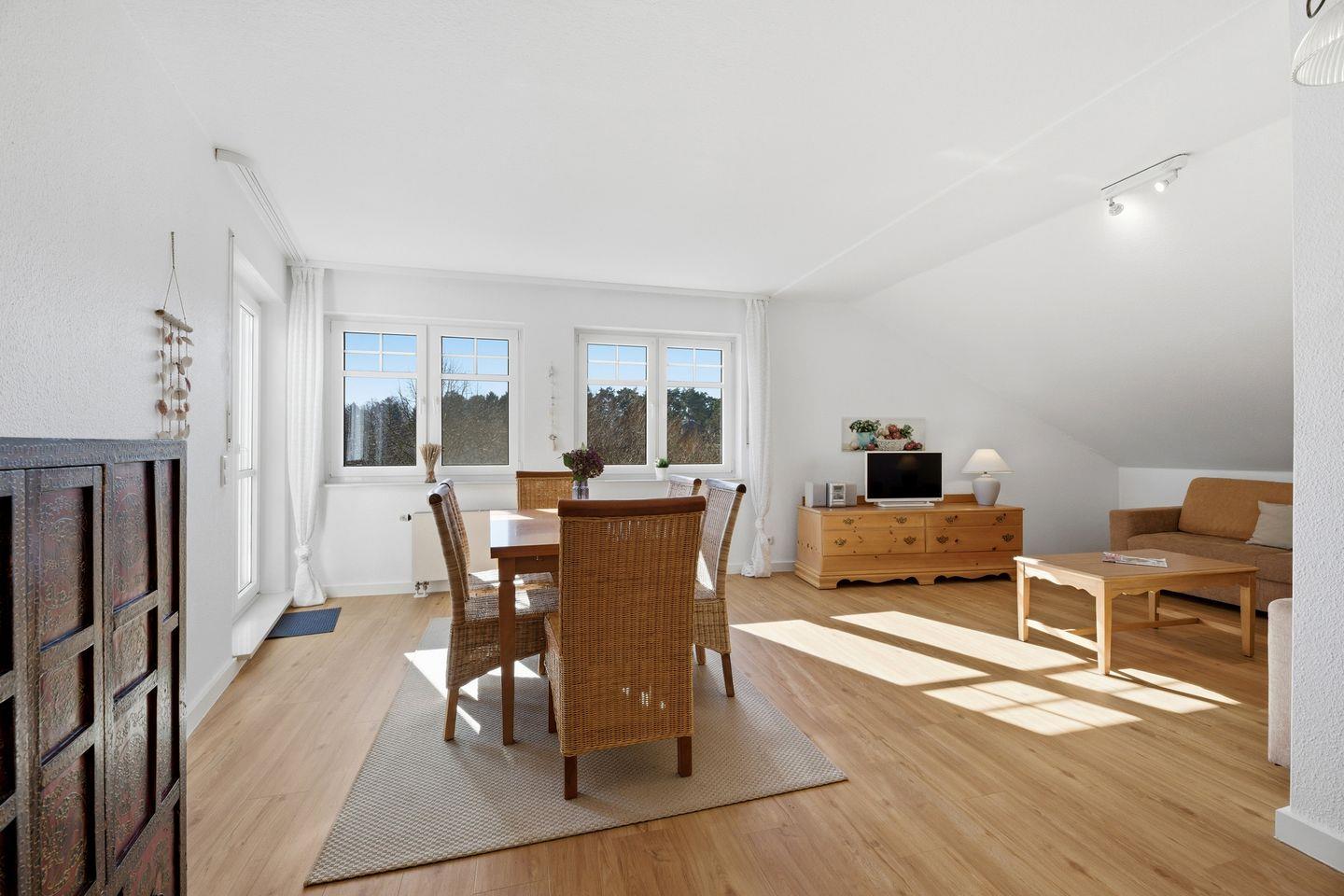 Entdecken Sie Wohnung 410, eine helle 3-Zimmer-Oase zwischen Ostseestrand und Schloonsee. Der Balkon, zugänglich von Wohnzimmer, lädt zum Verweilen ein. Auf der vierten Etage des Seeparks gelegen, bietet die Wohnung Platz für 4 Erwachsene und 2 Kindern. Die gut ausgestattete Küche ermöglicht bequeme Selbstverpflegung.