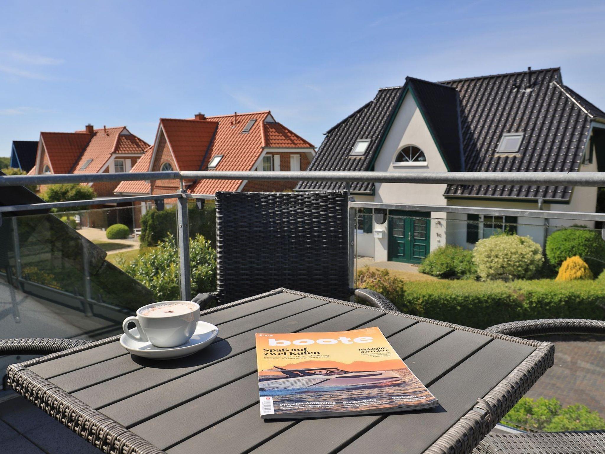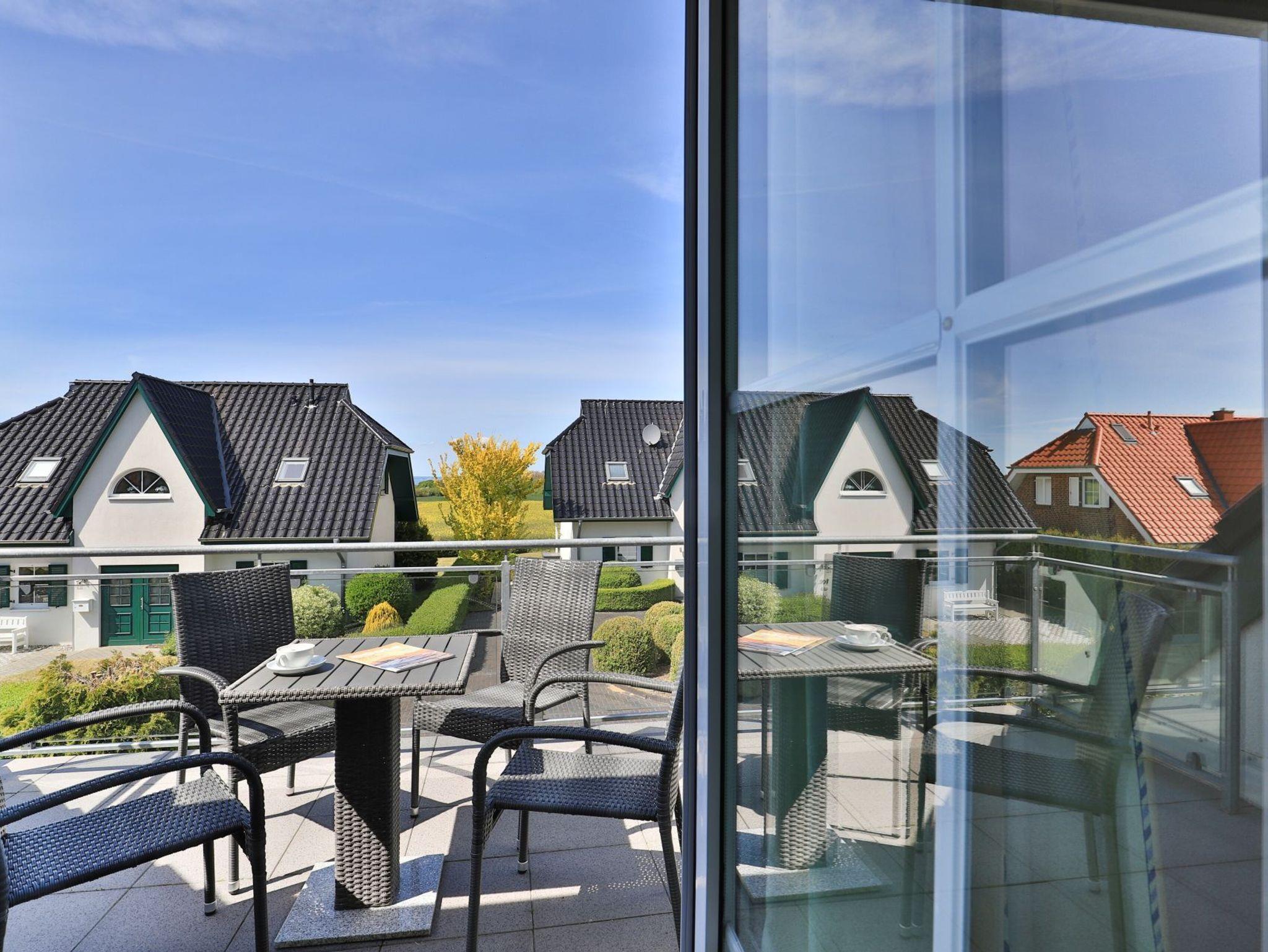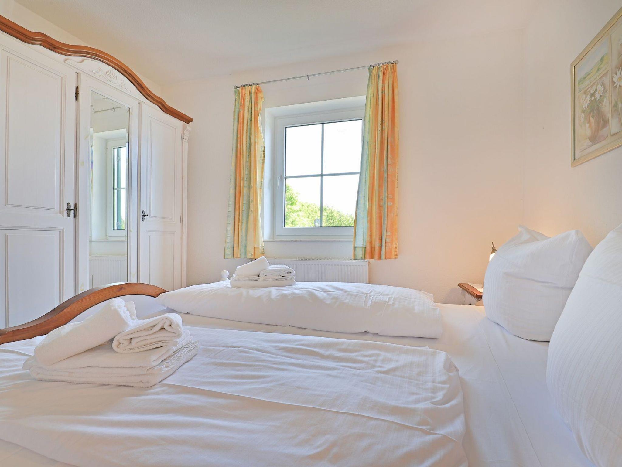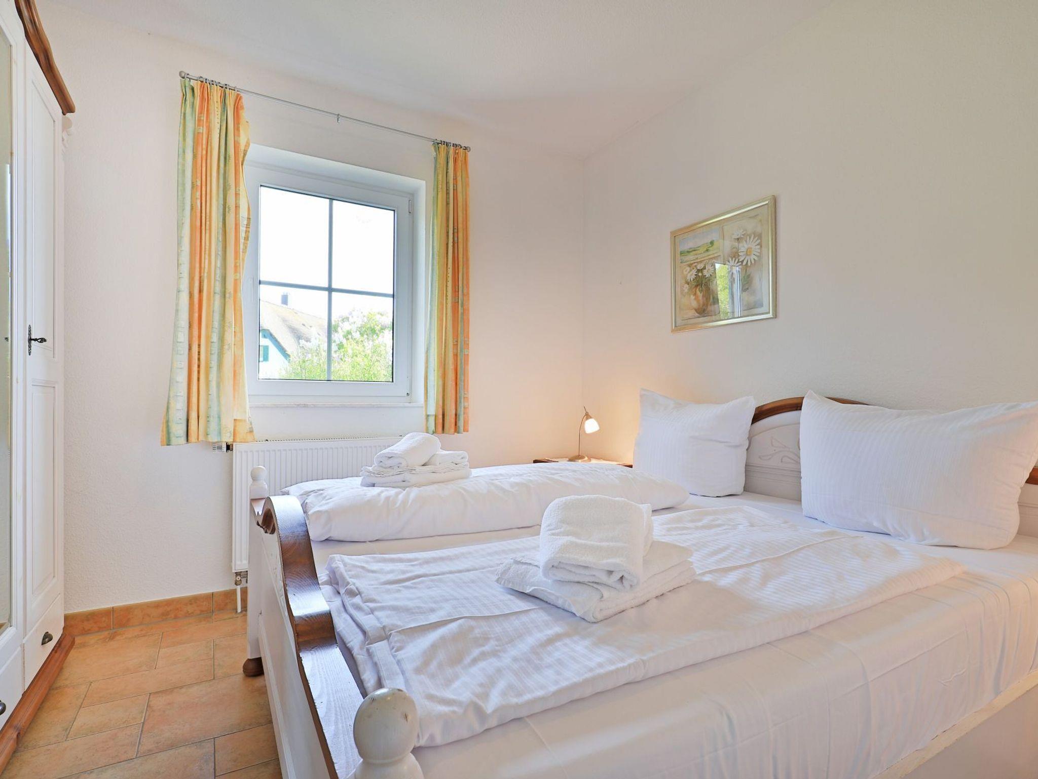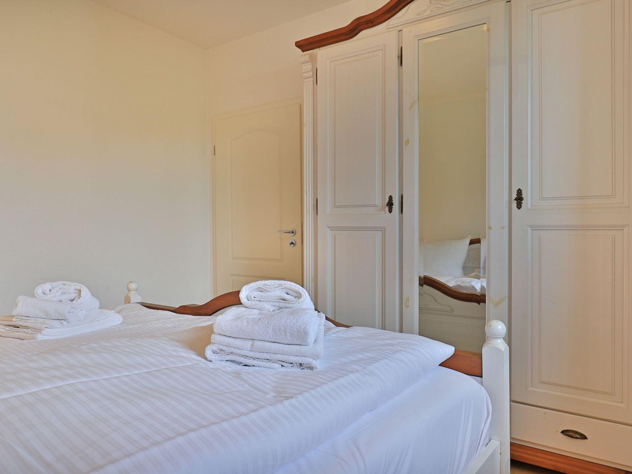 Schlafzimmer 2- mit Doppelbett, Kleiderschrank, Schlafsofa (70x150cm), Beistelltisch sowie Zugang zum Balkon mit Blickrichtung Ostsee.