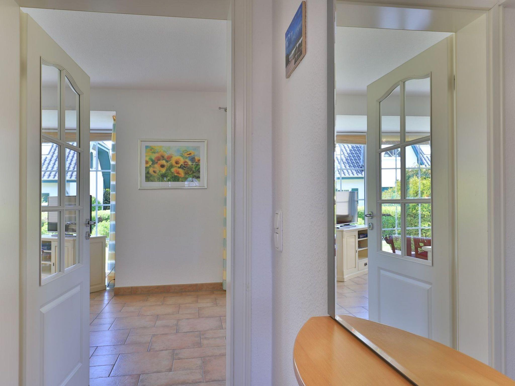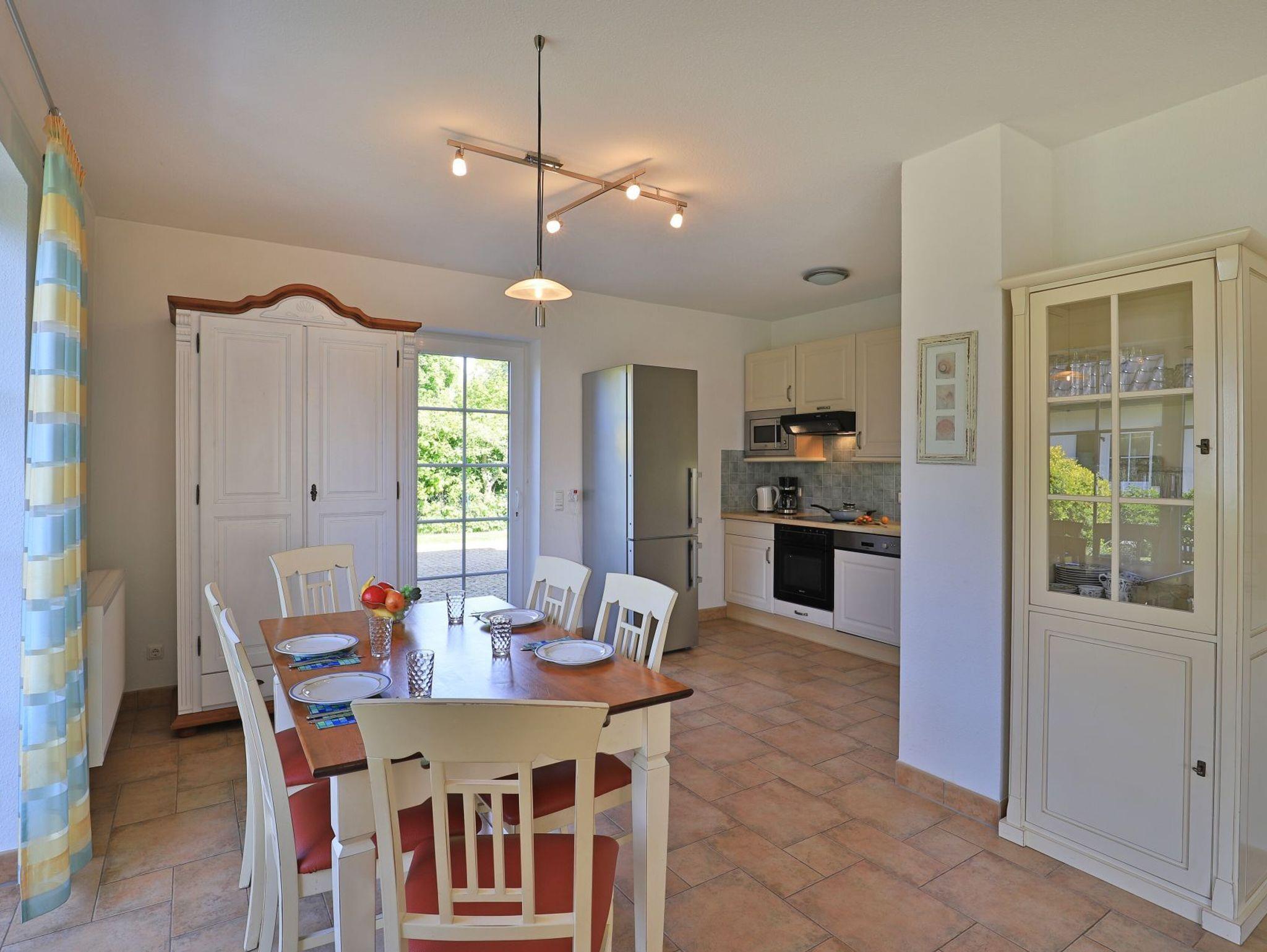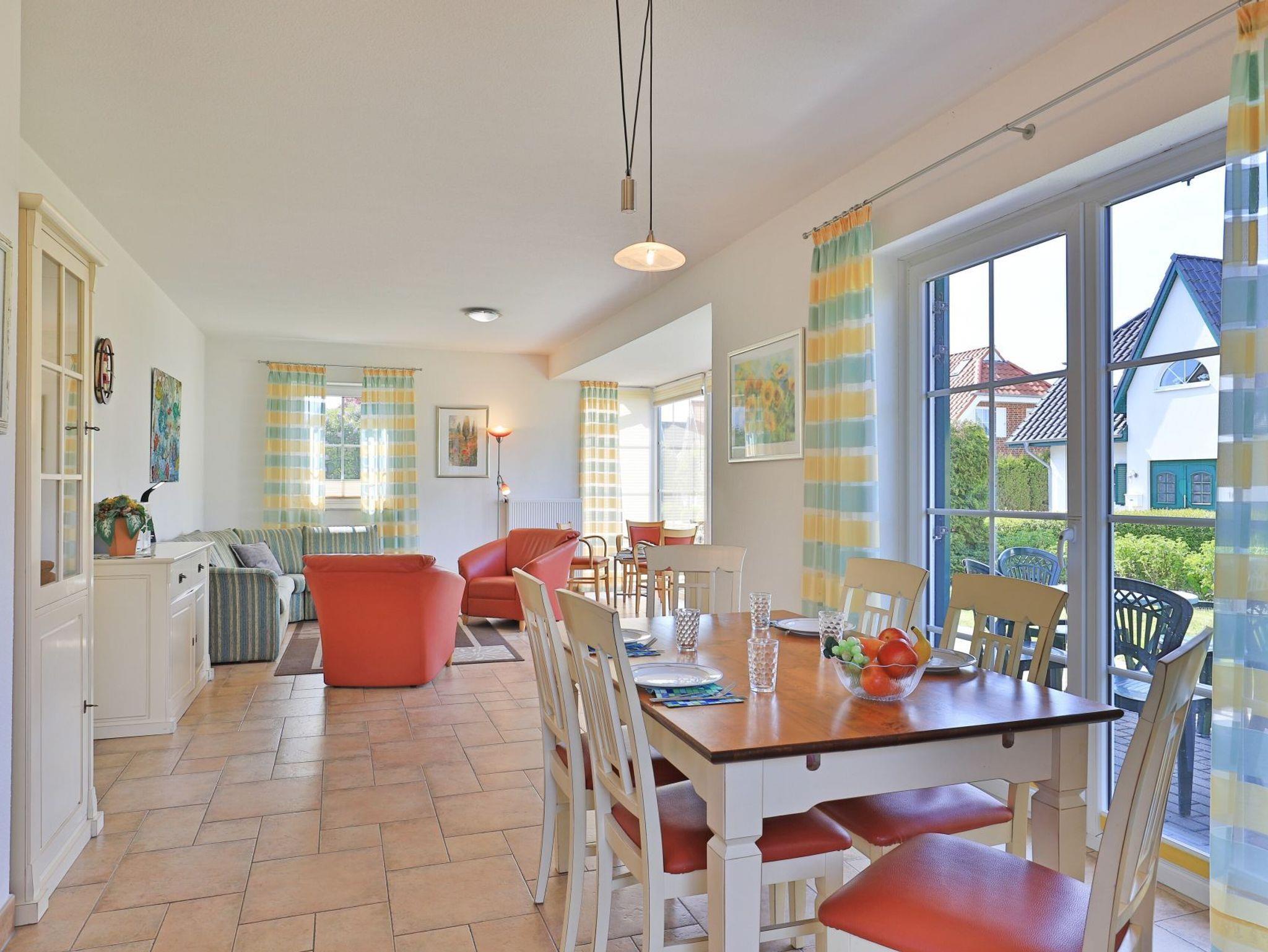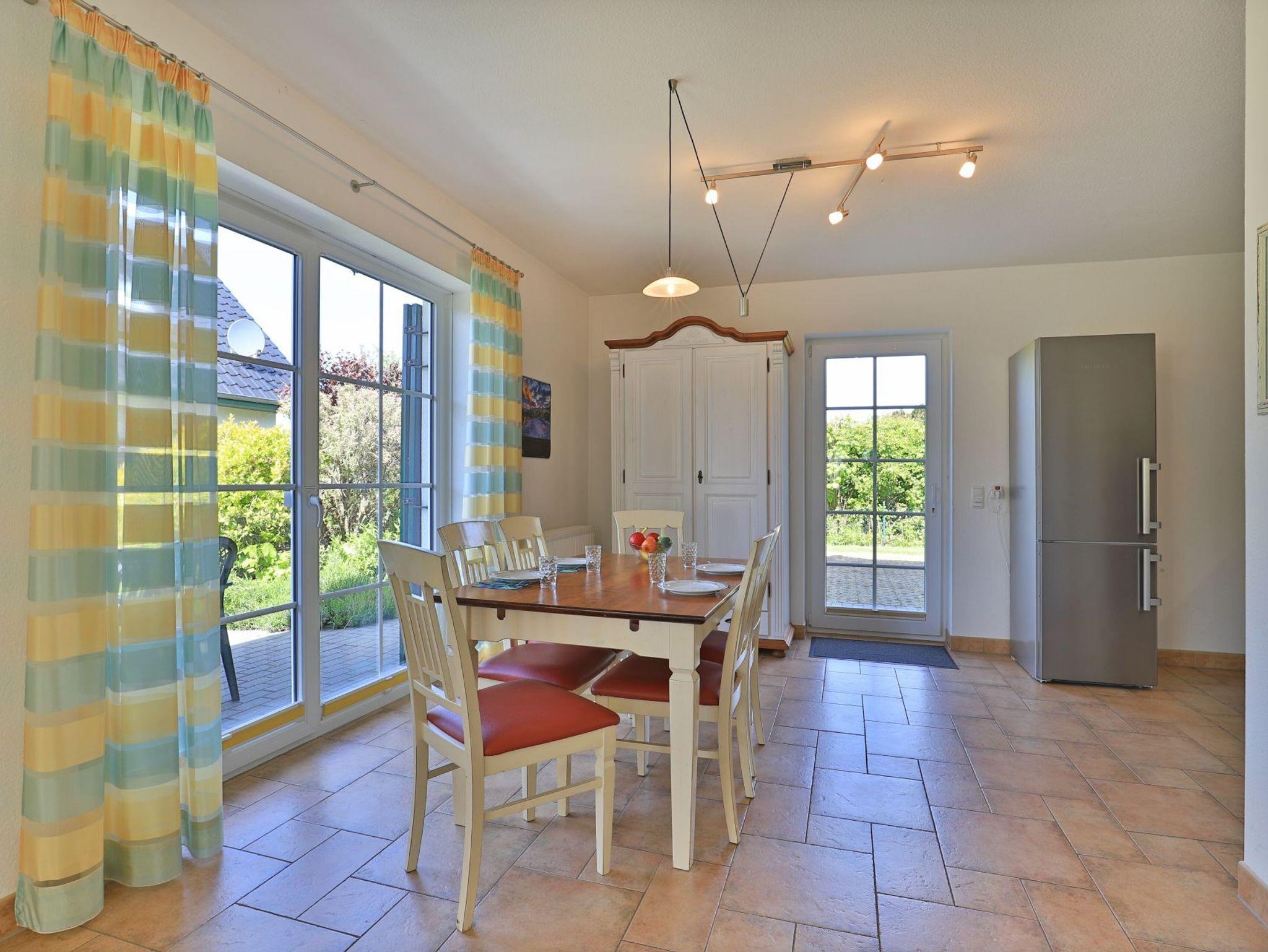 Das sehr komfortabel eingerichtete Einfamilienhaus unter Reetdach, erstreckt sich über zwei Etagen und bietet eine Wohnfläche von 135m². Eine Belegung ist mit bis zu 6 Personen möglich. Im Erdgeschoss, mit bodentiefen Fenstern, ist ein heller Wohn-/Essbereich mit einem Sofa und Sessel. Eine bestens ausgestattete Wohnküche ist integriert. Ceranherd, Backofen, Mikrowelle, Dunstabzug, Kühlkombi mit Gefrierschrank, Spülmaschine, Kaffeemaschine, Wasserkocher, Toaster usw. Die saisonal möblierte Terrasse mit Grillmöglichkeit und Garten betreten Sie ist vom Wohnbereich. Internet über WLAN, zwei Fernseher und eine Musikanlage sind vorhanden.