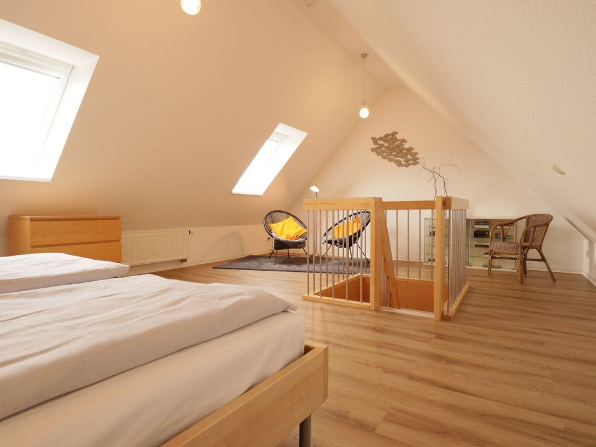 Wohnebene. Über eine Wendeltreppe erreichen Sie das zweite Schlafzimmer in welchem sich zwei Einzelbetten sowie zwei gemütliche Sitzsäcke befinden. Im Duschbad der Wohnung befindet sich auch eine Waschmaschine. Vom Balkon haben Sie einen