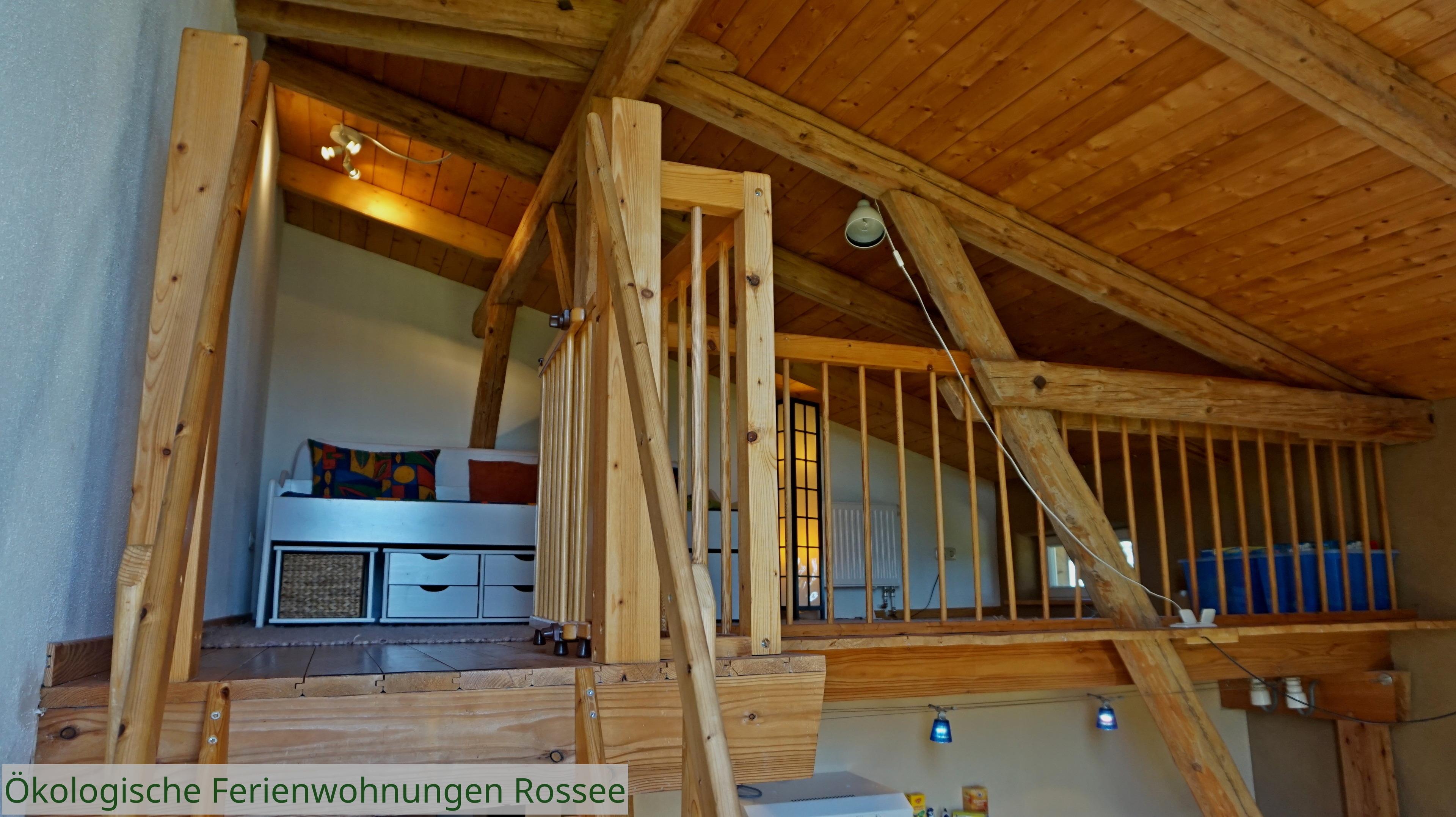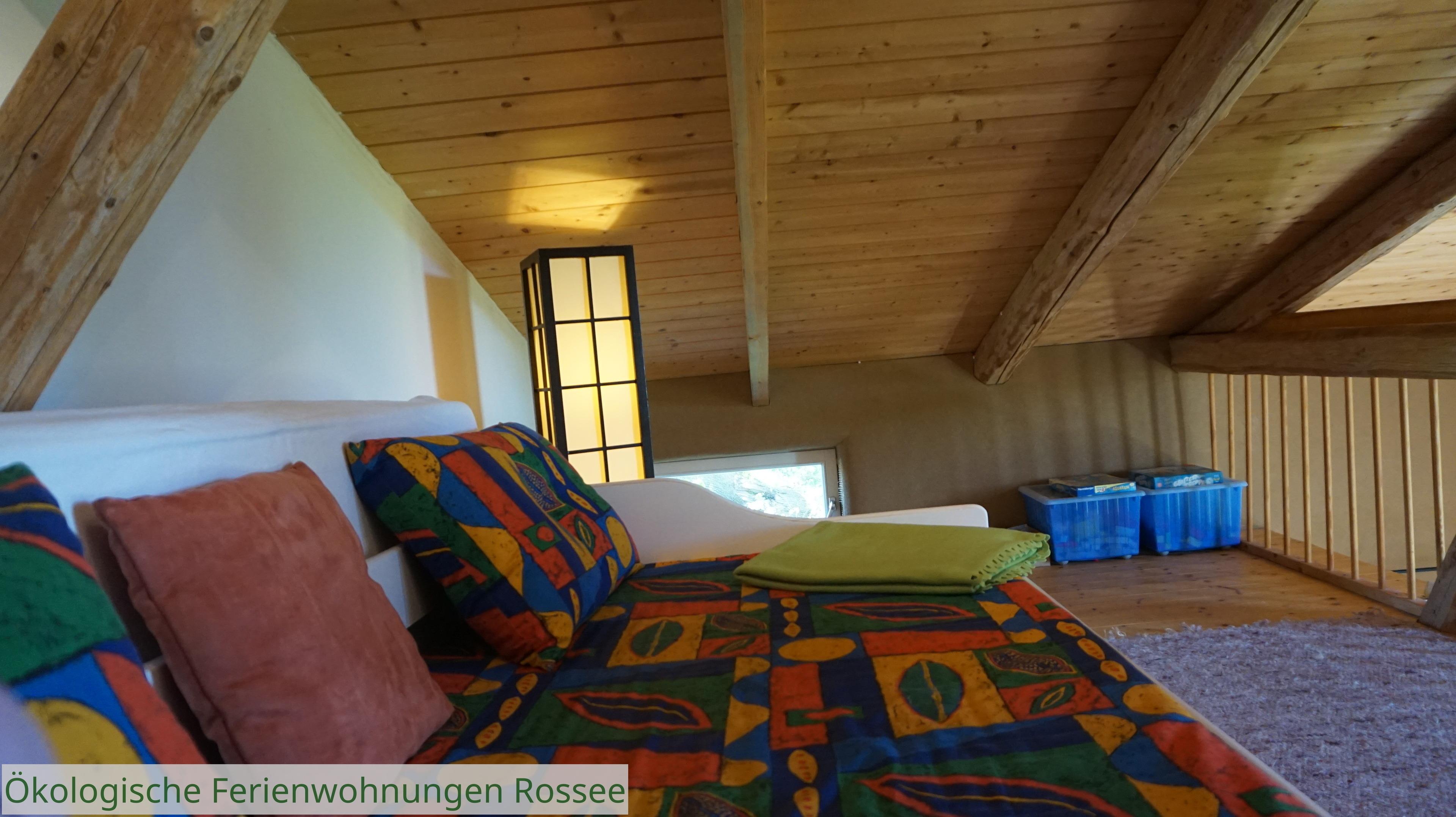 Die gemütliche, helle Ferienwohnung hat eine schöne Wohnküche mit Hems (offener Raum unter der Dachschräge - größtenteils keine Stehhöhe) und ein separates Schlafzimmer.