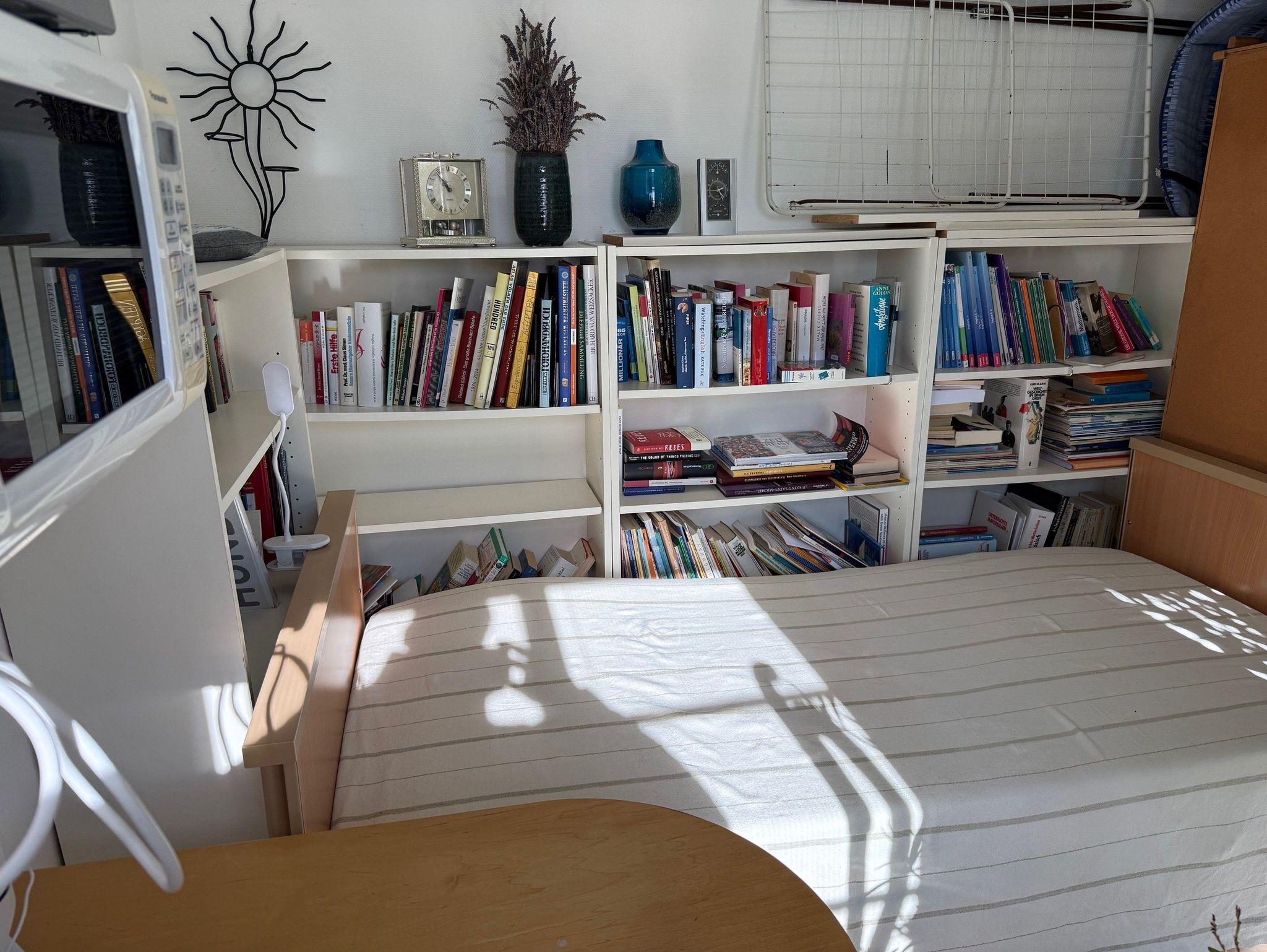 der Nähe des Dusch-/WC-Bereichs befindet sich ein Pflegebett (0,90 m x 2 m), das das durch eine
