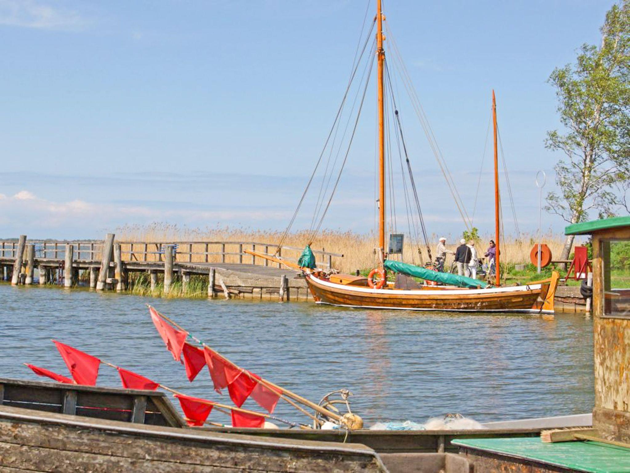 Der Yachthafen selbst bietet praktische Extras wie Waschmaschinen, Trockner, einen kleinen Yacht- und Angel-Shop sowie in den Sommermonaten einen Kiosk. Wer mit dem eigenen Boot anreist oder einen Tagesausflug übers Wasser plant, kann Boote mit bis zu einem Meter Tiefgang direkt am Hausboot anlegen. Und für dein Auto gibts einen eigenen Parkplatz direkt am Hafengelände selbstverständlich kostenlos.