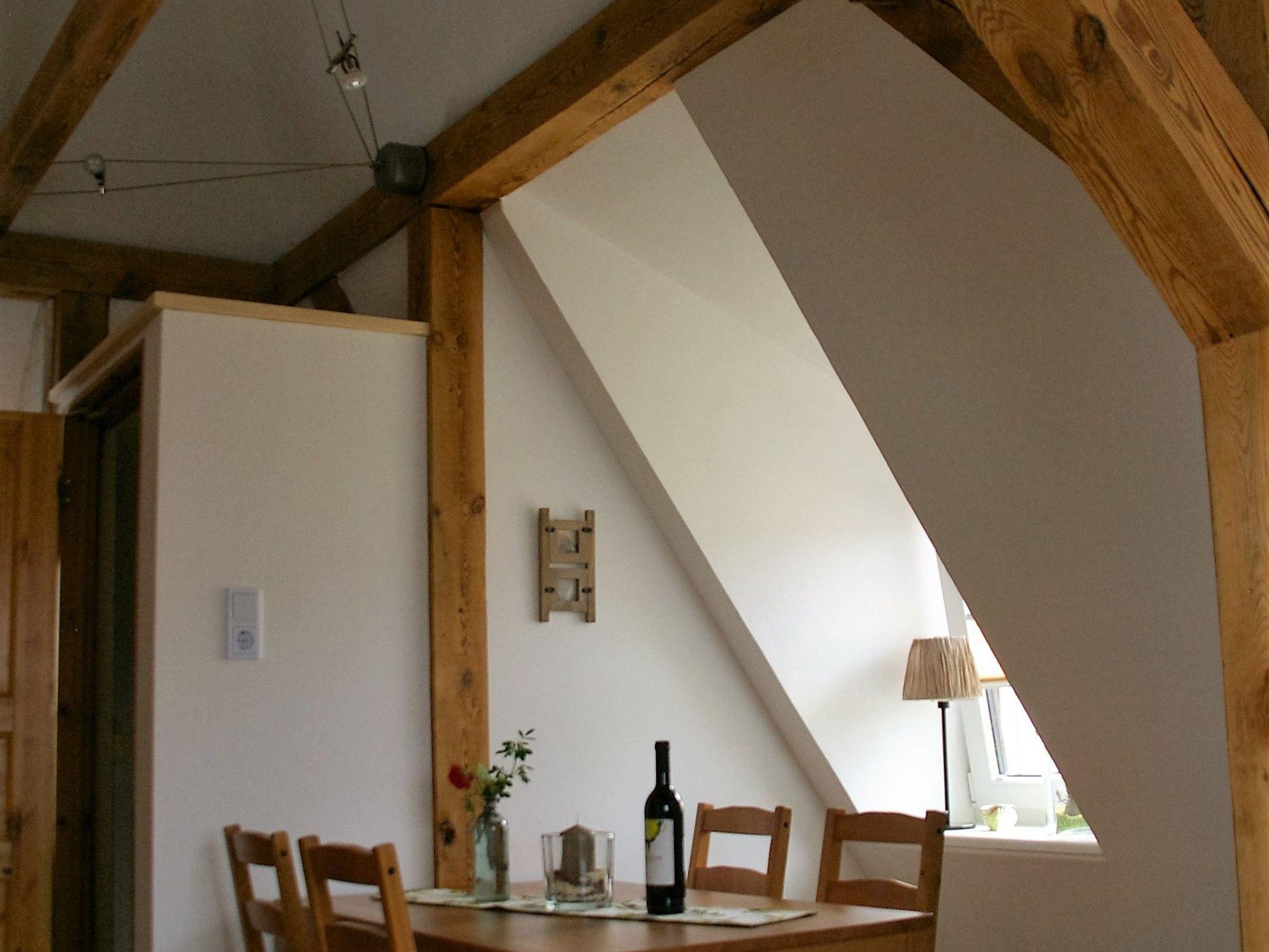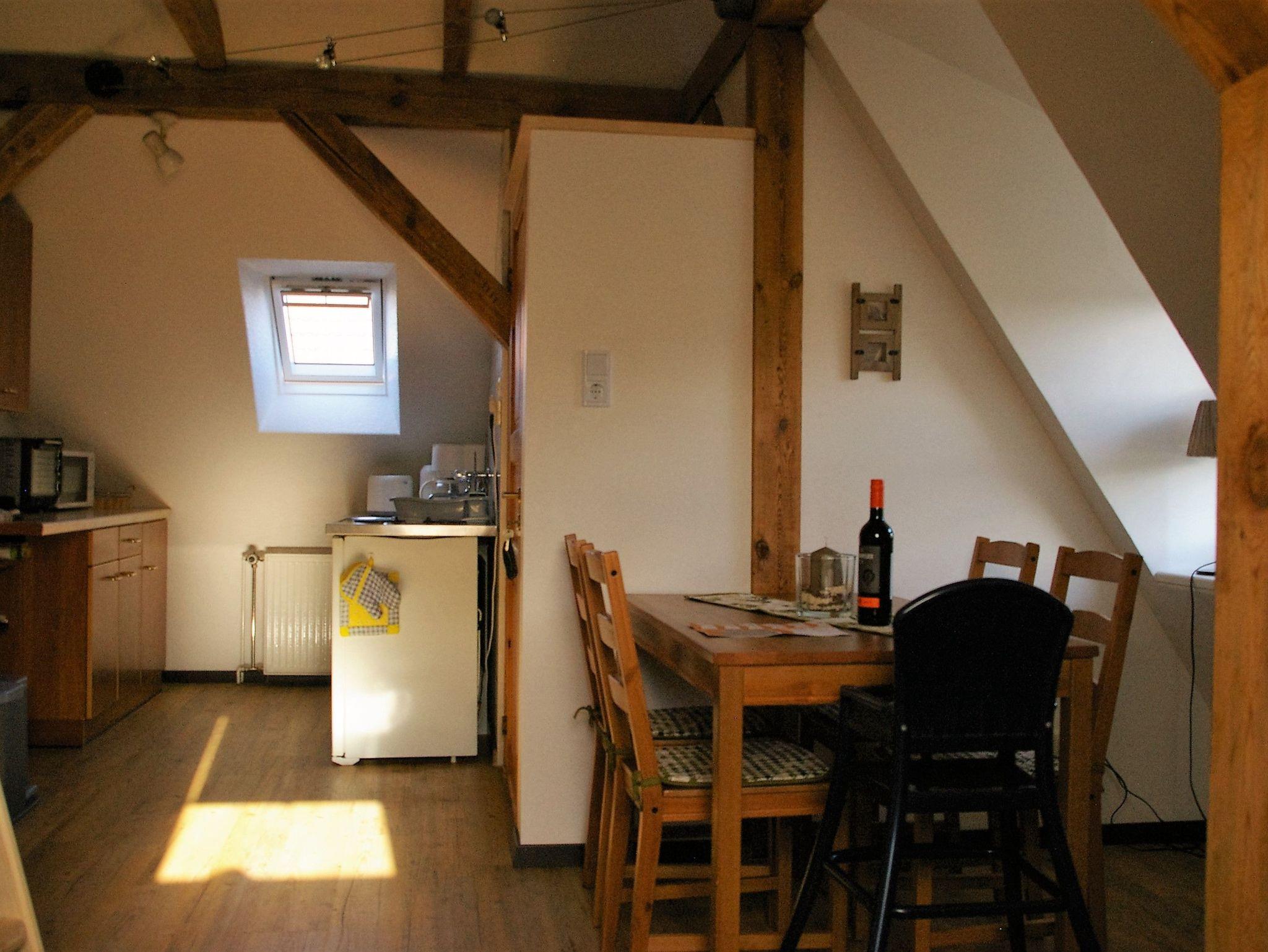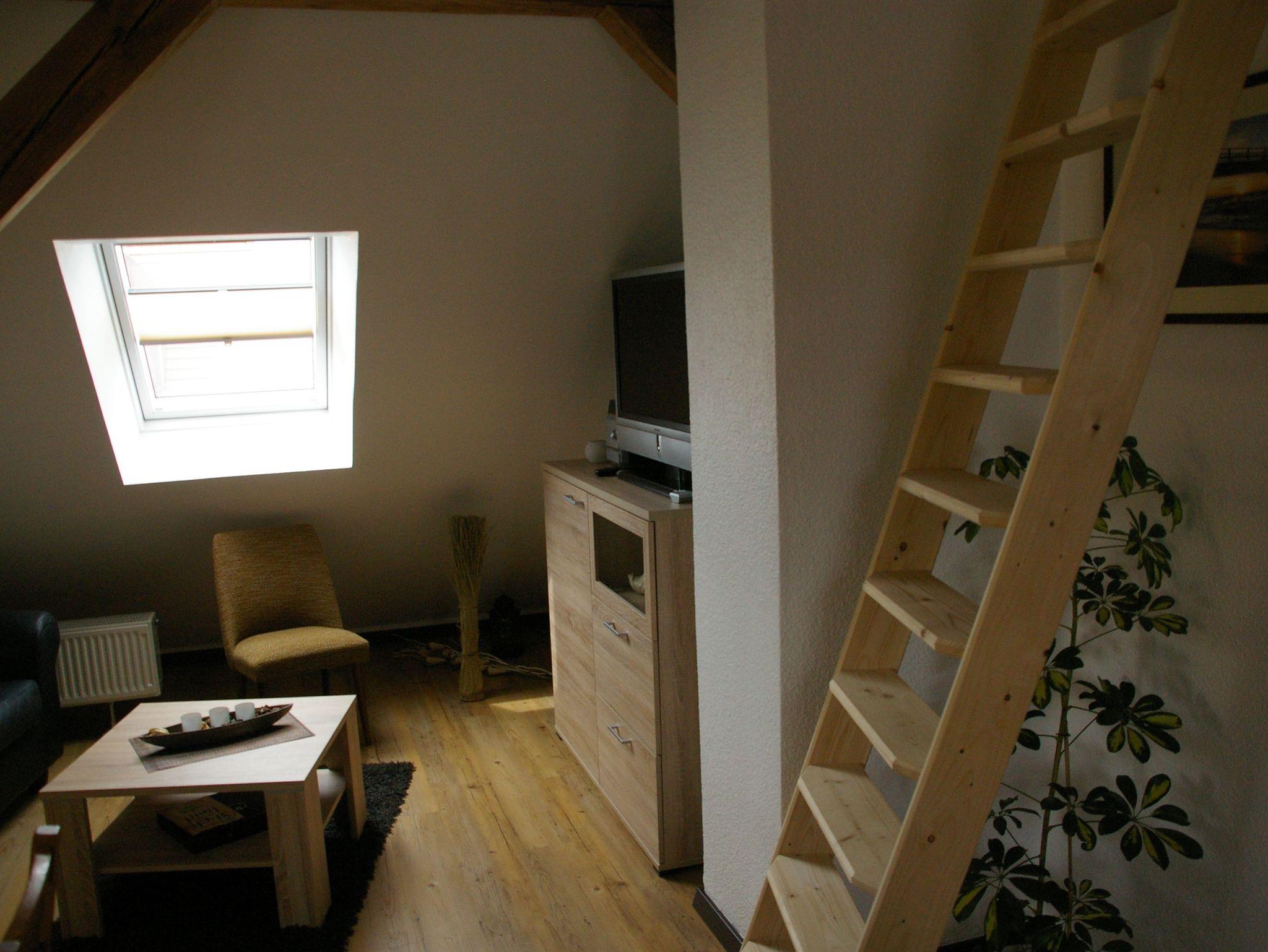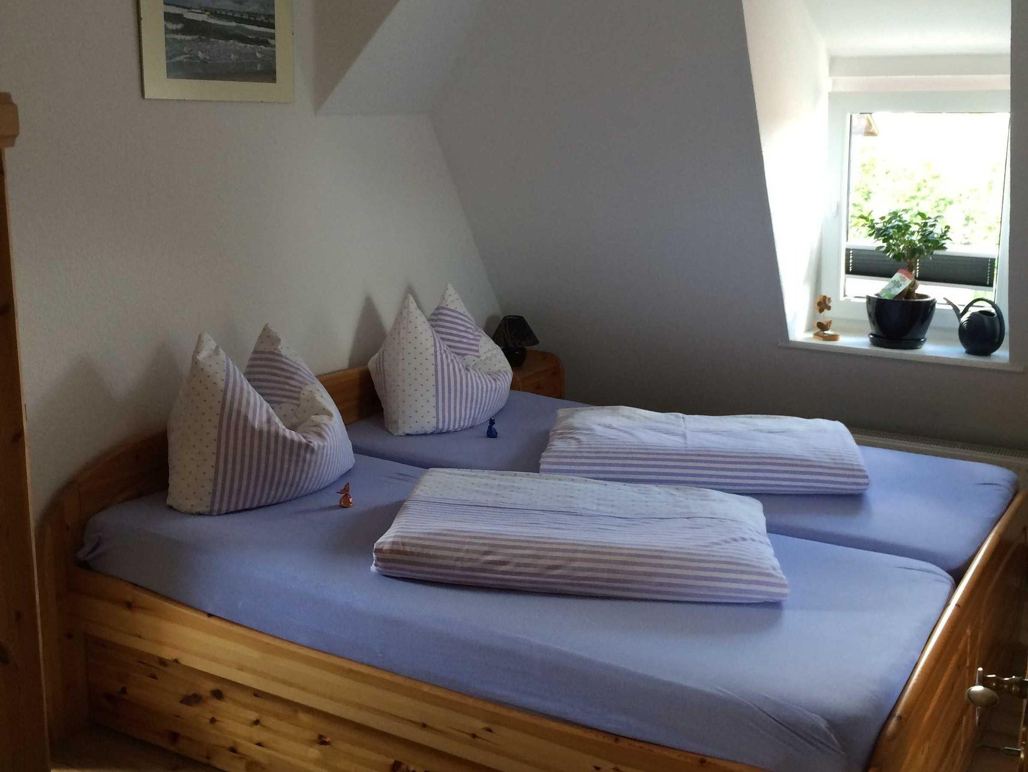 Die Ferienwohnung befindet sich im Dachgeschoß. Im Schlafzimmer befindet sich ein Doppelbett, im zweiten Schlafzimmer befindet sich ein Bett und eine Liege - die Wohnung kann für 3 Personen gebucht werden.