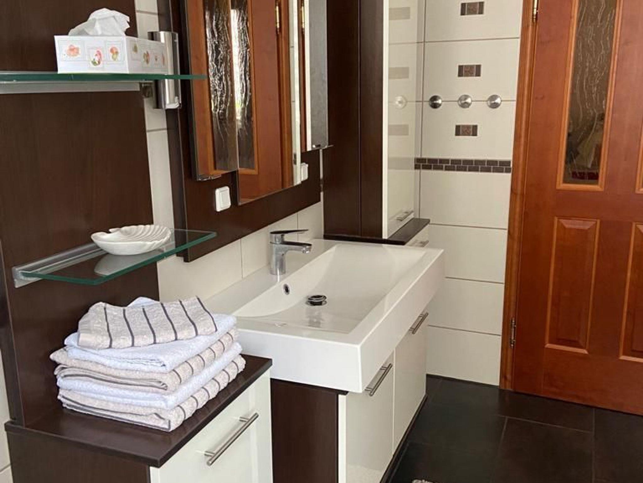 Aufbettung im Wohnzimmer mit Dauerschlafcouch (1,60 m ) möglich. Im Schlafraum ist ein Doppelbett 1,60 m vorhanden. Die Wohnung ist komplett mit Pakettfußboden ausgelegt. Kinderreisebett und Kinderhochstuhl auf Anfrage.