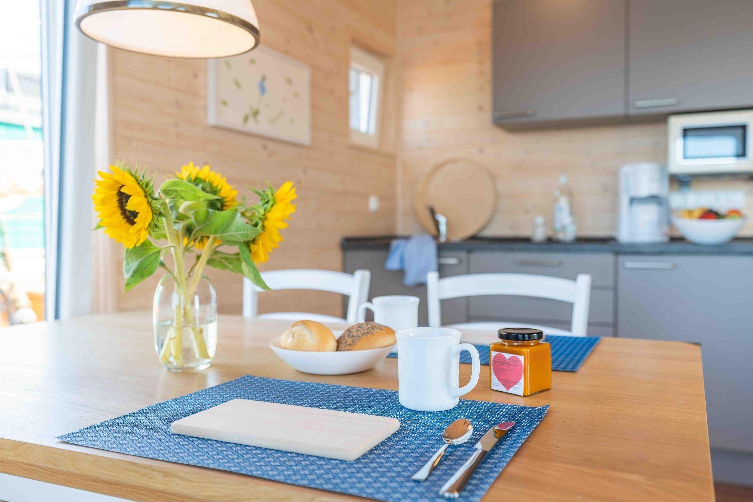 Die Ferienwohnung bietet eine einladende Atmosphäre mit durchdachter Ausstattung. Sie verfügt über zwei Schlafzimmer, in denen sich ein Doppelbett und zwei Einzelbetten befinden, ideal für Familien oder Gruppen. Die offene Küche ist modern eingerichtet und ausgestattet mit einem Elektro-/Gasherd, Mikrowelle, Kühlschrank, Kaffeemaschine, Toaster sowie Gefriermöglichkeiten. Ein Esstisch lädt zum gemeinsamen Essen ein. Das elegante Badezimmer mit Fenster und Duschbad sorgt für Komfort, während ein Gäste-WC zusätzlichen Platz bietet. Im Wohnbereich steht ein gemütliches Sofa zur Verfügung, ergänzt durch moderne Technik wie TV und HiFi-Anlage. Die Wohnung ist allergikergeeignet und verfügt über Internet mit WLAN, Rauchmelder und Feuerlöscher. Fliegengitter sorgen für ungestörte Ruhe. Die zentrale Heizung garantiert wohlige Wärme an kühleren Tagen. Geschirr, Besteck und Geschirrtücher sind ebenfalls vorhanden, damit sich die Gäste wie zu Hause fühlen können.