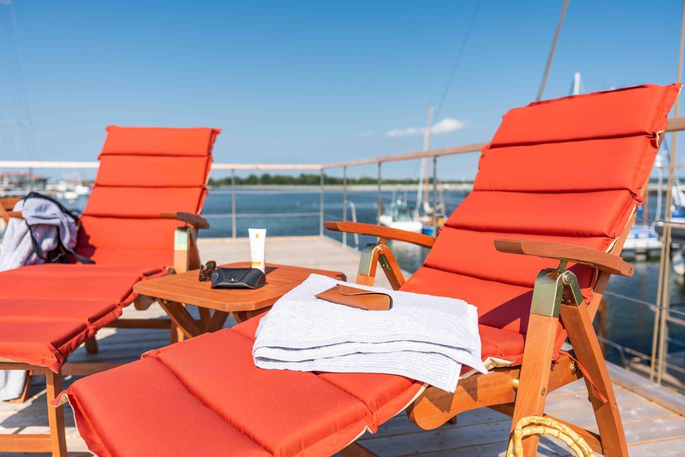 Gemütliche Ferienwohnung in Barth mit Terrasse und Strandkorb, ideal für Erholung und Naturgenuss.