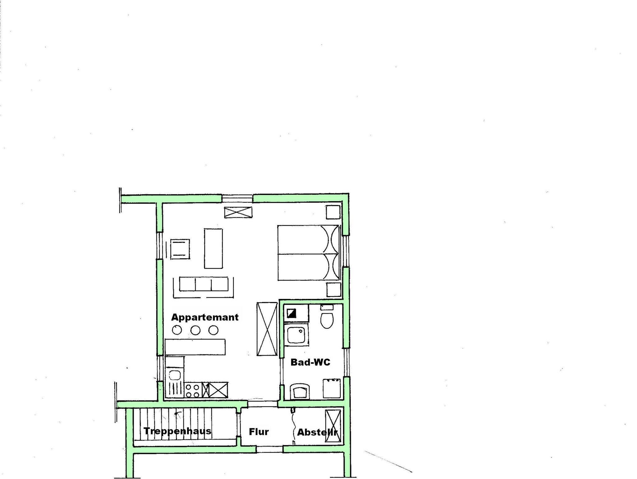 die großzügige Erdgeschoss-Wohnung ist komplett eingerichtet. In der Küche finden Sie alles, was Sie zum Kochen benötigen: Kühlschrank, Gefrierschrank, Spülmaschine, Koch- und Speisegeschirr, Kaffeemaschine, Mikrowelle, Waserkocher und ein Toaster. Ein Fernsehrer und kostenloses WLAN sind ebenfalls vorhanden.