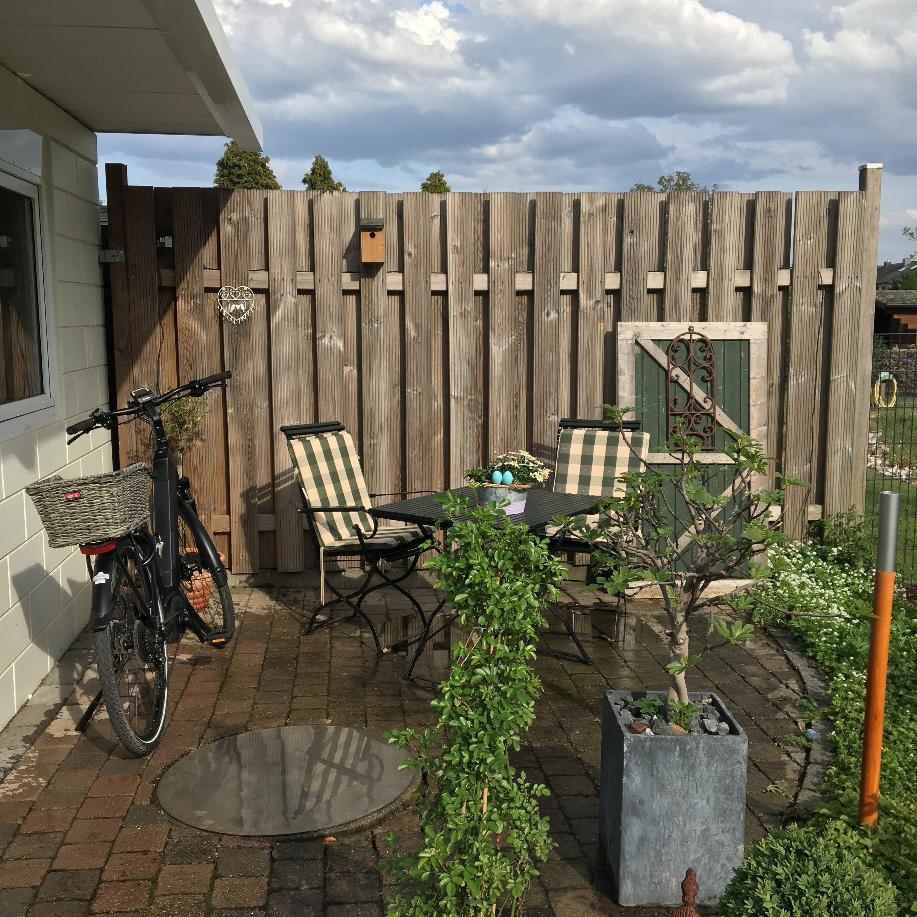 Im großen hauseigenen Garten steht ein kleiner Bereich zur Nutzung für Gäste der Ferienwohnung zur Verfügung. Gartenstühle, Tisch, Sonnenschirm und bei Bedarf ein Gasgrill sind vorhanden.