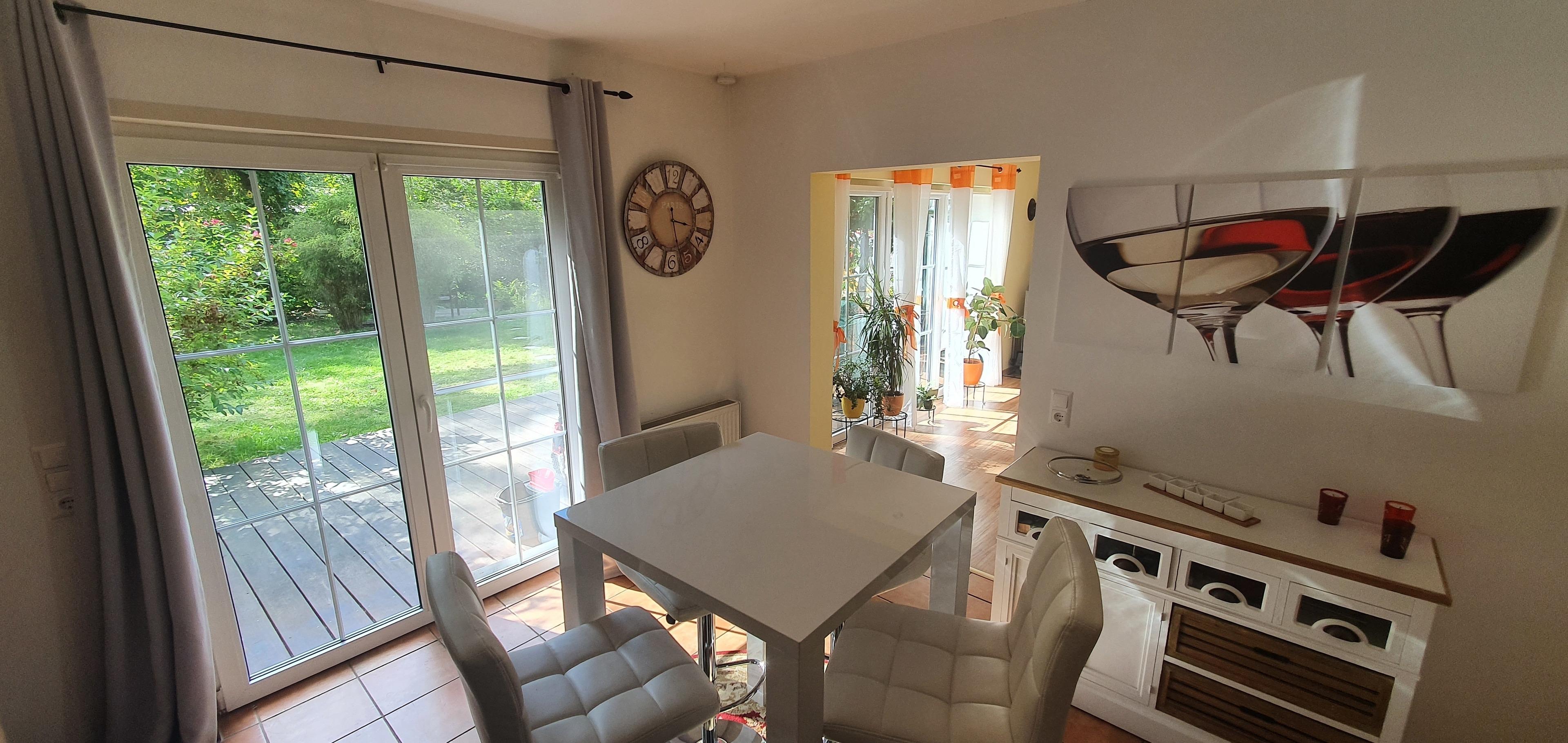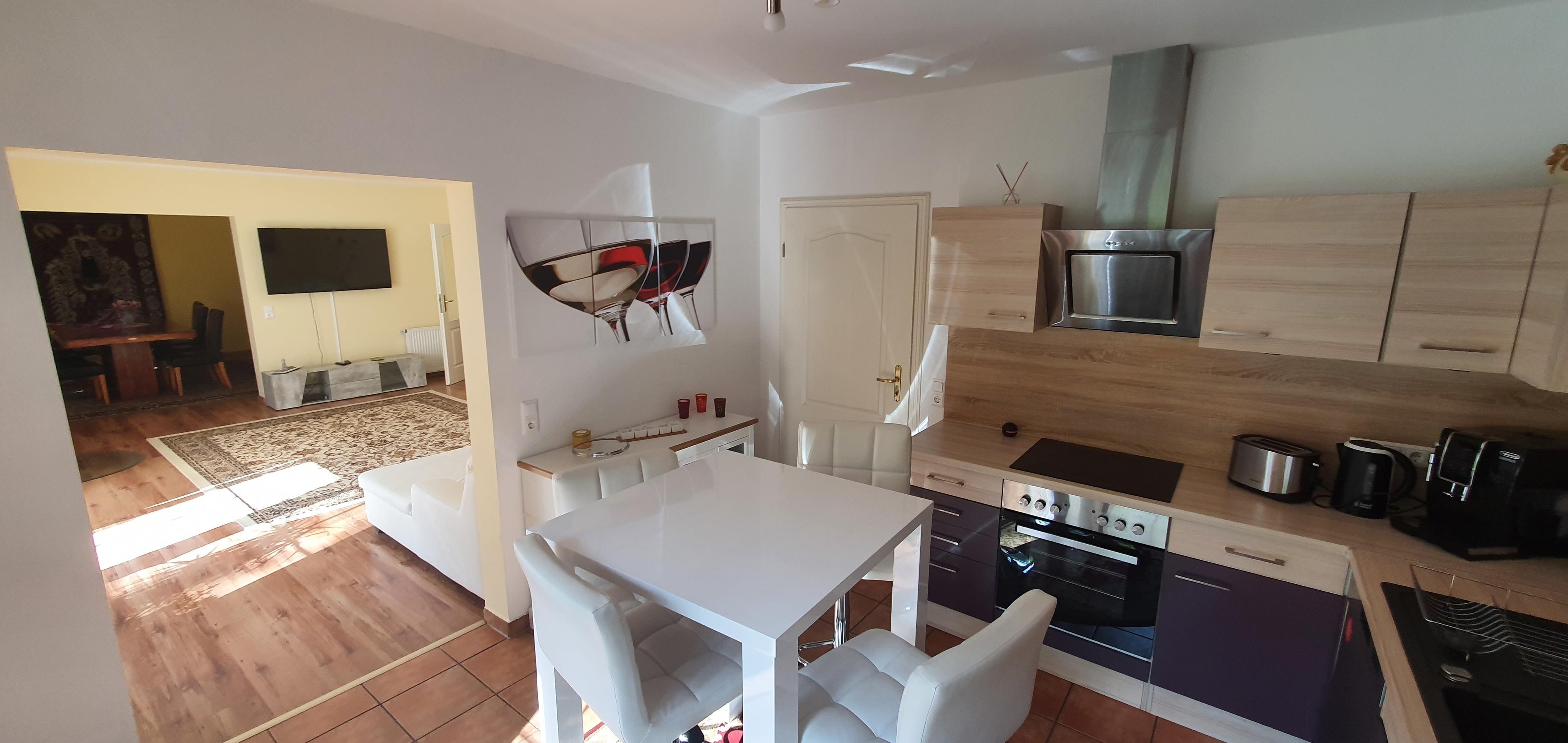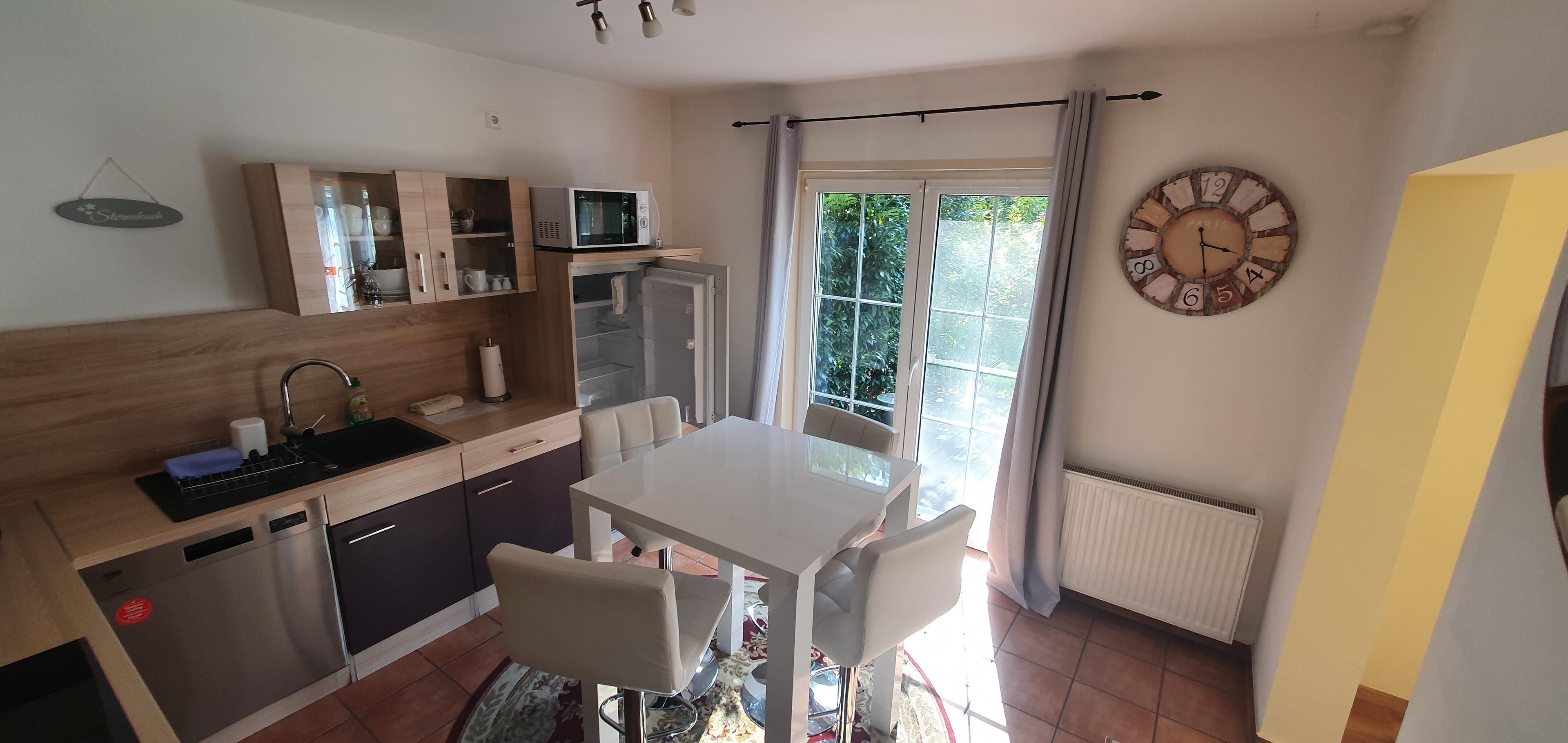 WLAN für unsere IT-Gäste inklusive (50MBit), jedes Schlafzimmer als auch Wohnzimmer mit großem Flachbildschirm (Satelliten-Fernsehen), großer Eßbereich für 6 Personen, Küche mit Barhockern und Eßplatz zusätzlich, 2 Bäder, zusätzlich WC im Obergeschoß.
