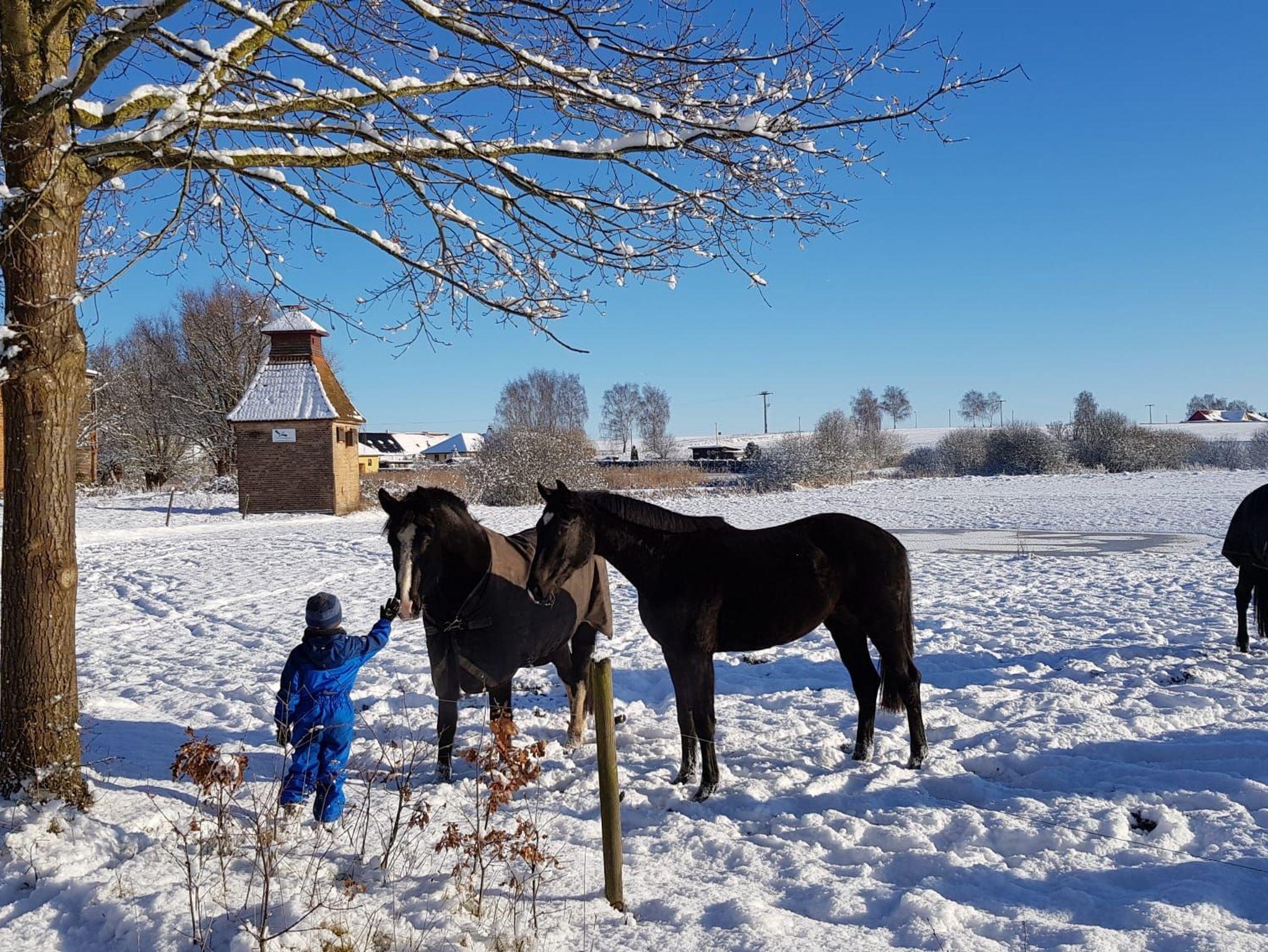 Gemütliche Ferienwohnung am See mit Schlossblick, ideal für Familien und Pferdeliebhaber in ruhiger Natur.