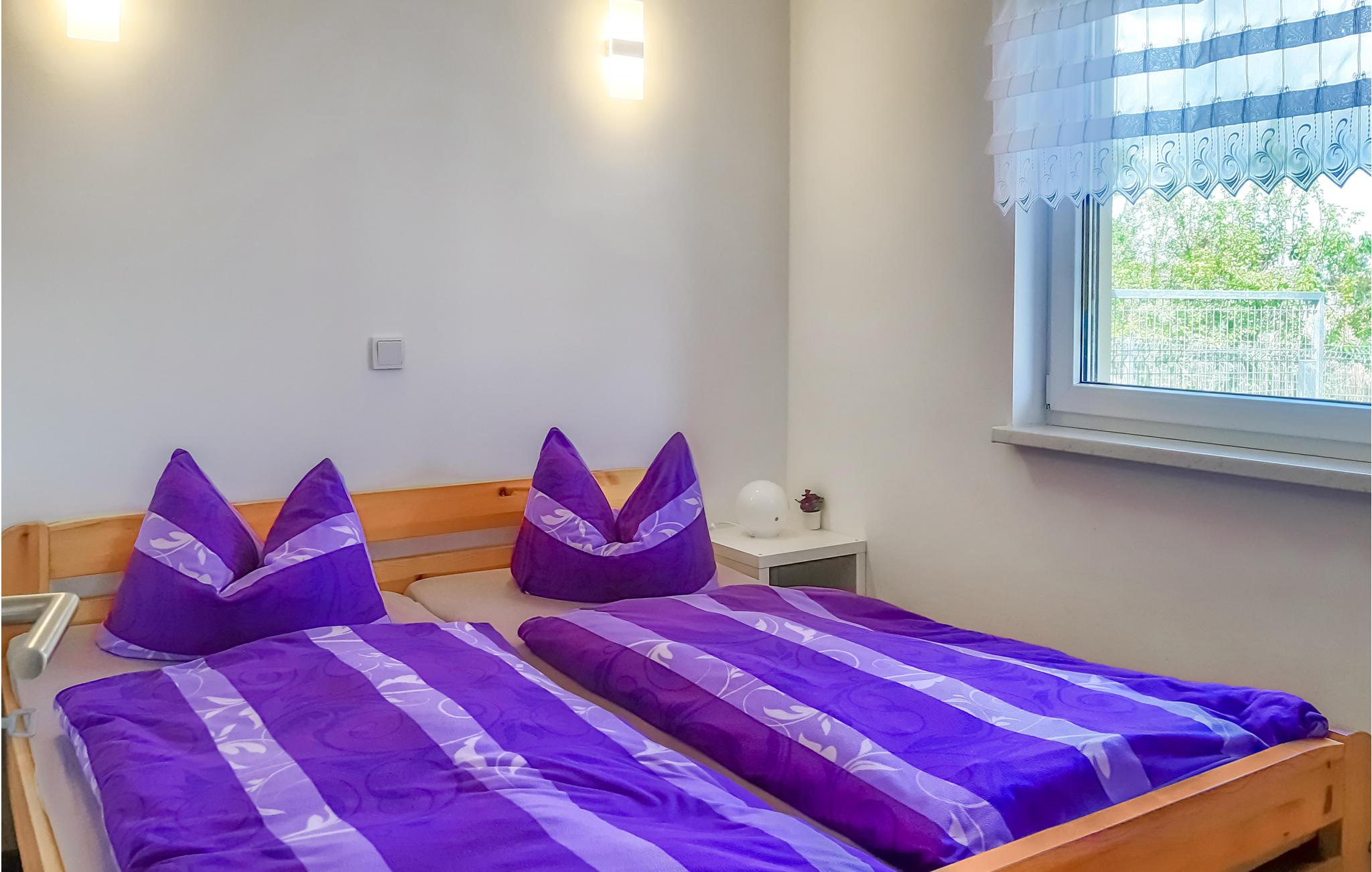 Es gibt zwei separate Schlafzimmer mit einem Doppelbett bzw. zwei Einzelbetten. Waschmaschine und Geschirrspüler sind für Ihren Komfort im Urlaub vorhanden.