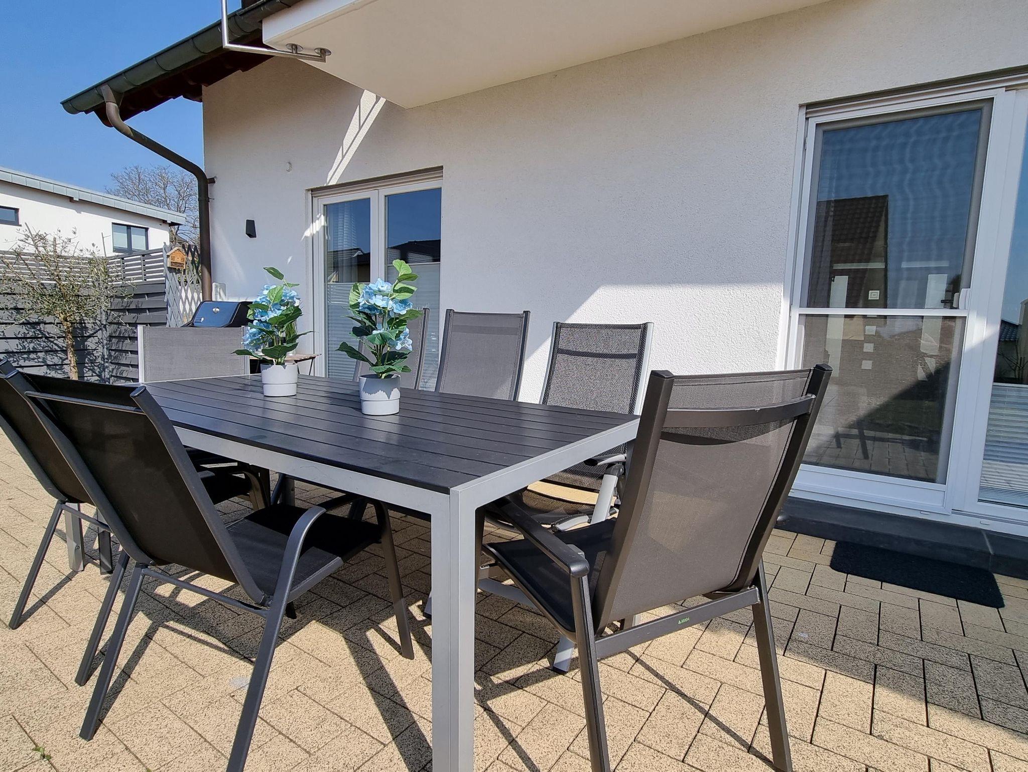 5 Schlafzimmer (2 DZ mit Kingsize Bett, 1 DZ mit Kingsize Bett plus Ausziehcoach und 2 EZ), eine große Küche, 3 Bäder mit Dusche/Badewanne sowie ein sehr großer Ess- und Wohnzimmerbereich. In den Wintermonaten können unsere Gäste gemütliche Abende am Kamin verbringen. Im Sommer lädt der große Garten dazu ein, gemütliche Stunden bei Barbecue und dem Sonnenuntergang zu genießen. Ein Gasgrill steht den Gästen kostenlos zur Verfügung. Sitzmöglichkeiten gibt es auf der großen Terrasse.