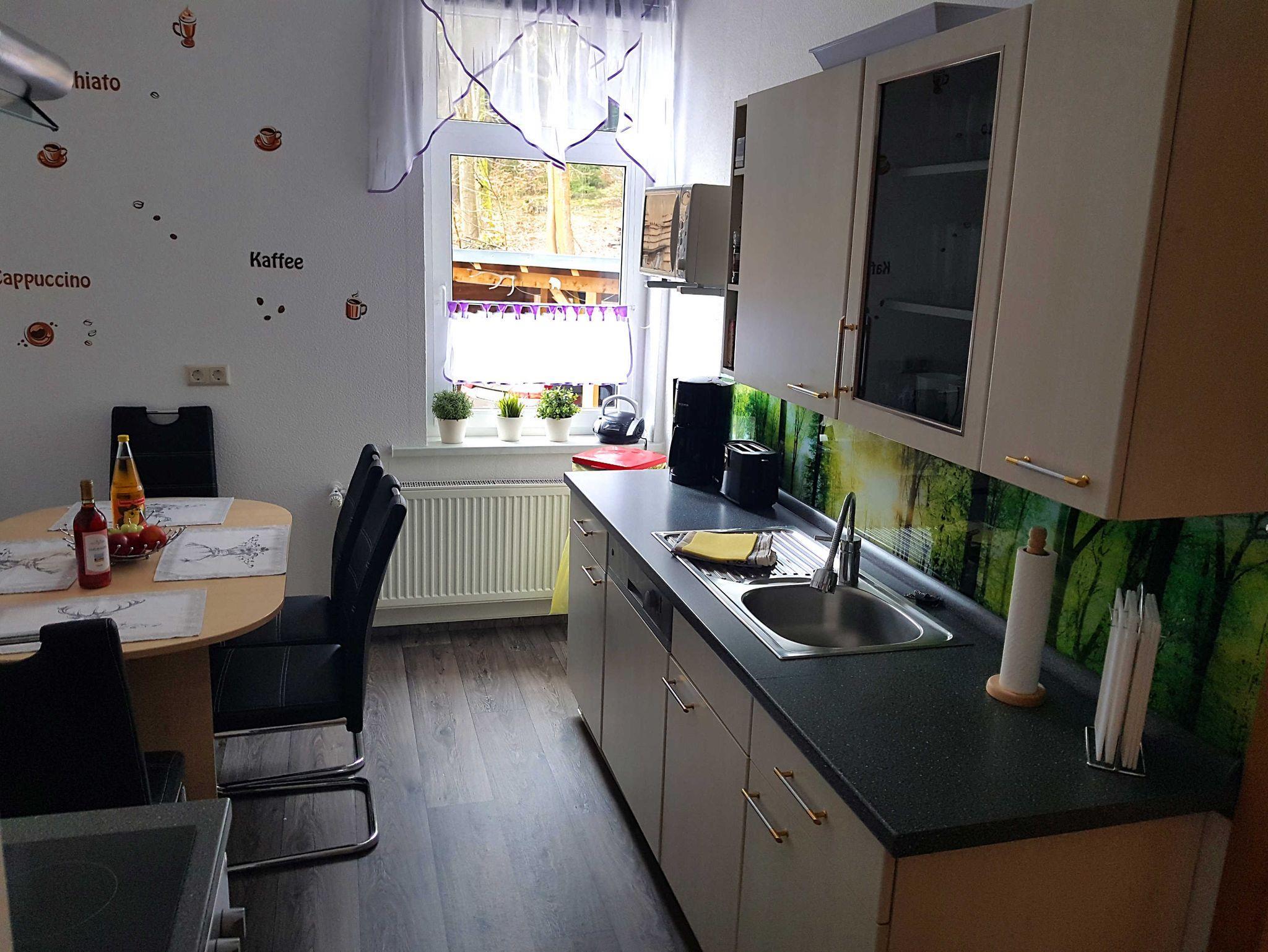 Die hell und voll ausgestattete Küche mit Backofen und Ceranfeld, Spülmaschine, Kaffeemaschine, Mikrowelle und Radio bietet Ihnen einen optimalen Start zu Ihren Touren.