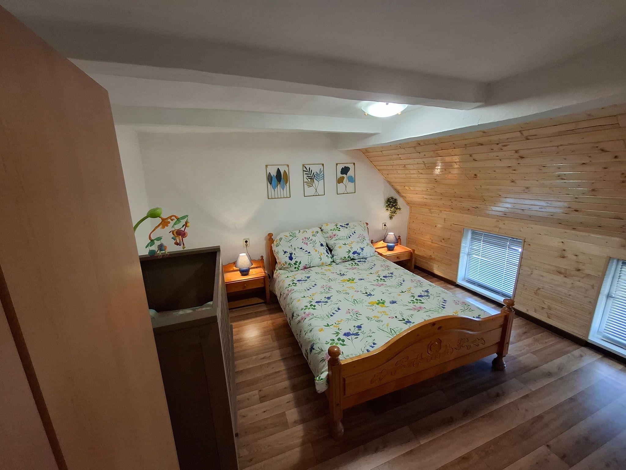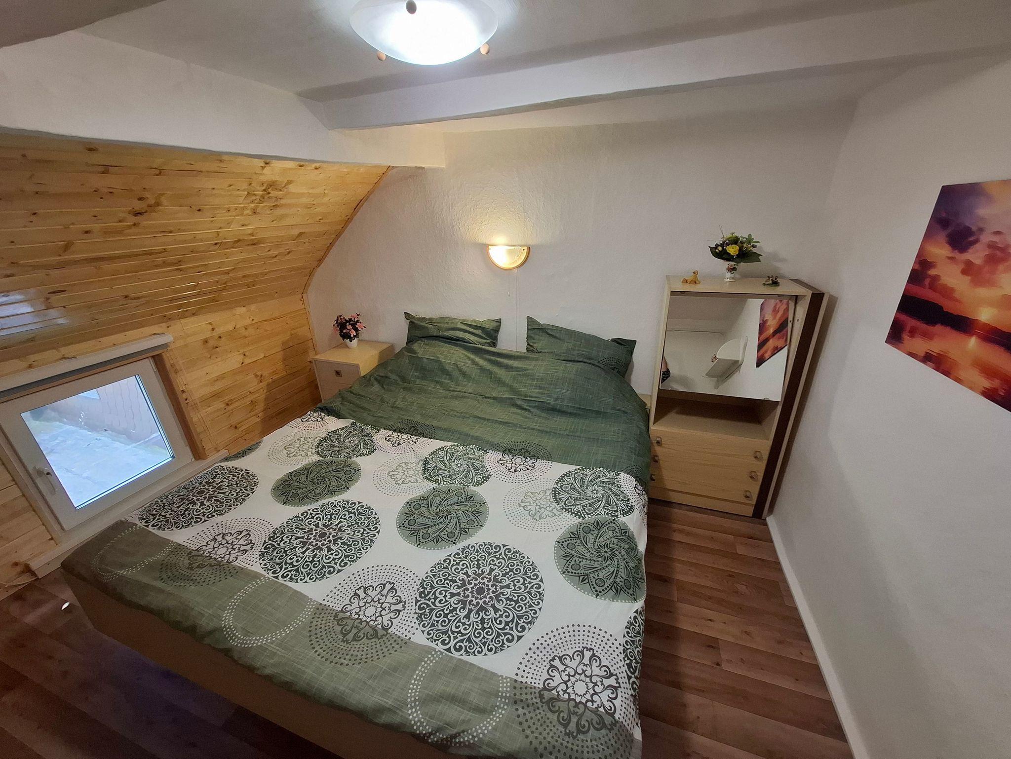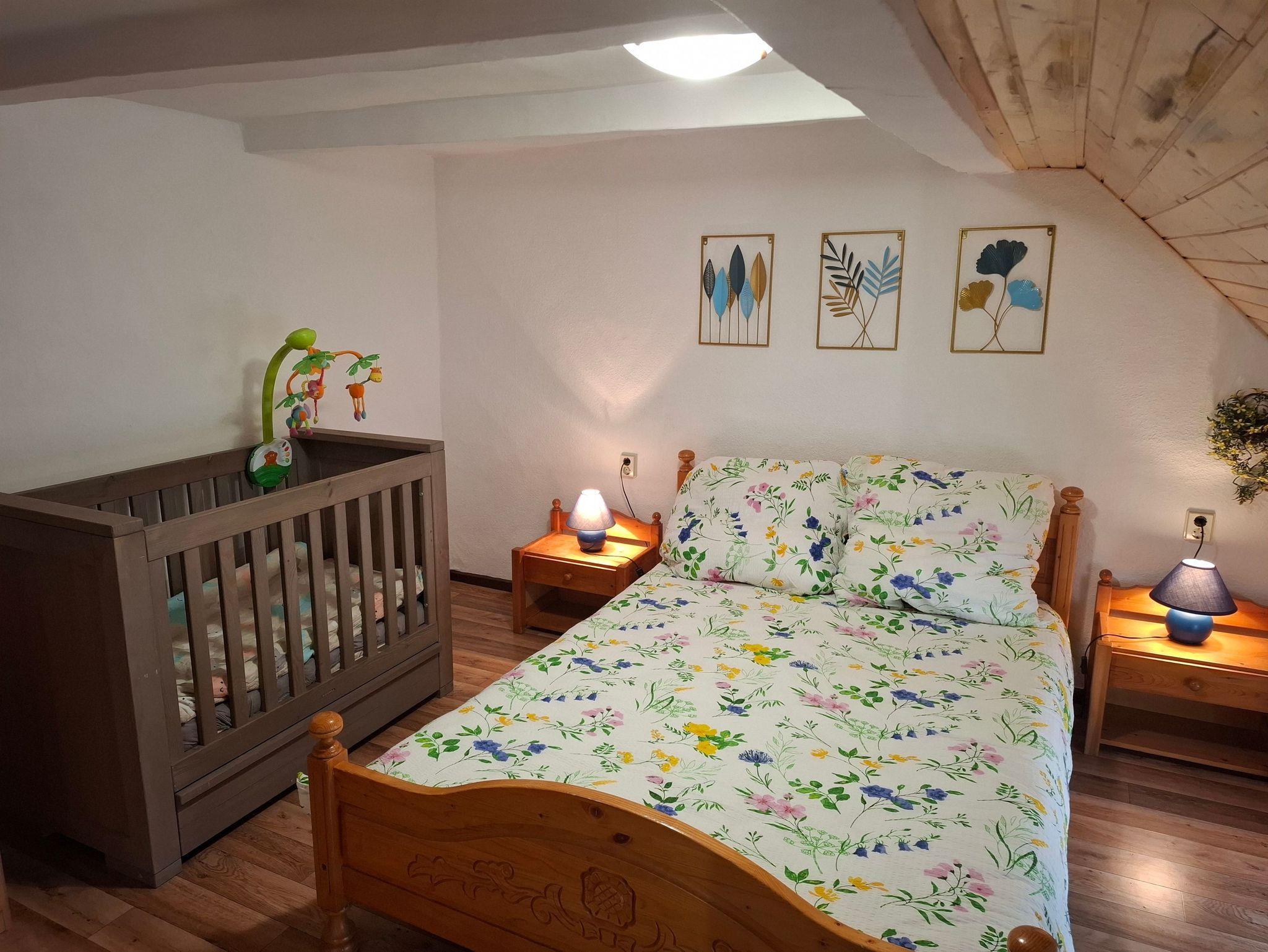 Das erste Schlafzimmer ist gemütlich mit einem Doppelbett eingerichtet. Es ist über das Durchgangsschlafzimmer erreichbar, das ein Einzelbett und einen großen Kleiderschrank bietet. Zwischen diesen beiden Zimmern gibt es zwei kleine Stufen. Gleich nebenan befindet sich ein weiteres Schlafzimmer mit einem Doppelbett, das ebenfalls sehr komfortabel ist. Das letzte Schlafzimmer, ideal für Familien mit kleinen Kindern, ist mit einem Doppelbett, einem Kleiderschrank und einem Kinder- oder Babybett ausgestattet. Wir freuen uns, Ihnen hier einen angenehmen Aufenthalt zu ermöglichen!