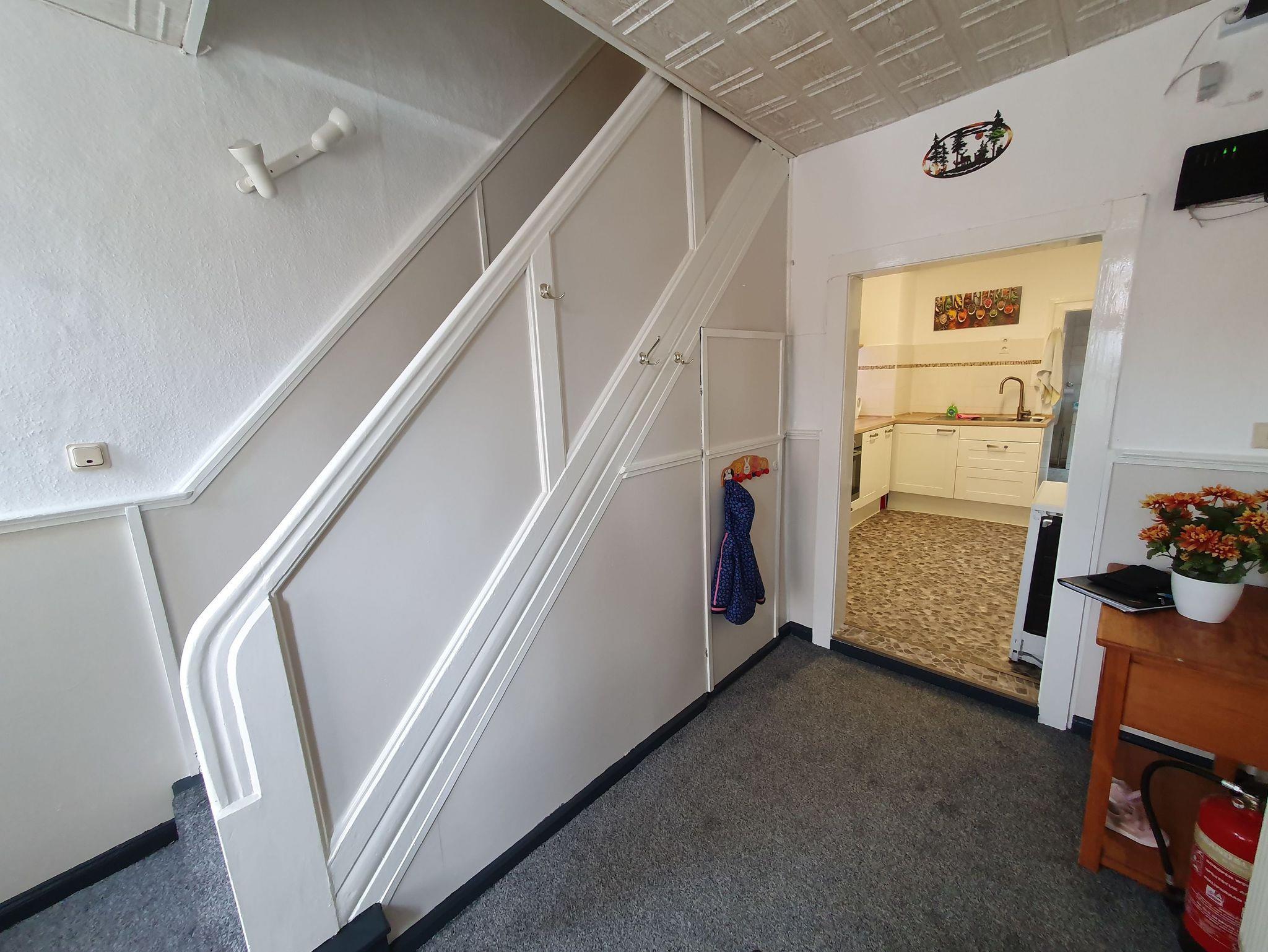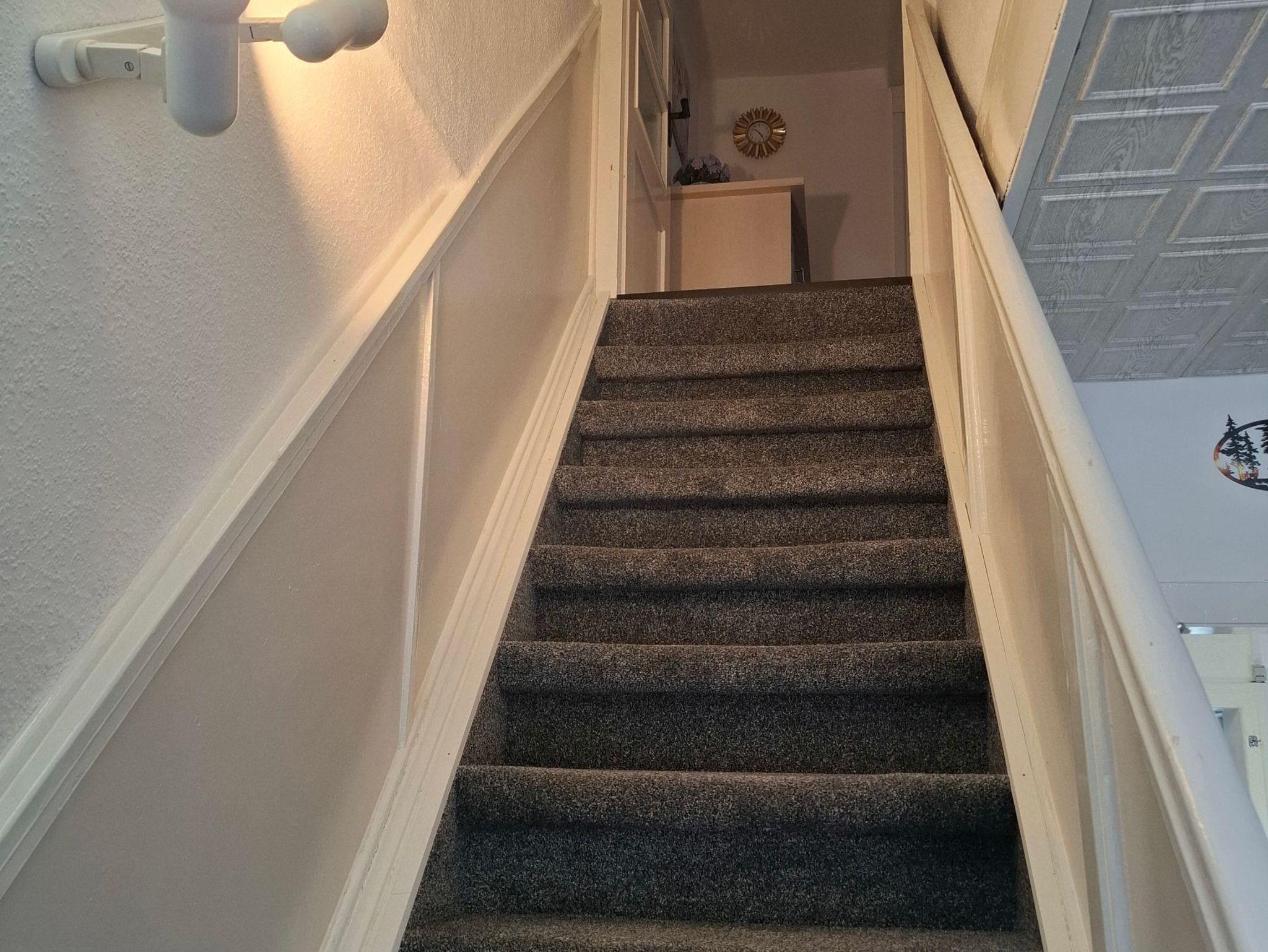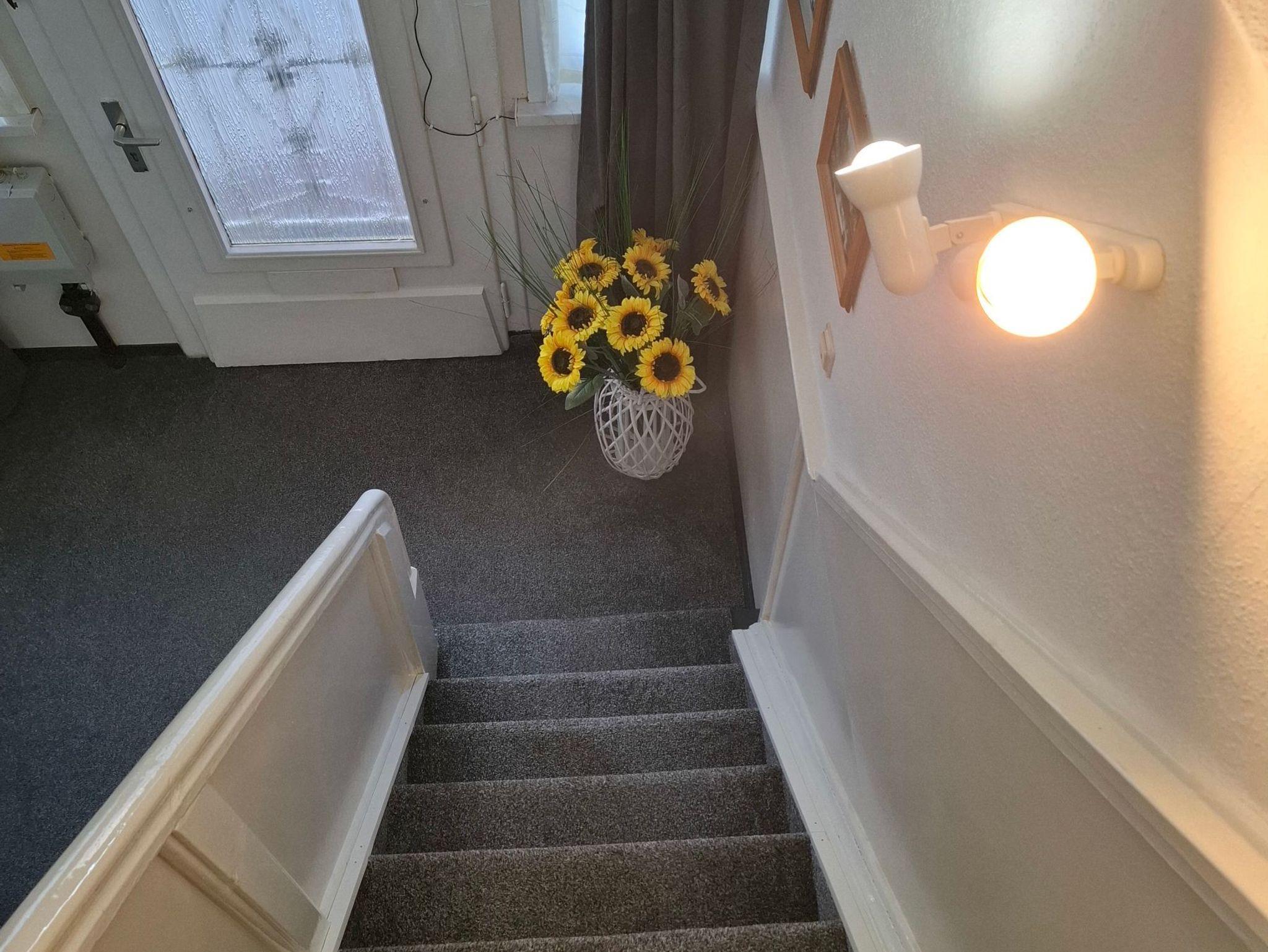 Um zu den Schlafzimmern im Obergeschoss zu gelangen, müssen Sie eine steile Treppe hinaufsteigen.