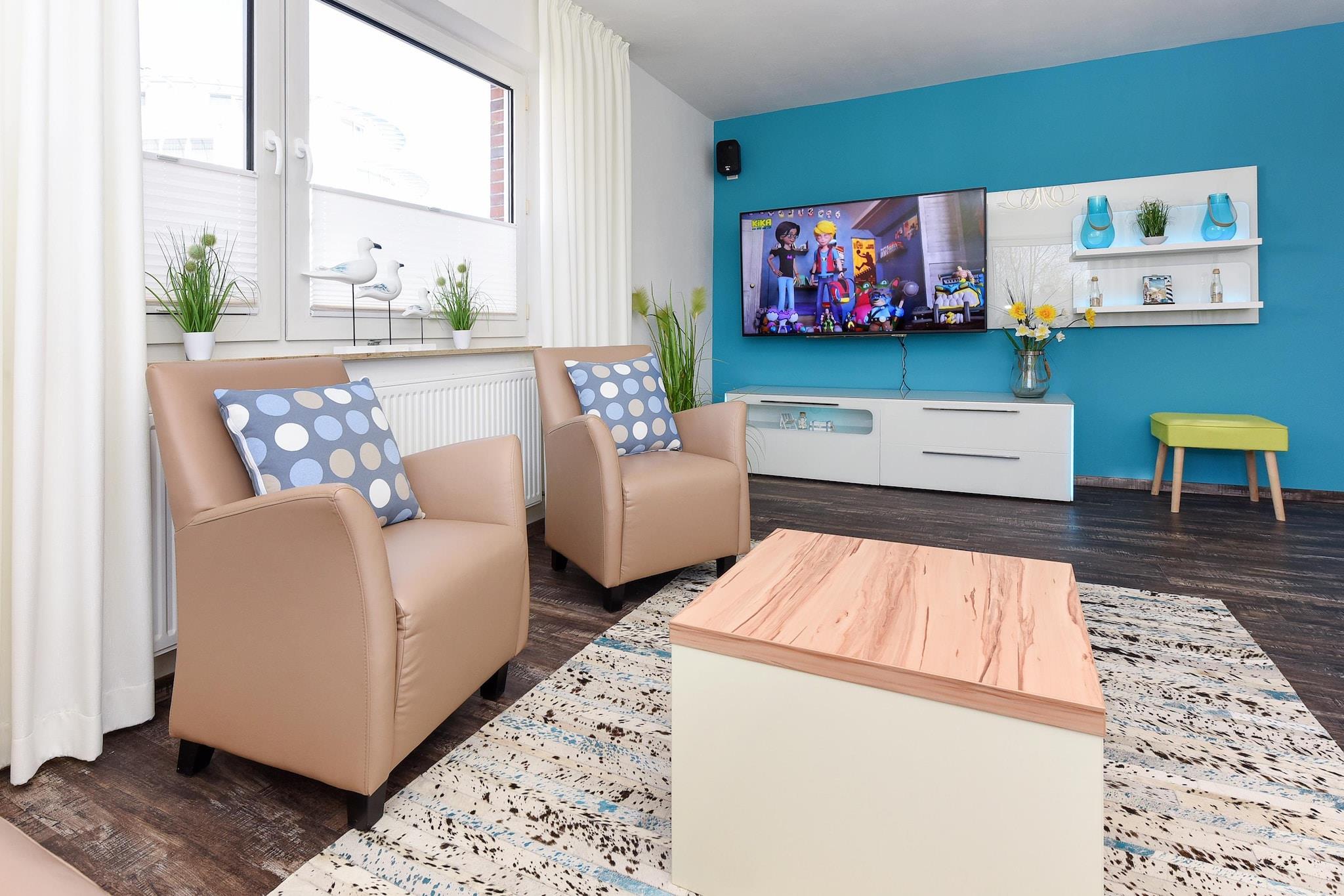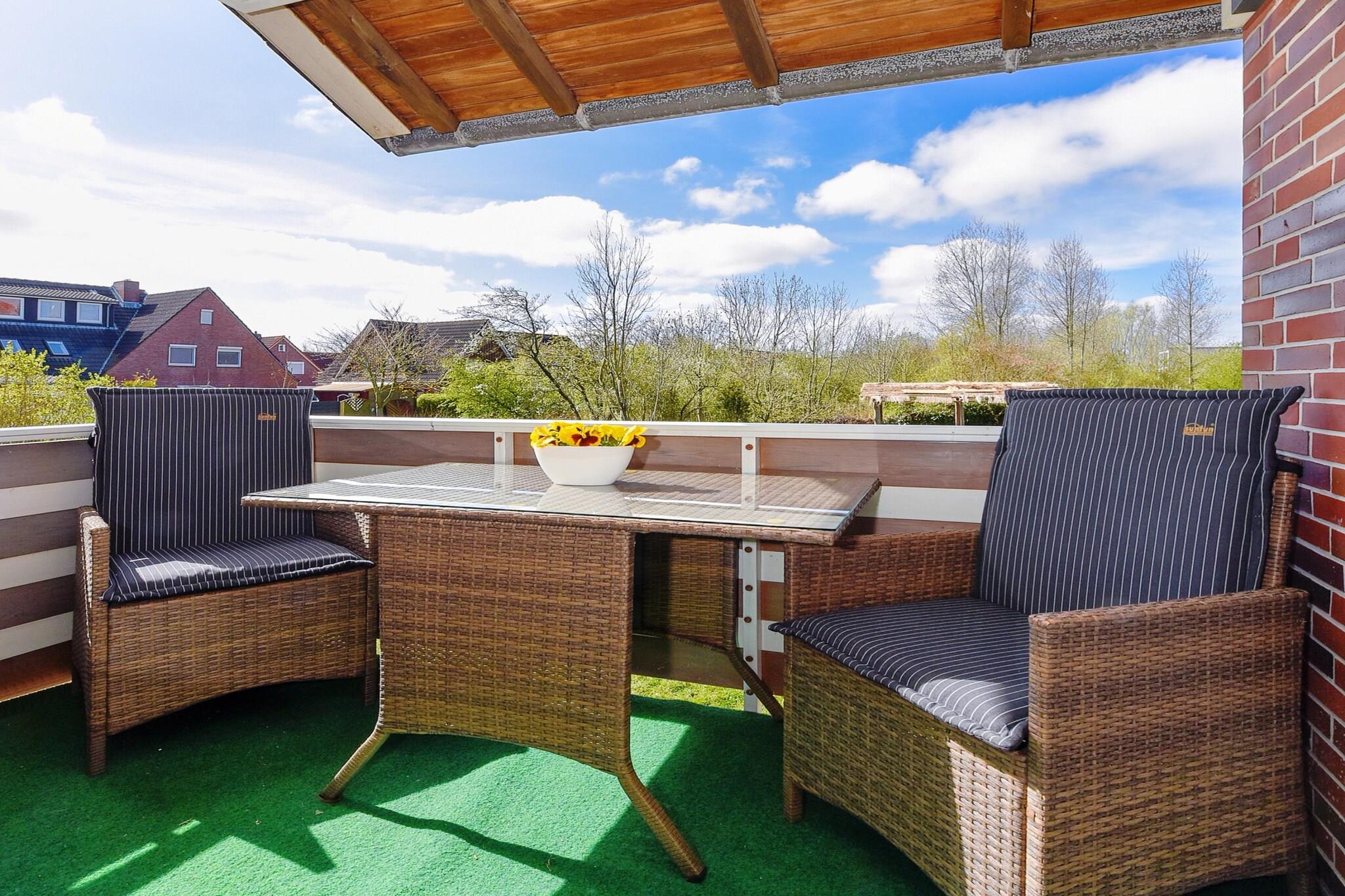 Moderne 4-Sterne-Ferienwohnung in Bensersiel, nah am Hafen und Nordseestrand, mit Balkon und beheiztem Pool.