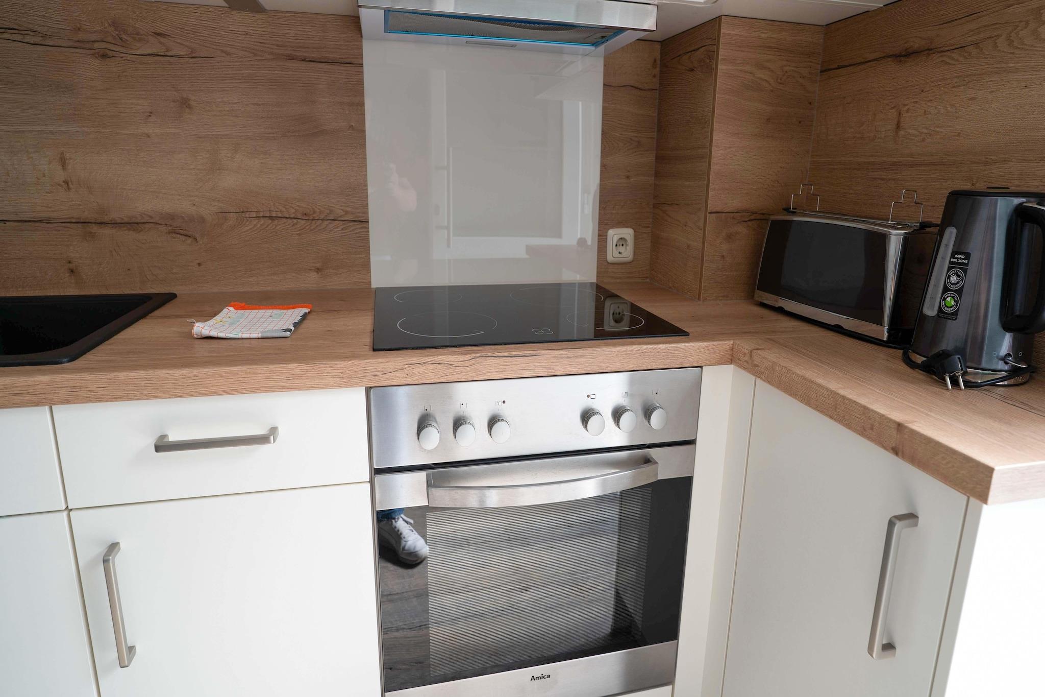Parterre: (offene Küche(Kochplatte(4 Kochplatten), Wasserkocher, Toaster, Dunstabzugshaube, Kaffeemaschine, Backofen, Mikrowelle, Spülmaschine, Kühlschrank), Wohn/Esszimmer(TV, Esstisch, Sitzecke), Schlafzimmer(Doppelbett, TV), Schlafzimmer(Doppelbett, TV), Badezimmer(Dusche, Waschbecken, Toilette, Föhn)) Parkplatz, Terrasse, Gartenmöbel, Wäschepaket inklusive