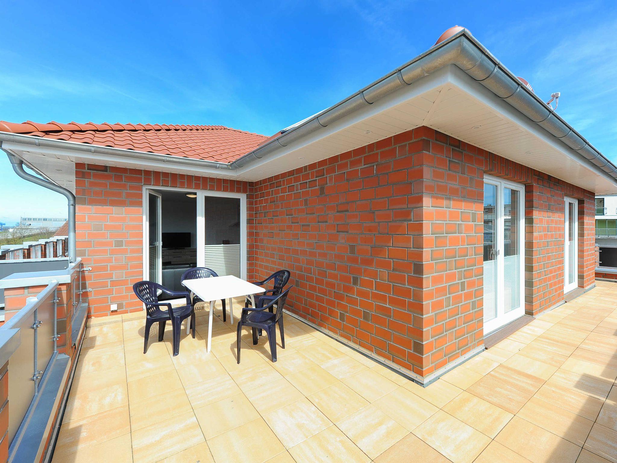 Modernes, familienfreundliches Ferienhaus mit Dachterrasse nahe Nordseedeich und Wattenmeer in Bensersiel.