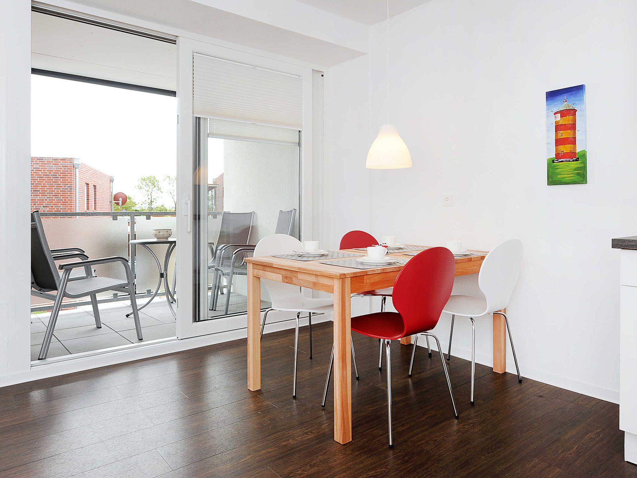 Ferienwohnung Muschel im Haus Kunterbunt in Bensersiel bietet bunten Familienurlaub nahe dem Wattenmeer.
