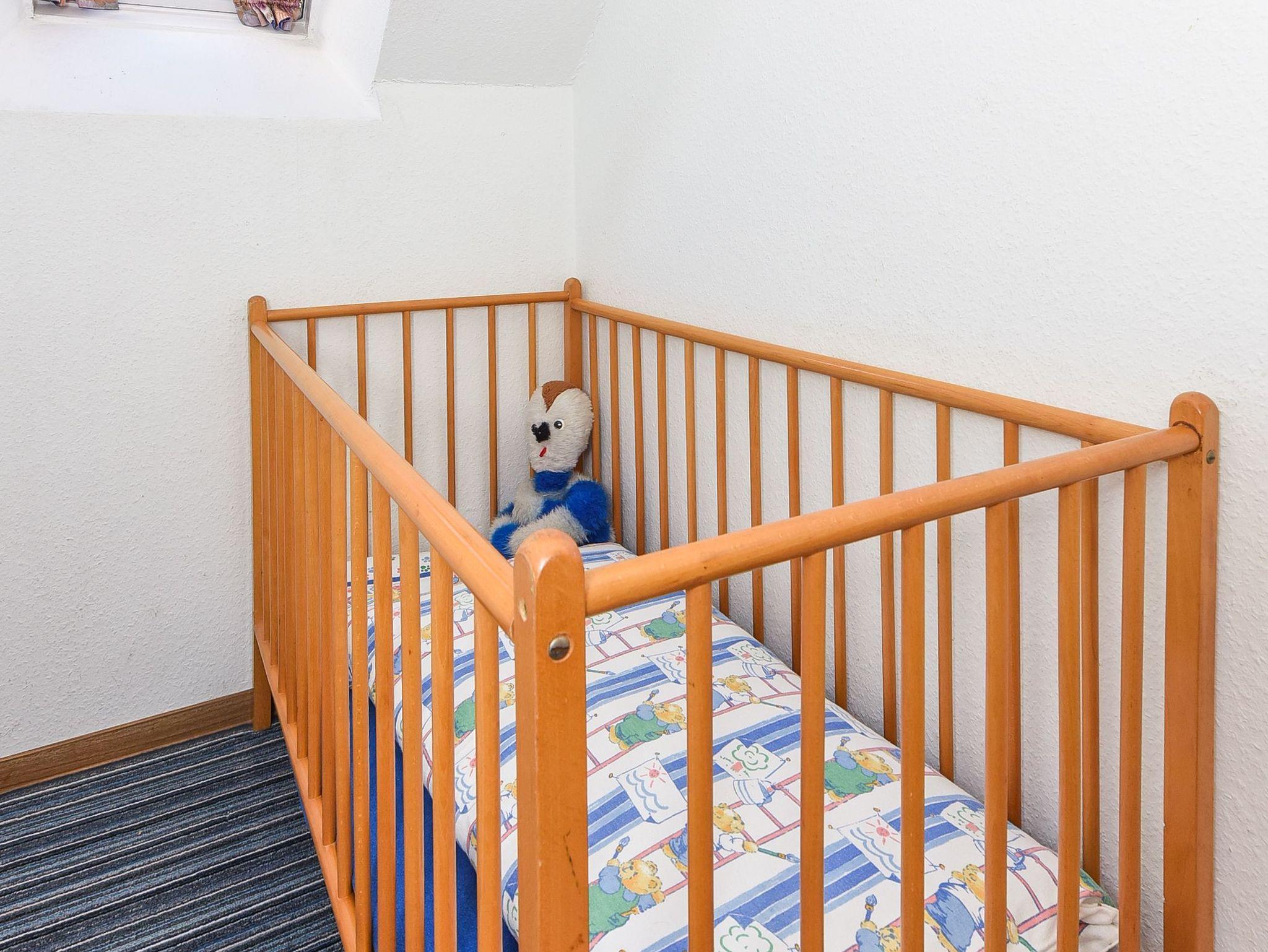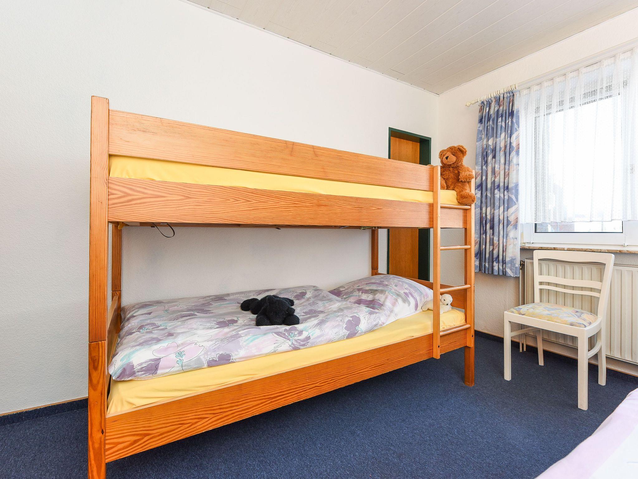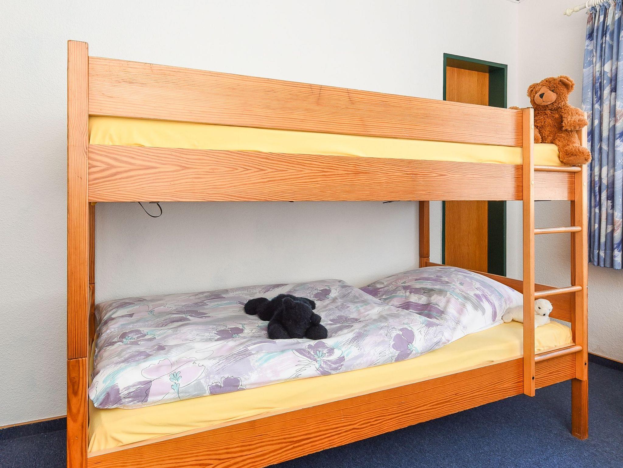Anmerkung zum Schlafzimmer und zum Kinderzimmer: Ein Schlafraum ist mit altengerechtem Bett und Hochbett (Etagenbett) ausgestattet und ein kleines Extra-Kinderzimmer ist für das Kleinkind gedacht oder wahlweise als Abstellraum, zum Beispiel für die Koffer, geeignet.