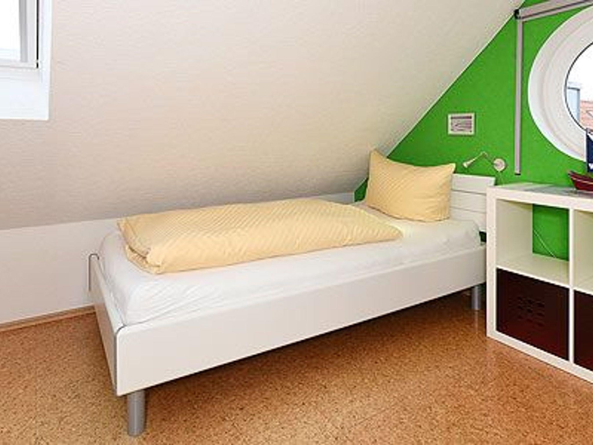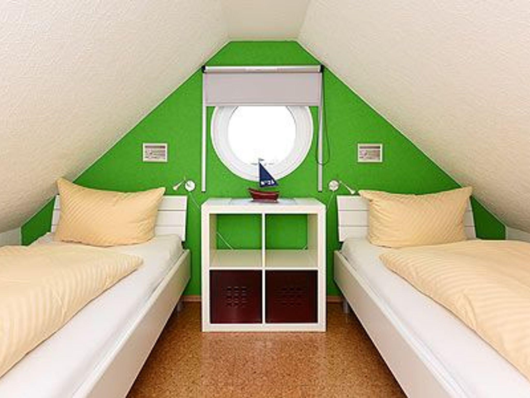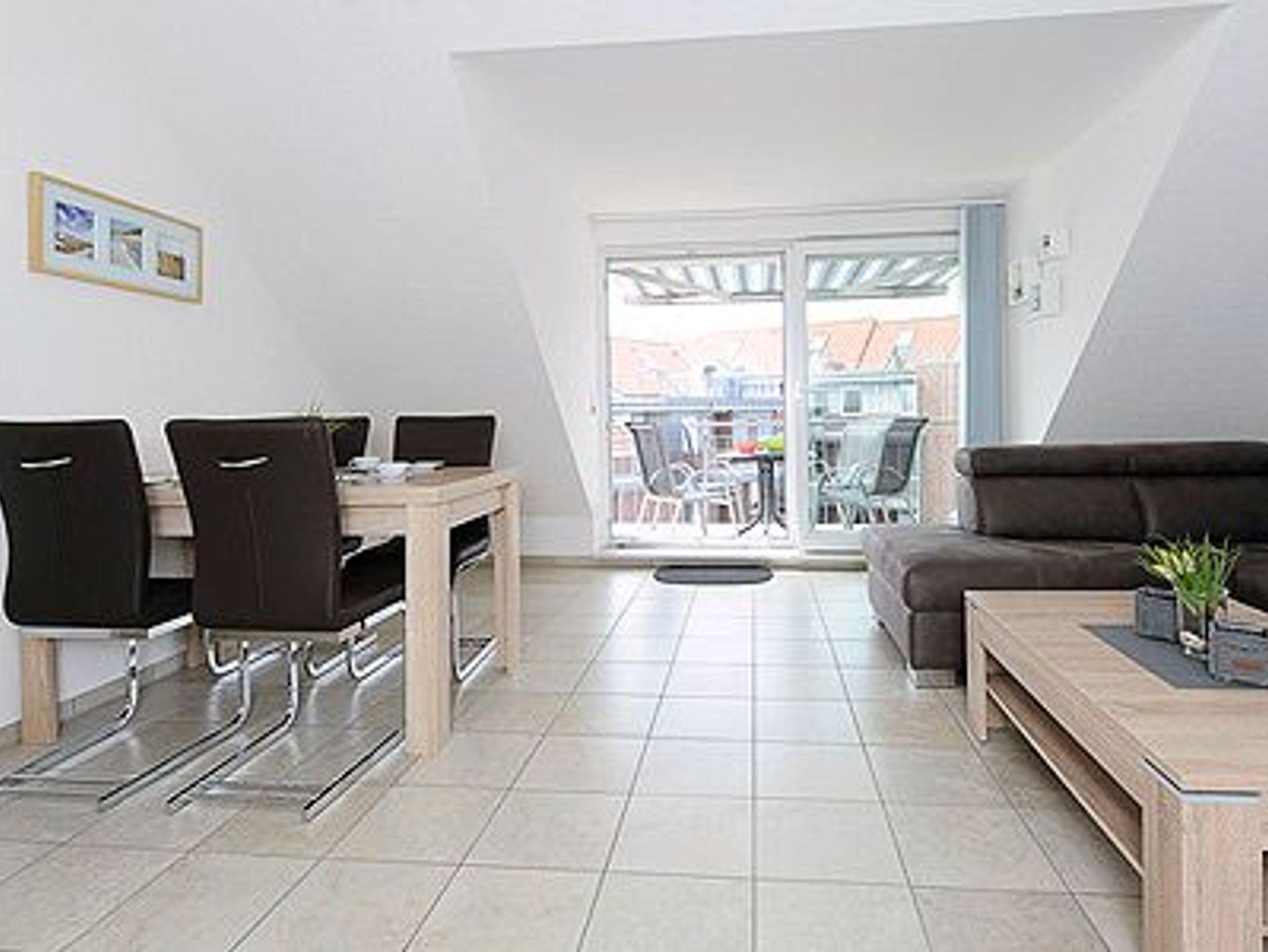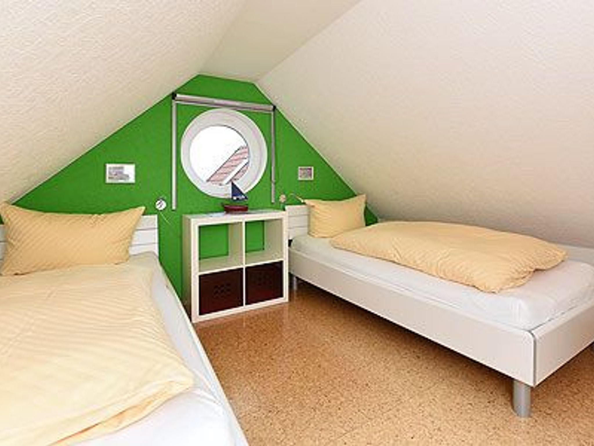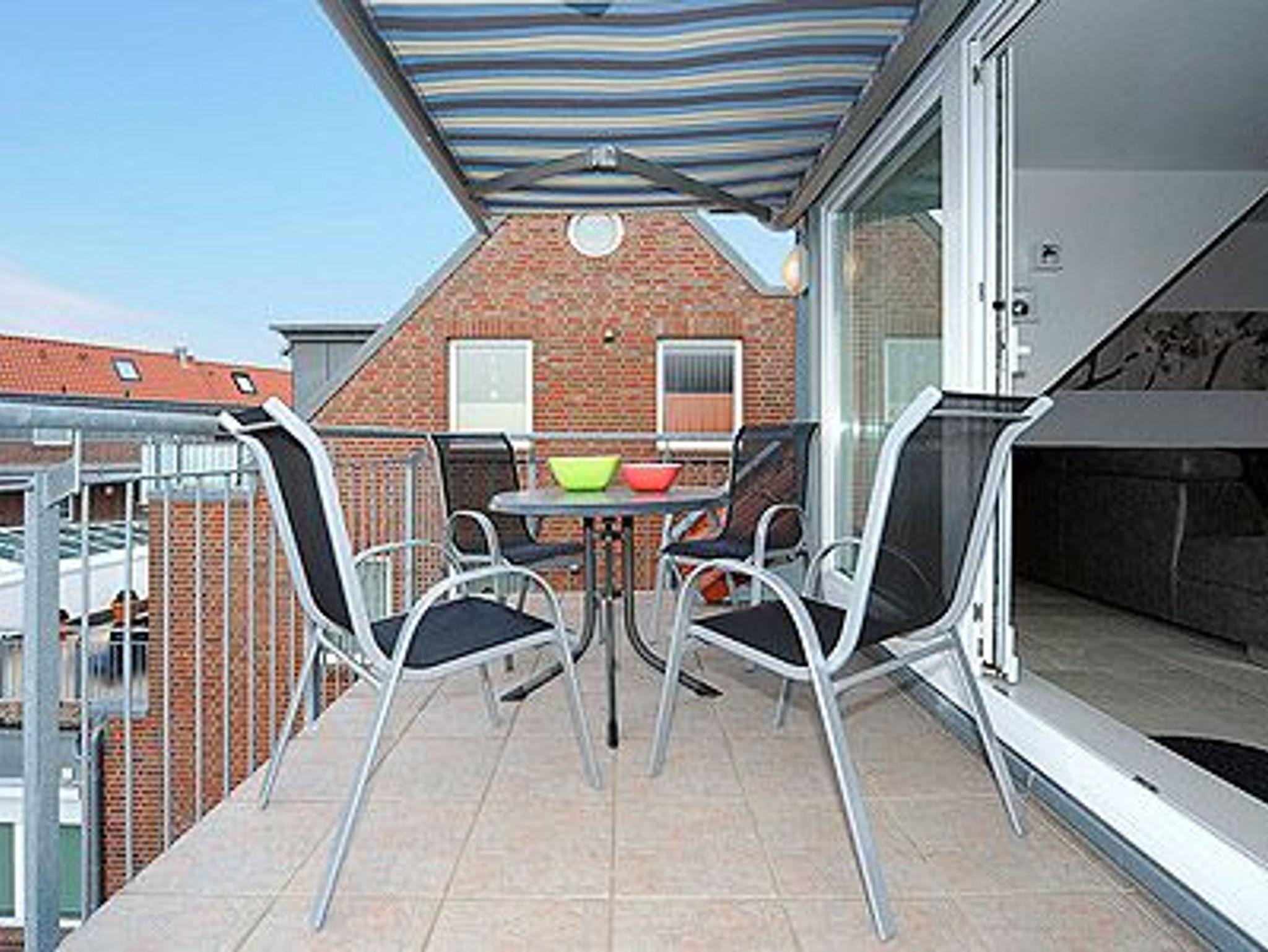 Das erste Schlafzimmer und der Balkon sind ohne Treppe erreichbar. Vom Balkon aus schauen Sie in Richtung Festland. Das zweite Schlafzimmer und die Dachterrasse sind über eine Treppe zu erreichen. Von der Dachterrasse aus haben Sie einen herrlichen Blick auf die Nordsee, den Hafen und die ostfriesischen Inseln.
