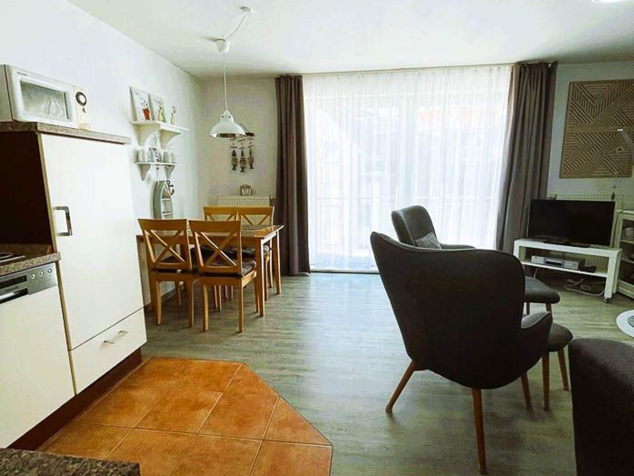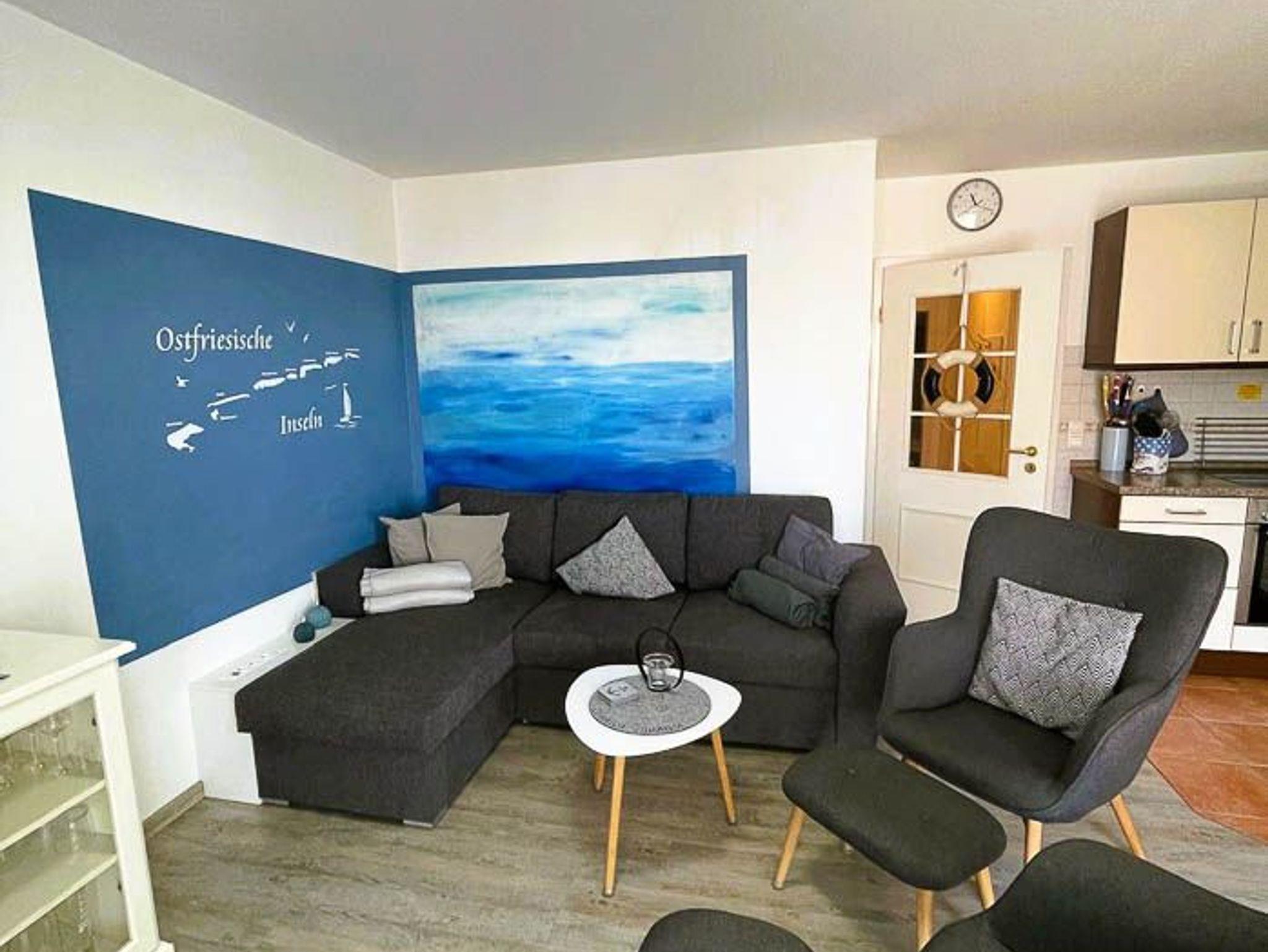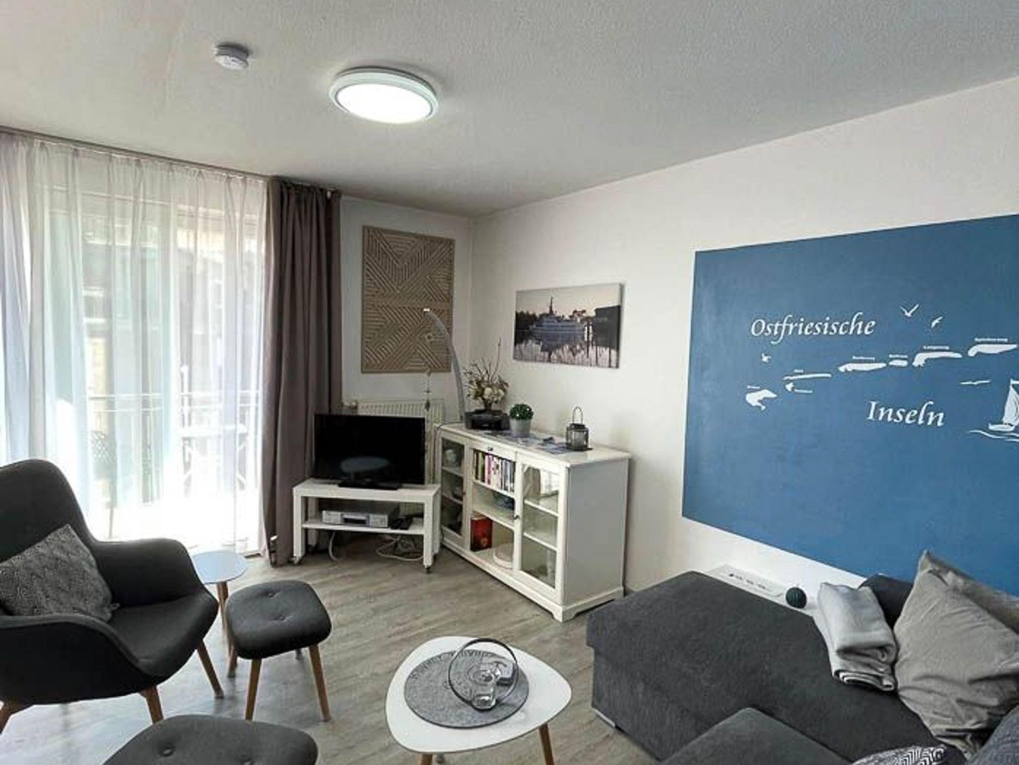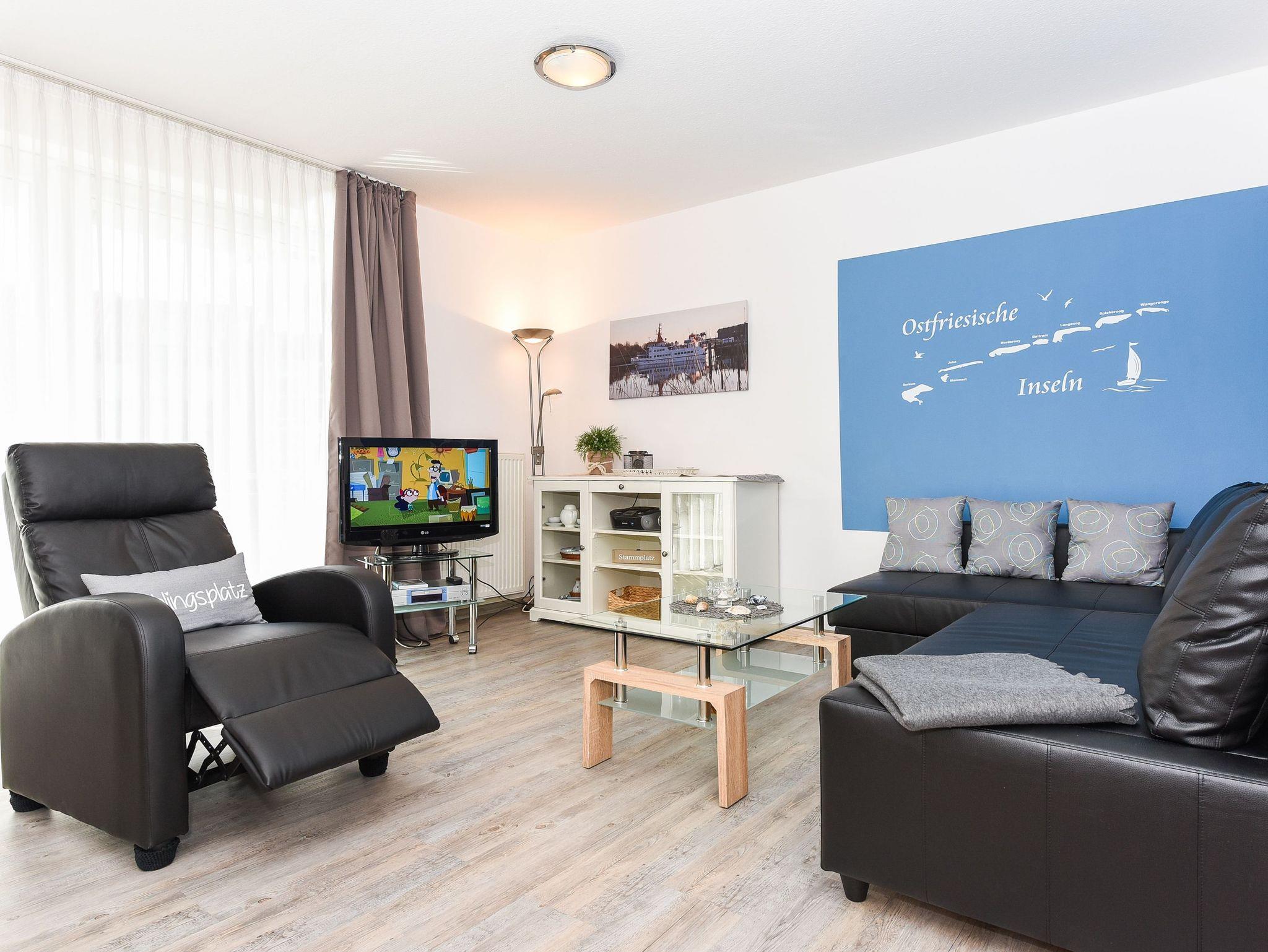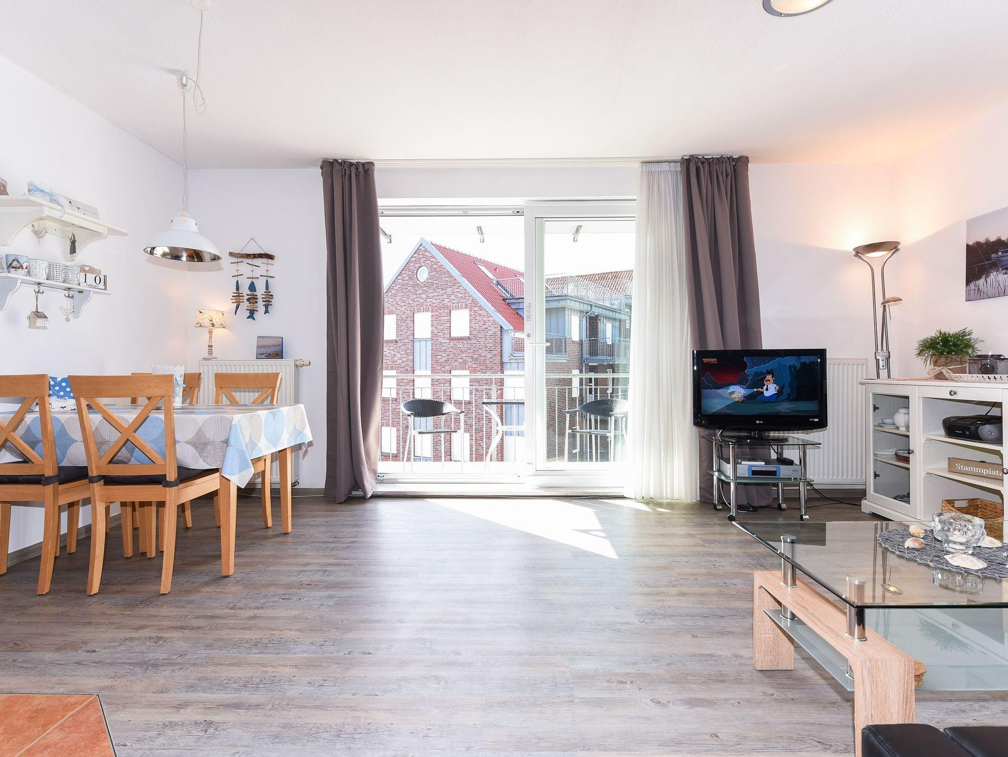 Moderne Ferienwohnung im Nordseegartenpark Bensersiel, nahe Strand und Hafen, mit Balkon und Fahrstuhl für entspannte Urlaubstage.