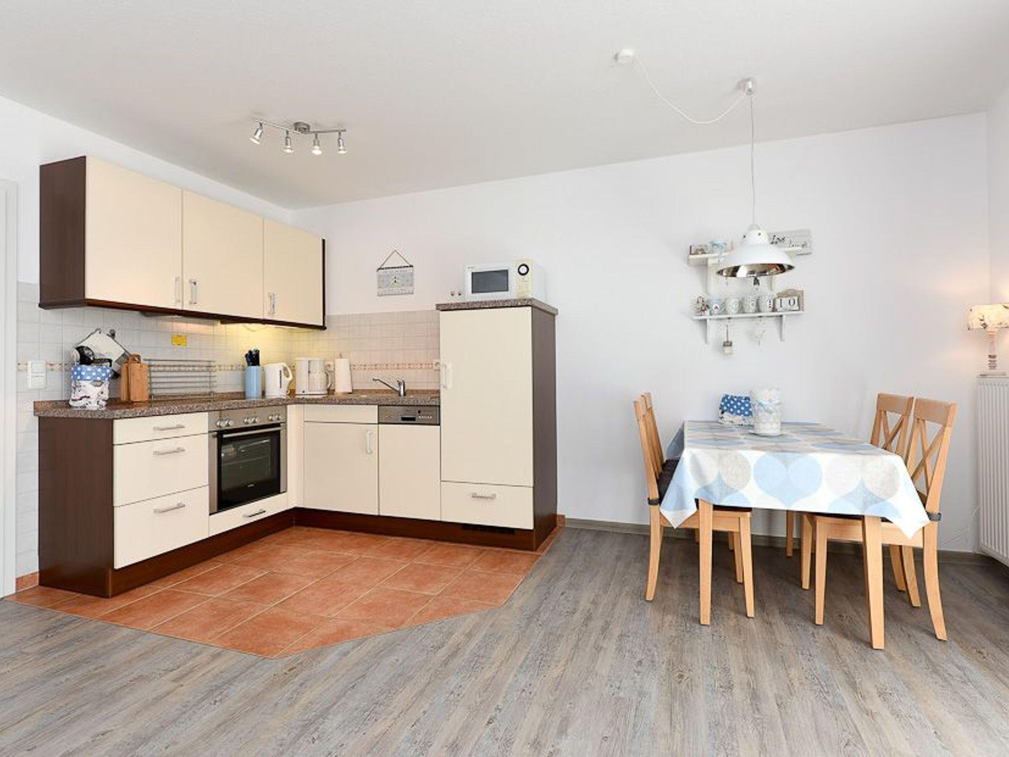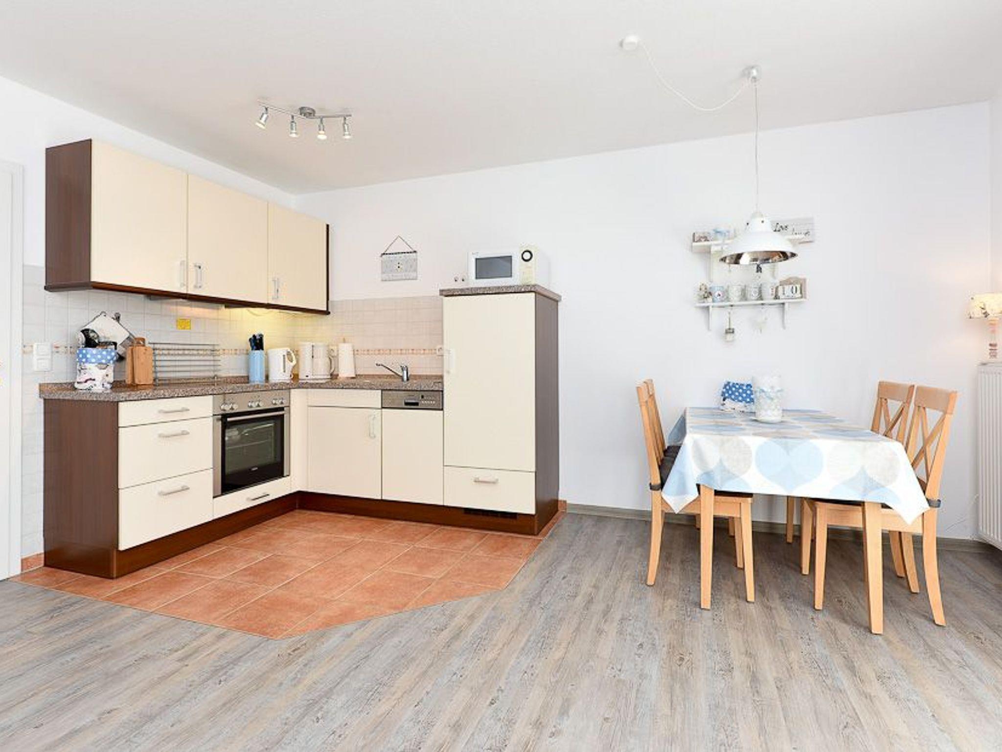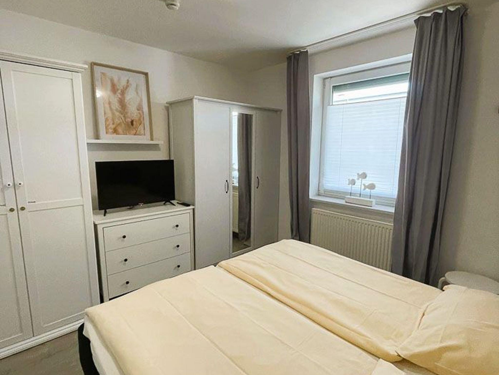 Die Wohnung liegt im 2. Obergeschoss und ist ohne Treppe zu erreichen (Fahrstuhl). Die Wohnung ist eine Nichtraucherwohnung. Im ersten Schlafzimmer befindet sich ein Doppelbett. Im zweiten etwas kleineren Schlafzimmer befindet sich ein Etagenbett, dass auch für Erwachsene geeignet wäre (200 x 90 cm, bis 120kg je Bett). Der Balkon befindet sich in Süd-/Westlage.