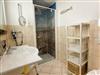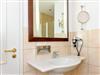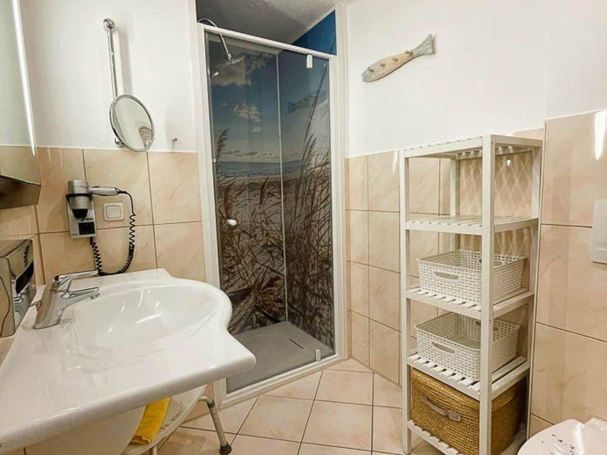 Badezimmer mit Dusche, Waschtisch und WC