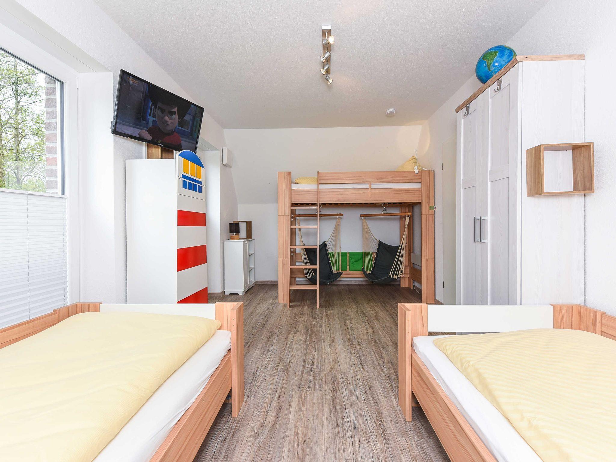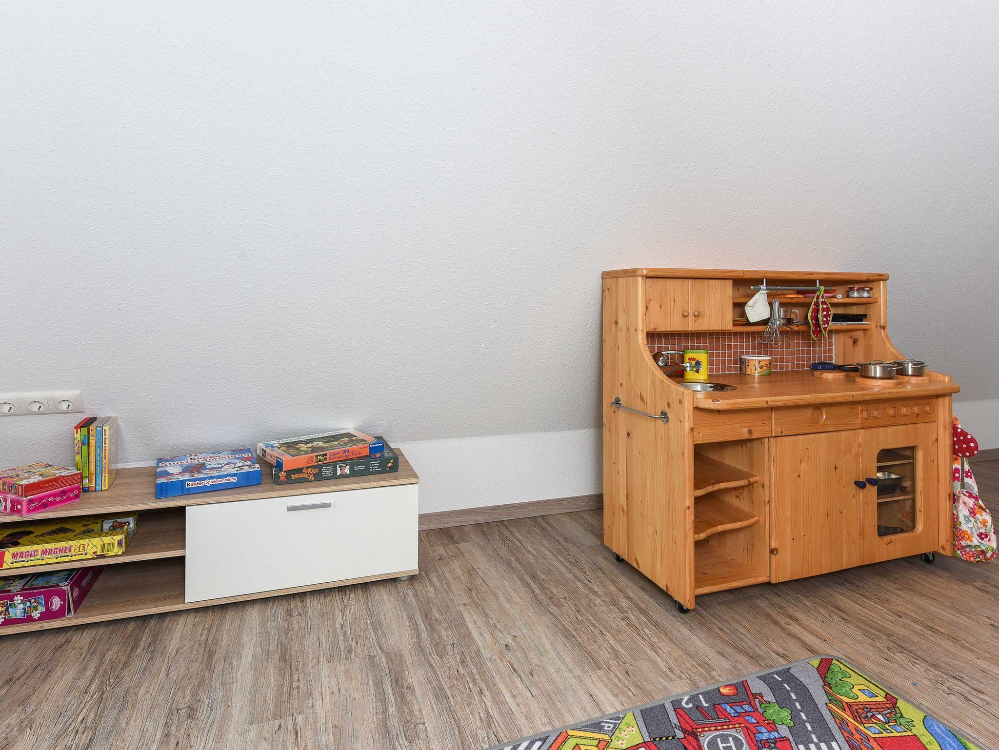 Im Dachgeschoss befindet sich ein Spielzimmer für die Kinder sowie ein separater Fernseher mit einer Playstation 4. Auf der Terrasse befindet sich zusätzlich noch ein Strandkorb.