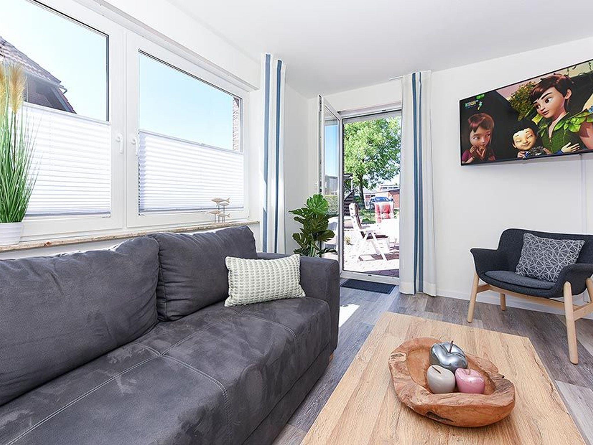 Gemütliche Ferienwohnung Wattwurm im Haus Nordstrand nahe der Nordsee in Bensersiel mit Terrasse und Garten.