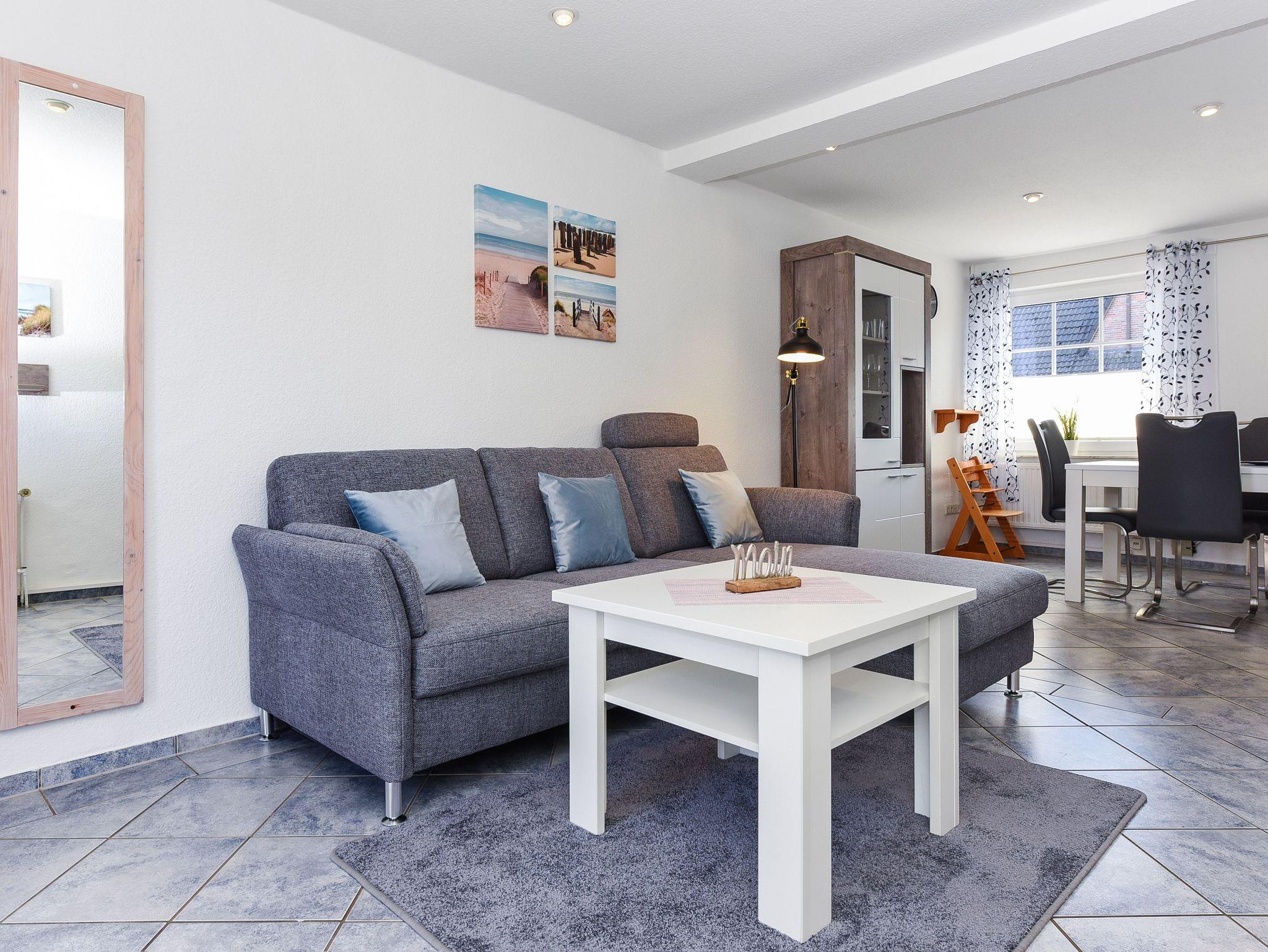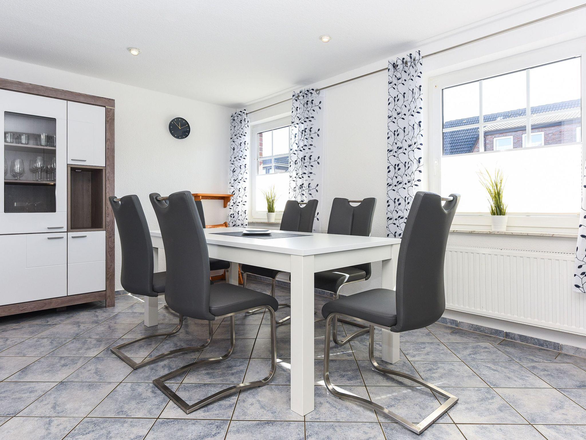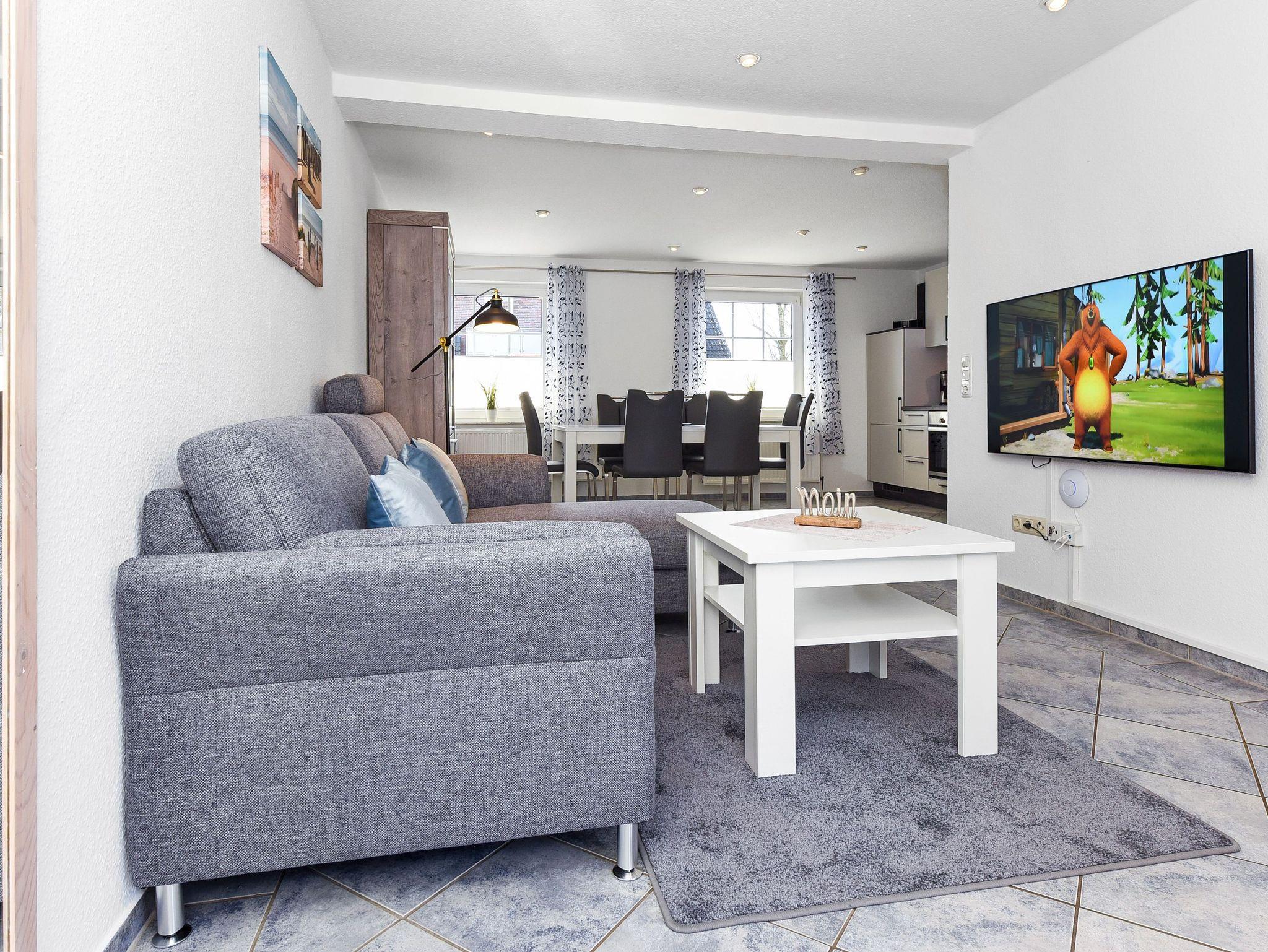 Moderne Ferienwohnung Luv in Bensersiel mit Terrasse, WLAN und drei Schlafzimmern für erholsamen Nordseeurlaub.