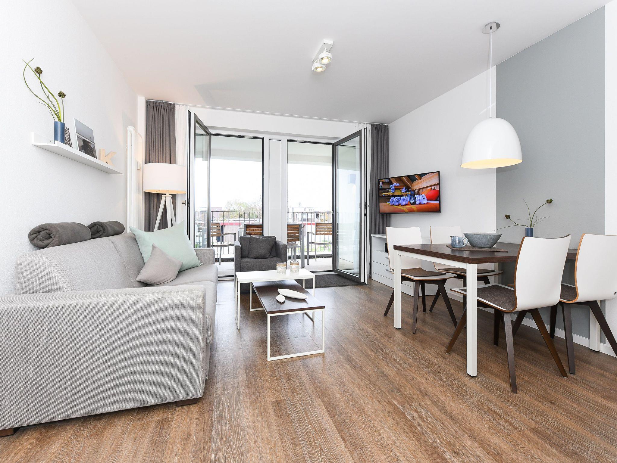 Modernes, strandnahes Apartment in Bensersiel mit zwei Balkonen und WLAN, ideal für entspannte Tage an der Nordsee.